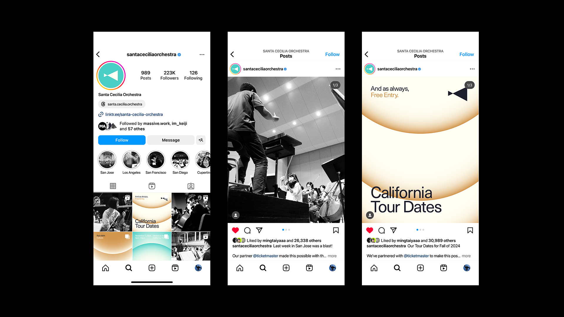 A striking and sophisticated new identity for the Santa Cecilia Orchestra, a renowned California ensemble, featuring a cohesive and visually compelling design that beautifully embodies the spirit of their enduring and highly praised performances.