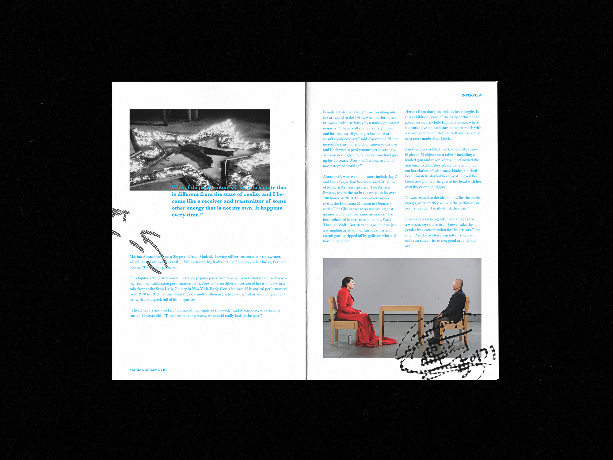The AR filter to the left shows a filter representing my contrasting idea. Shows phrases and words that my fellow korean friends and I have heard from people and relatives regarding our physical appearance along with a heavily edited and exaggerated face to show the effects of these comments. The right filter shows a filter representing my artist, Marina Abramovic and a fun interactive question AR filter.