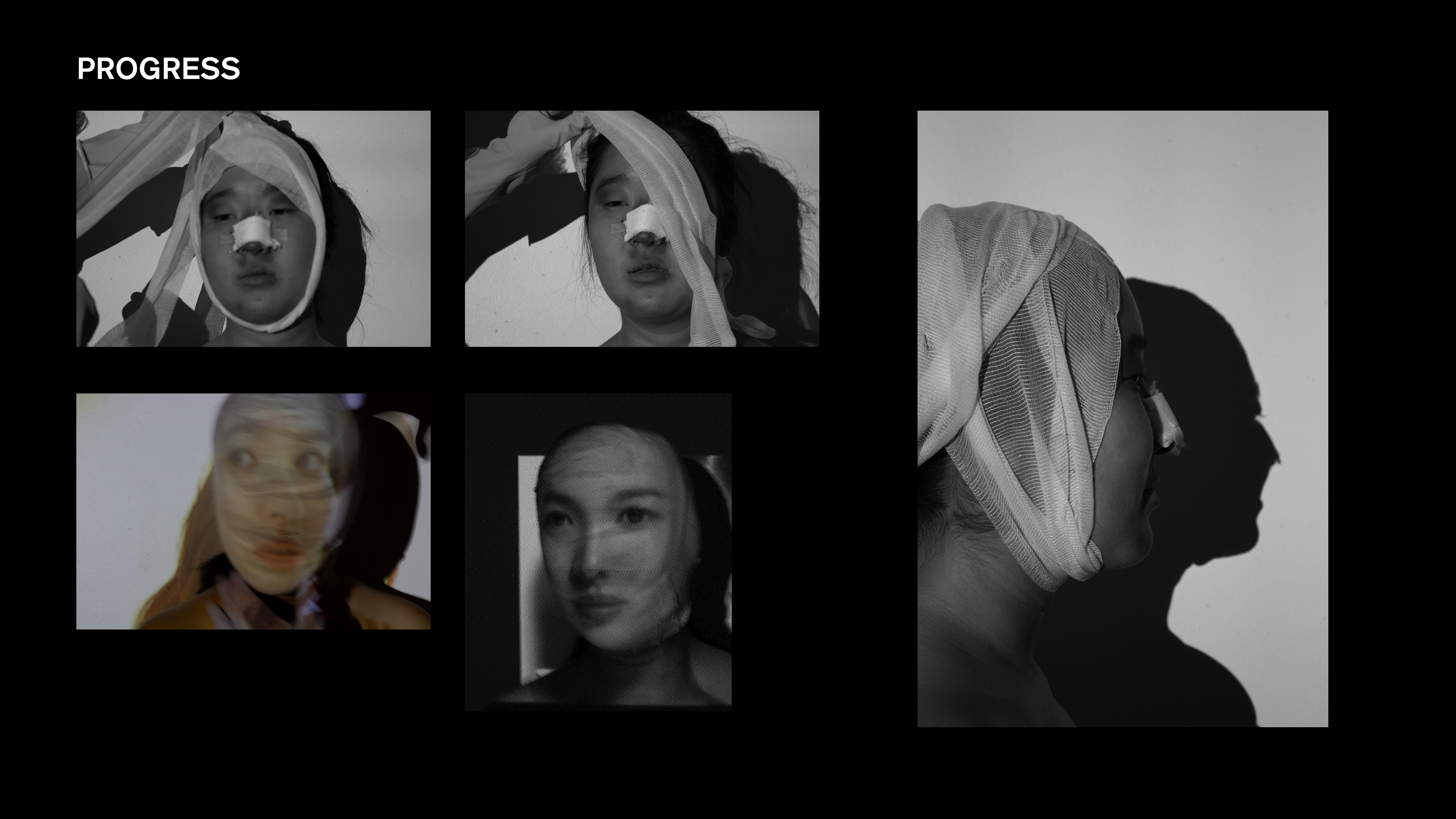 Some process photos taken for my contrasting idea! Using my friend as a model, I was able to create imagery of unrealistic beauty standards along with imagery of Korea's most "beautiful" women projected onto my friends face gauzed up.