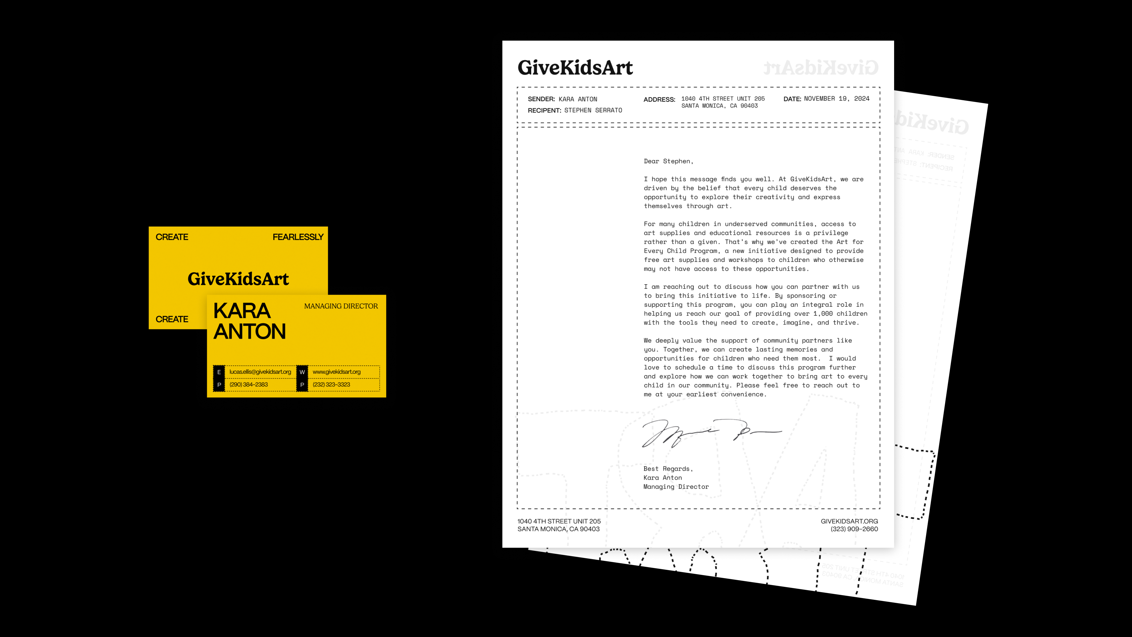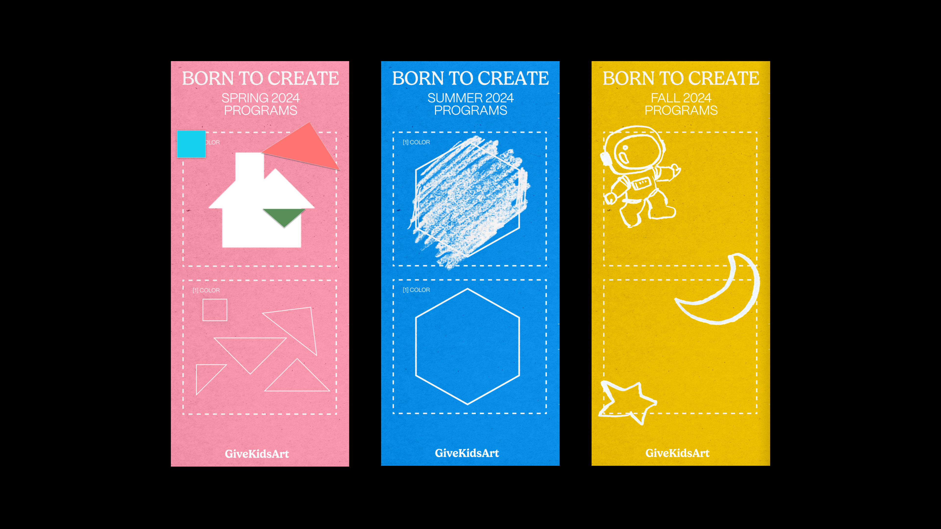 GiveKidsArt is a non-profit organization dedicated to providing art supplies, workshops, and creative opportunities to children in underserved communities. This project crafts a visual identity that reflects the joy, imagination, and transformative power of art for kids, making the organization more relatable and inspiring to its audience.