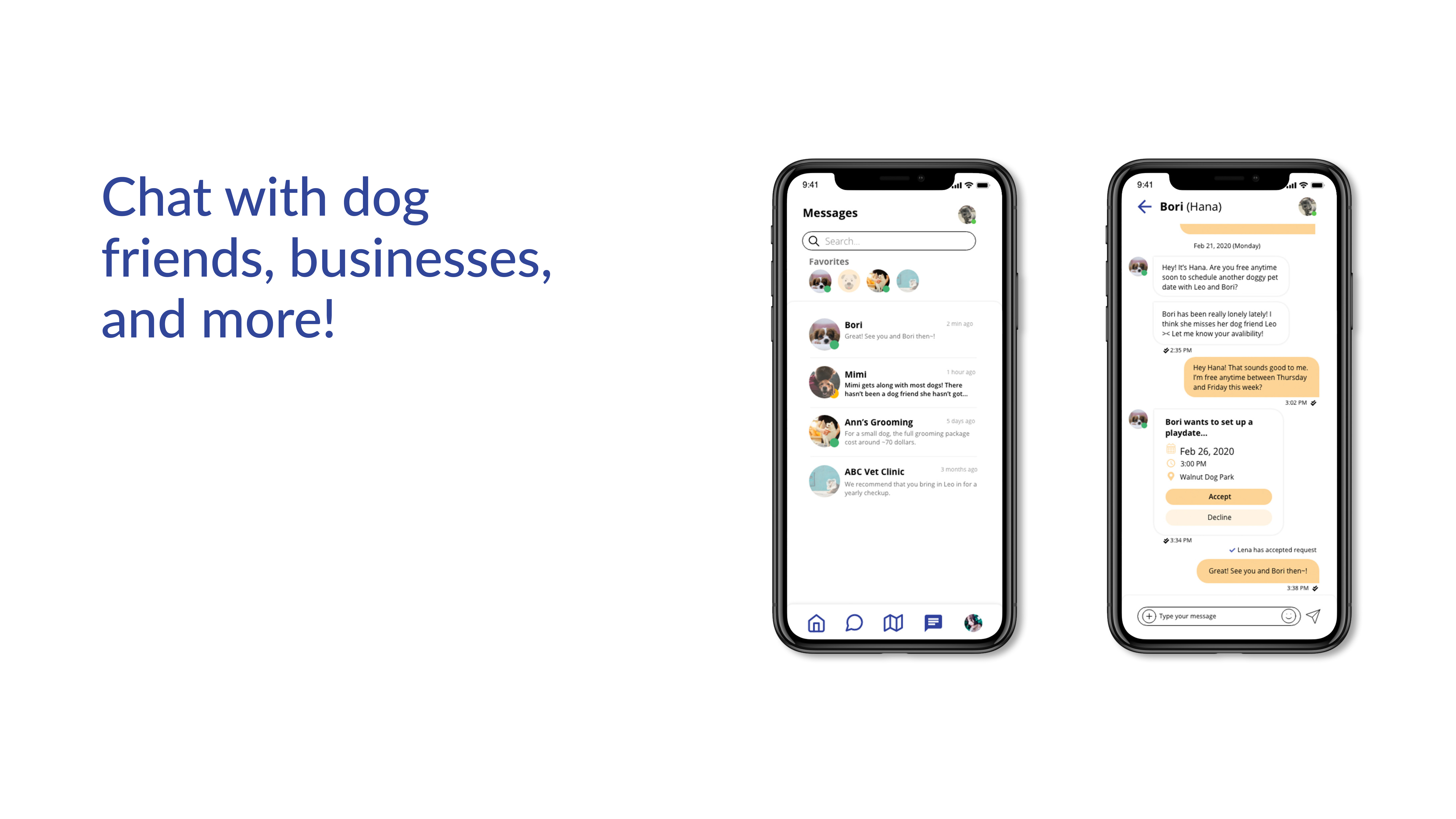 Chat is just not limited to friends. You can communicate with all dog-related business and friends here.