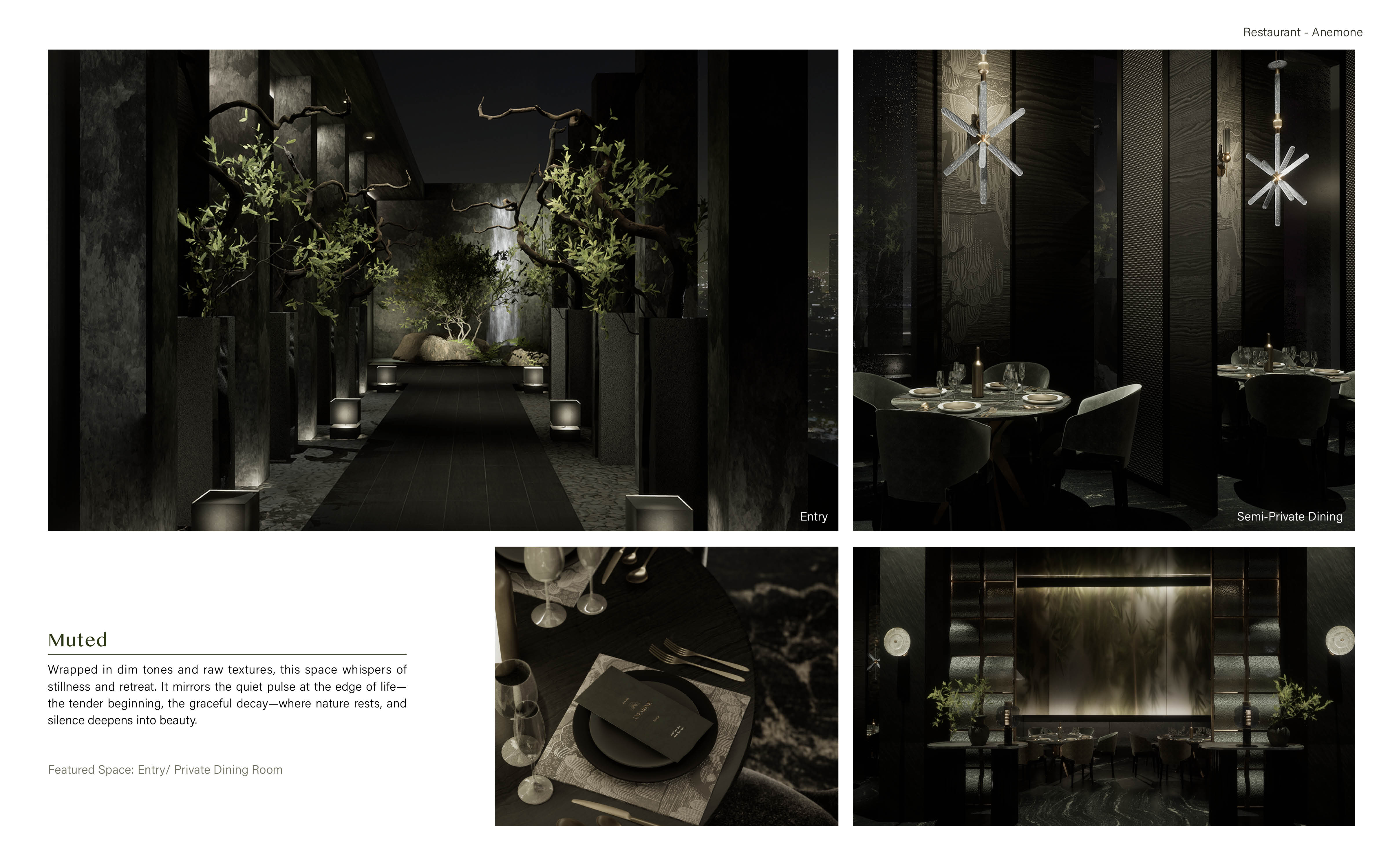 Anemone is a fine-dining restaurant where nature’s fleeting beauty takes center stage through living art. Inspired by the philosophy of Mono-no aware, it invites guests to embrace the wonder of transience and immerse in the delicate balance between presence and passage.