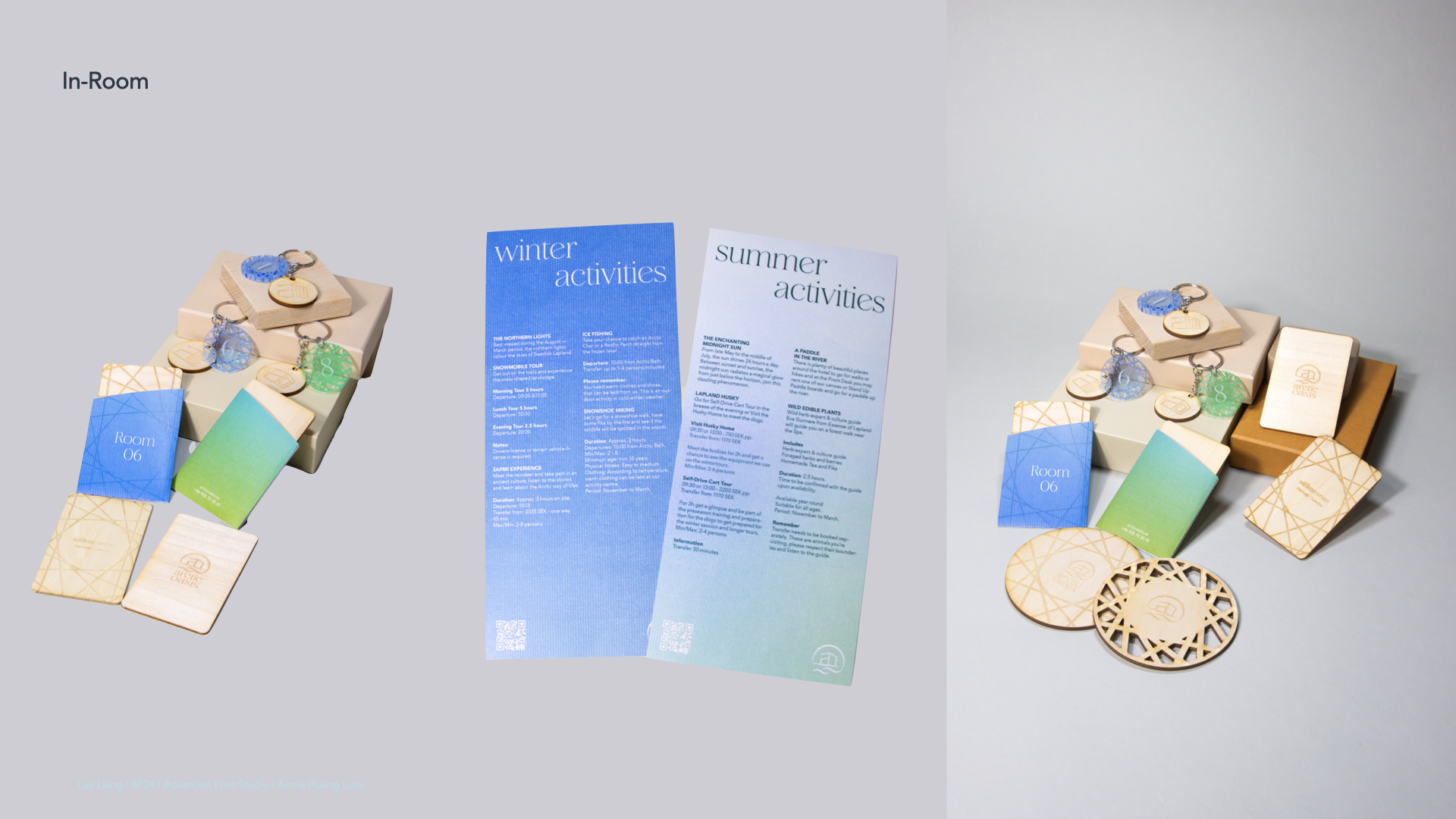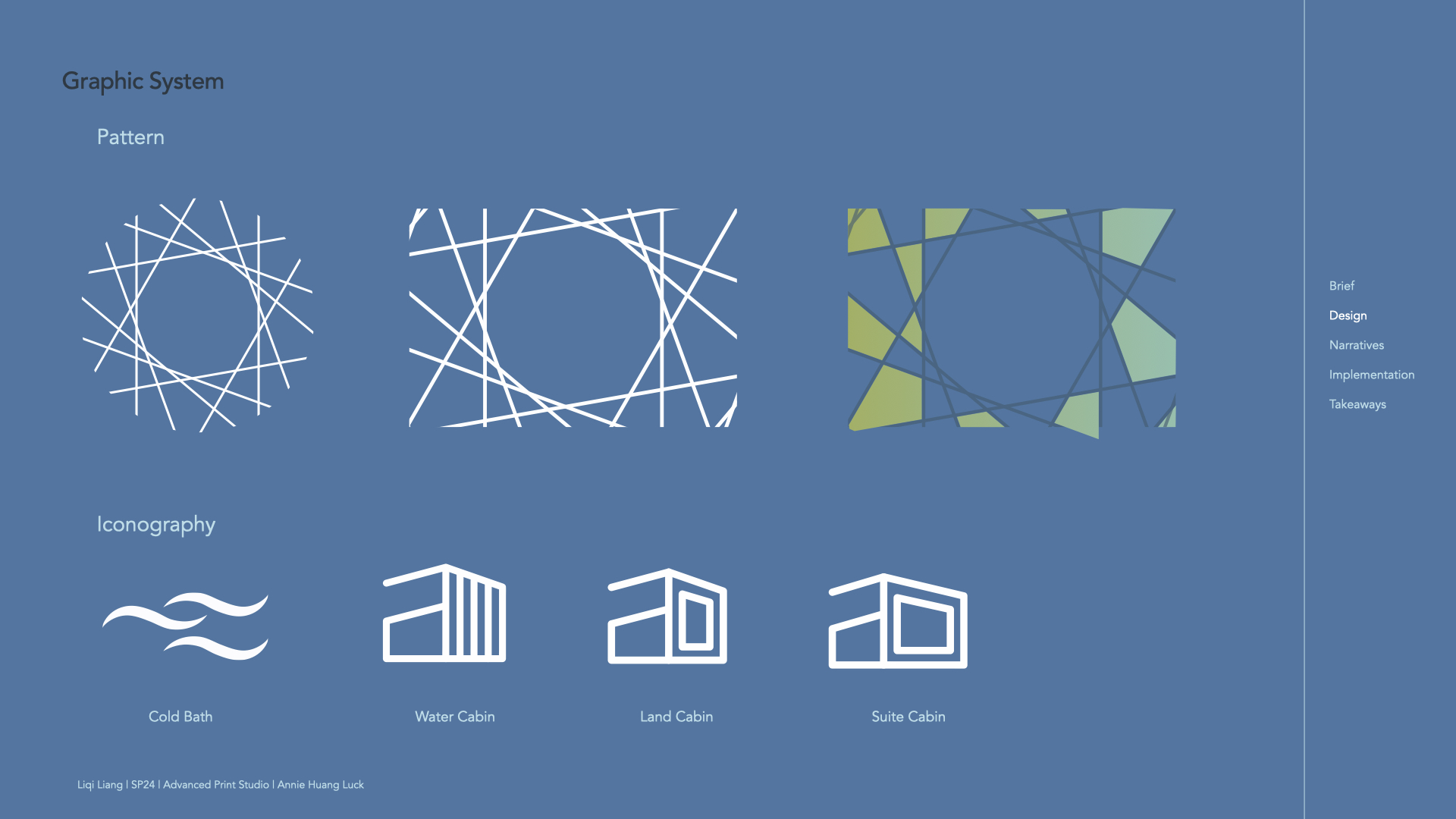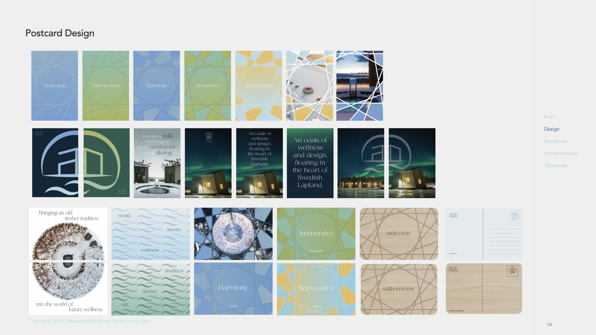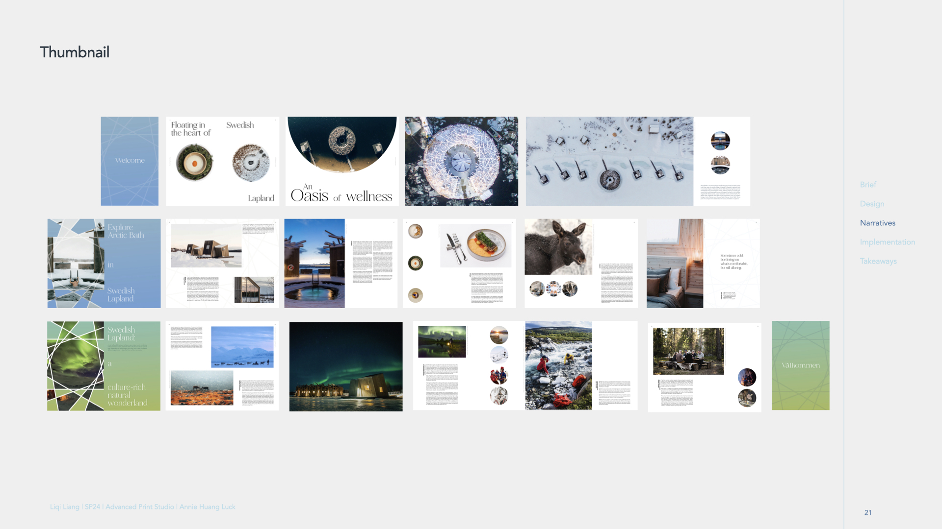 A hypothetical rebrand of Arctic Bath, the unique floating hotel located in the heart of Swedish Lapland on the Lule River, draws its inspiration from the timber floating era. My intention in rebranding this hotel is to raise its luxury and showcase the harmonious connection between the cold baths, architecture, and the Lule River; therefore, I renamed Arctic Bath to Arctic Oasis.