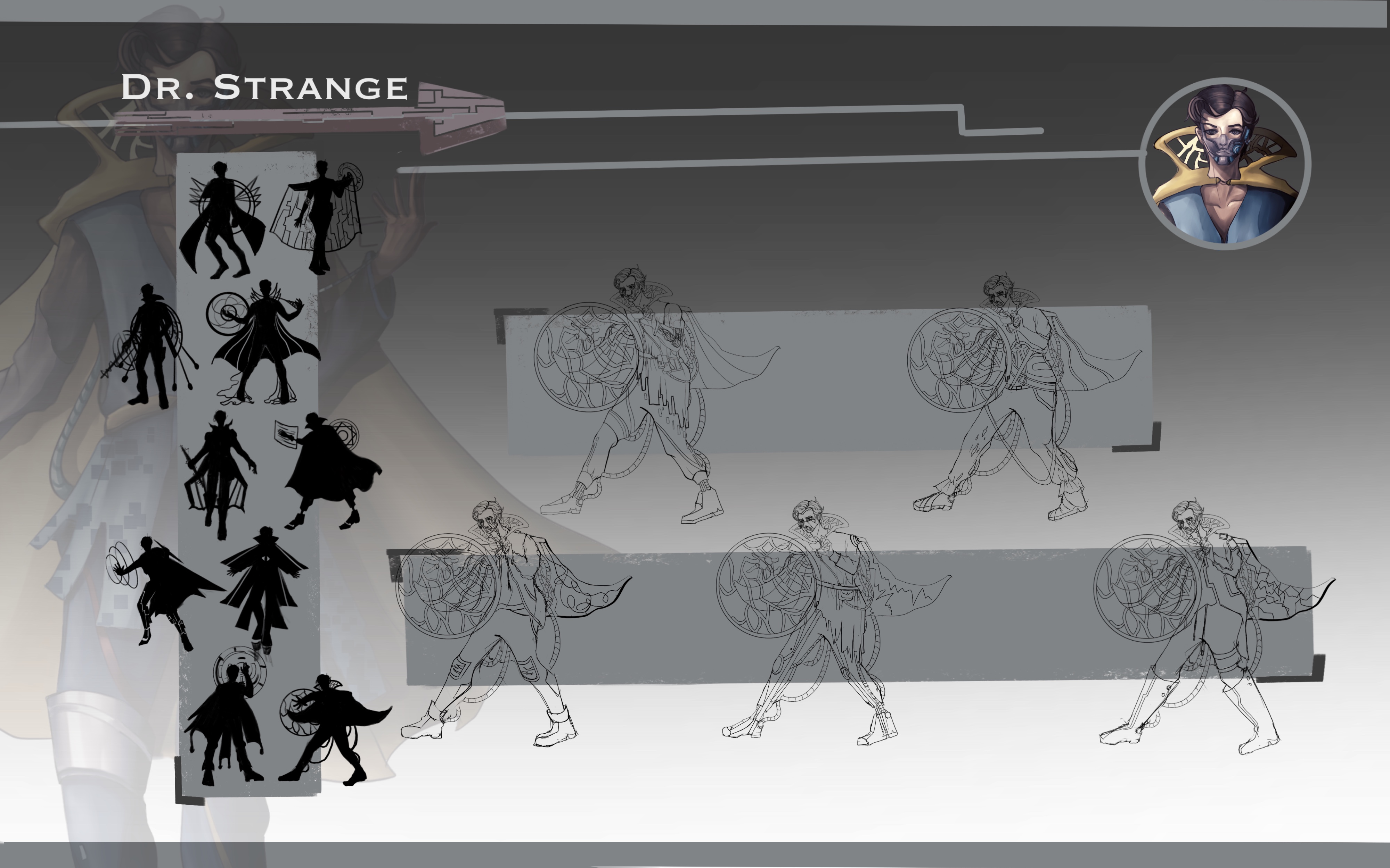 This is a PERSONAL project I did when I was just starting out, the concept was a cyberpunk version of Dr. Strange. It covers characters, villains, items, and some conceptual designs for buildings. The design and drawing techniques were not very sophisticated, but they were important steps in my learning.