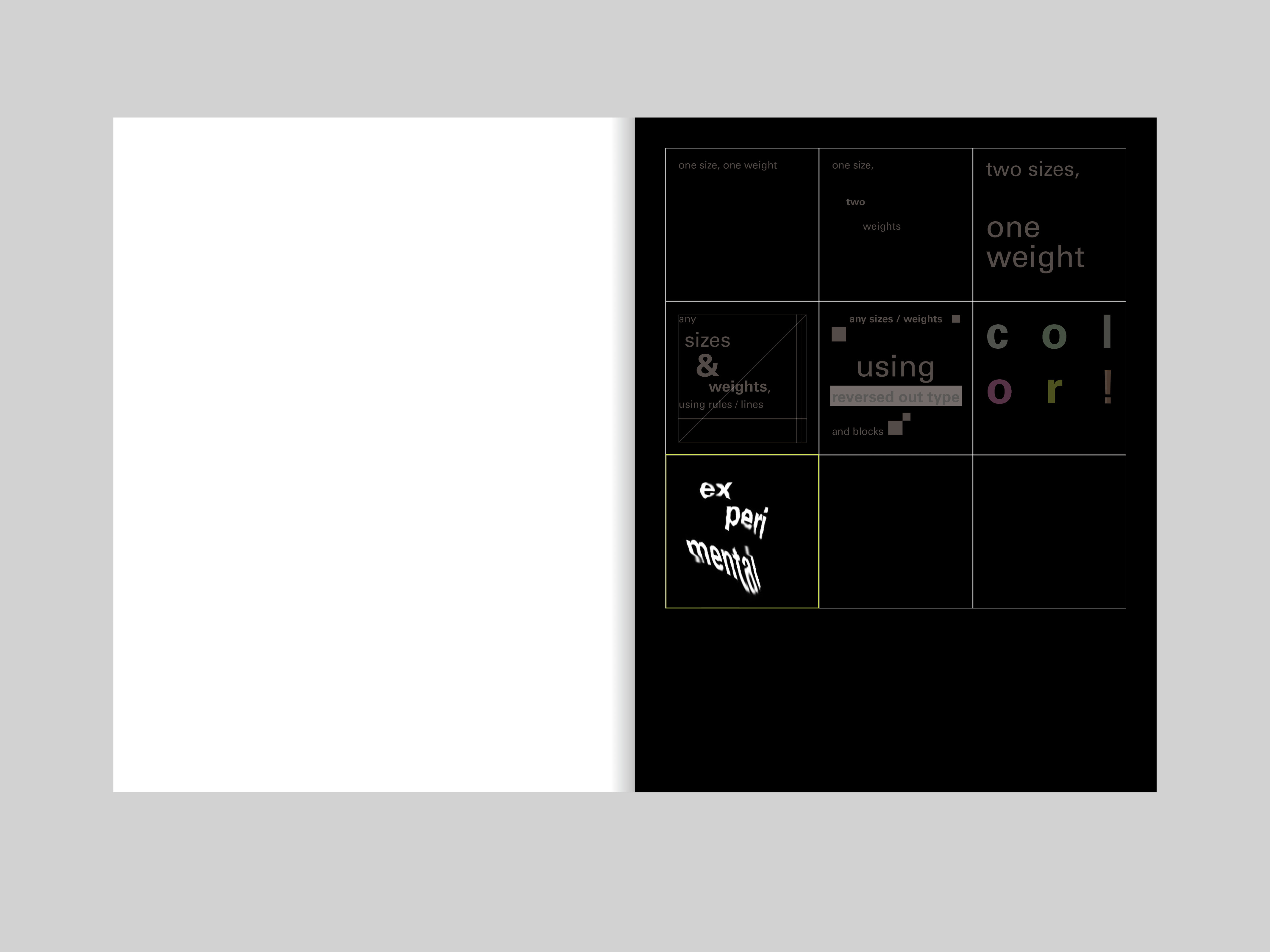 Having to work with so many restraints and then gradually being able to use more variables pushed my understanding of how to really work with type based arrangements. I refined my previous type skills and also learned about the history of Univers as well as other typefaces.