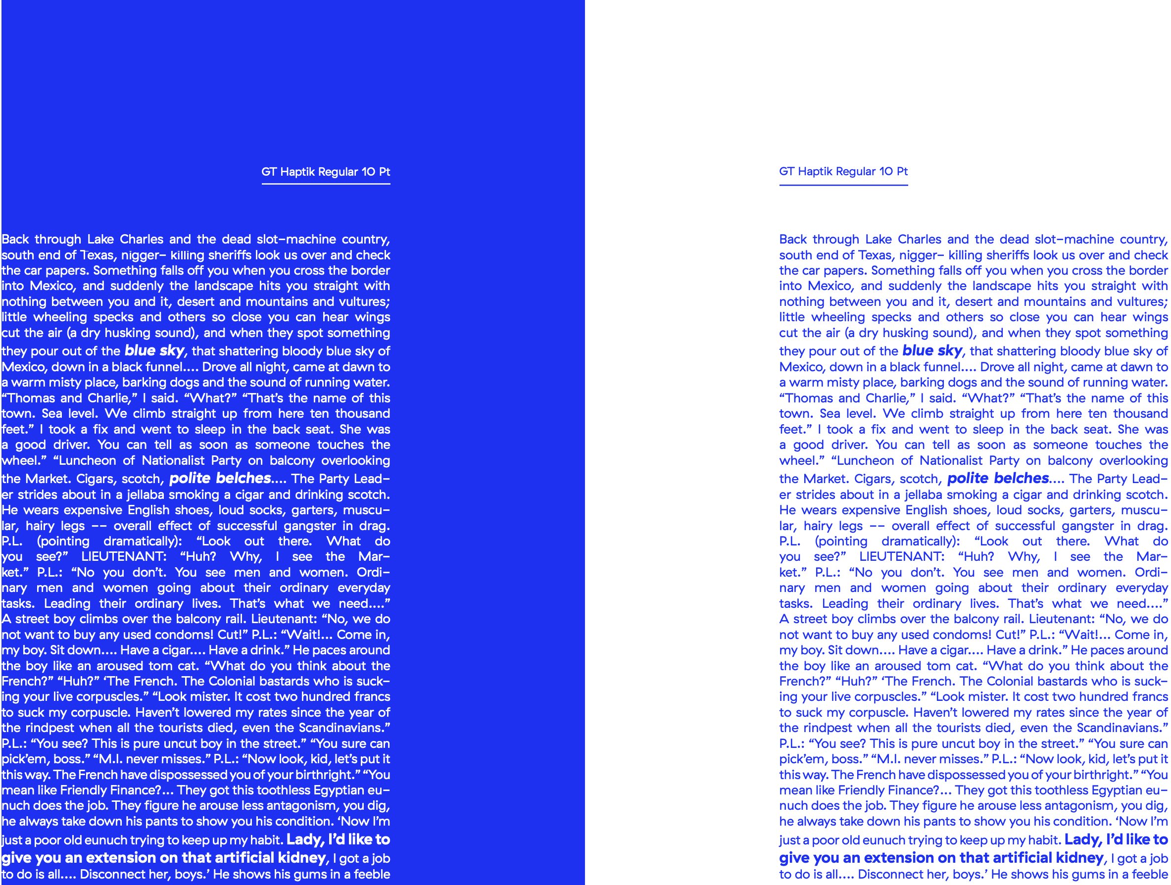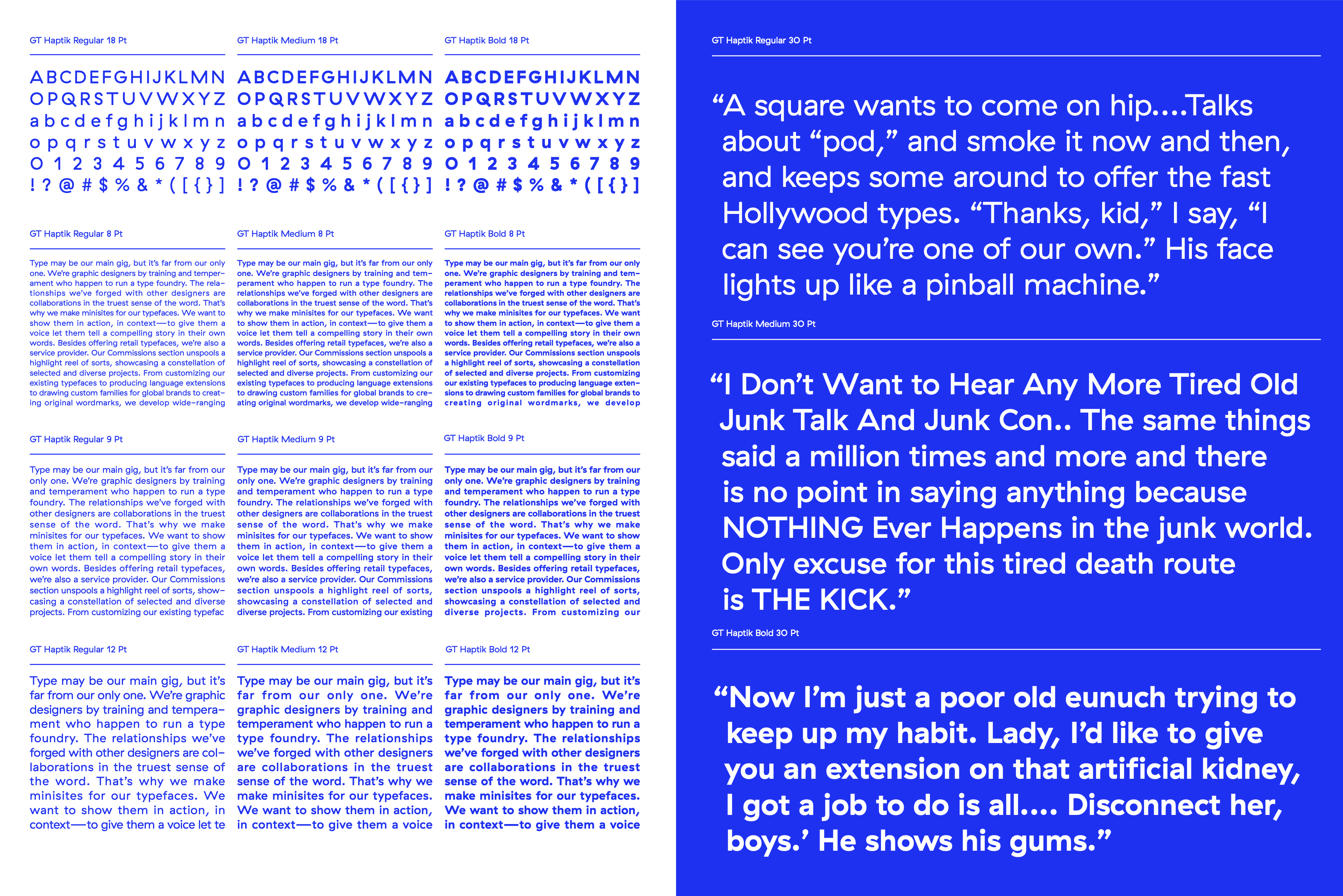 Design a type specimen booklet using context from William Burroughs Naked Lunch.