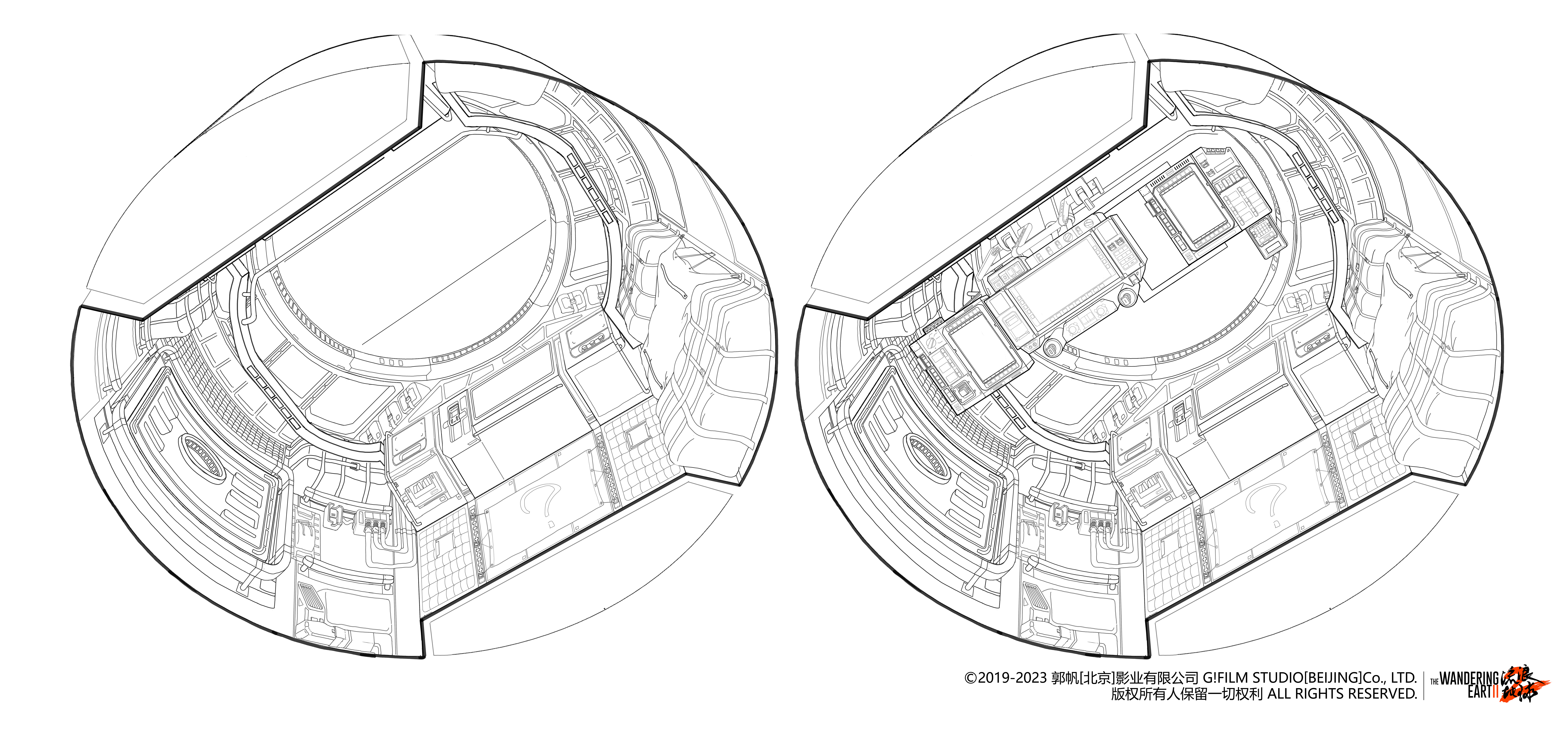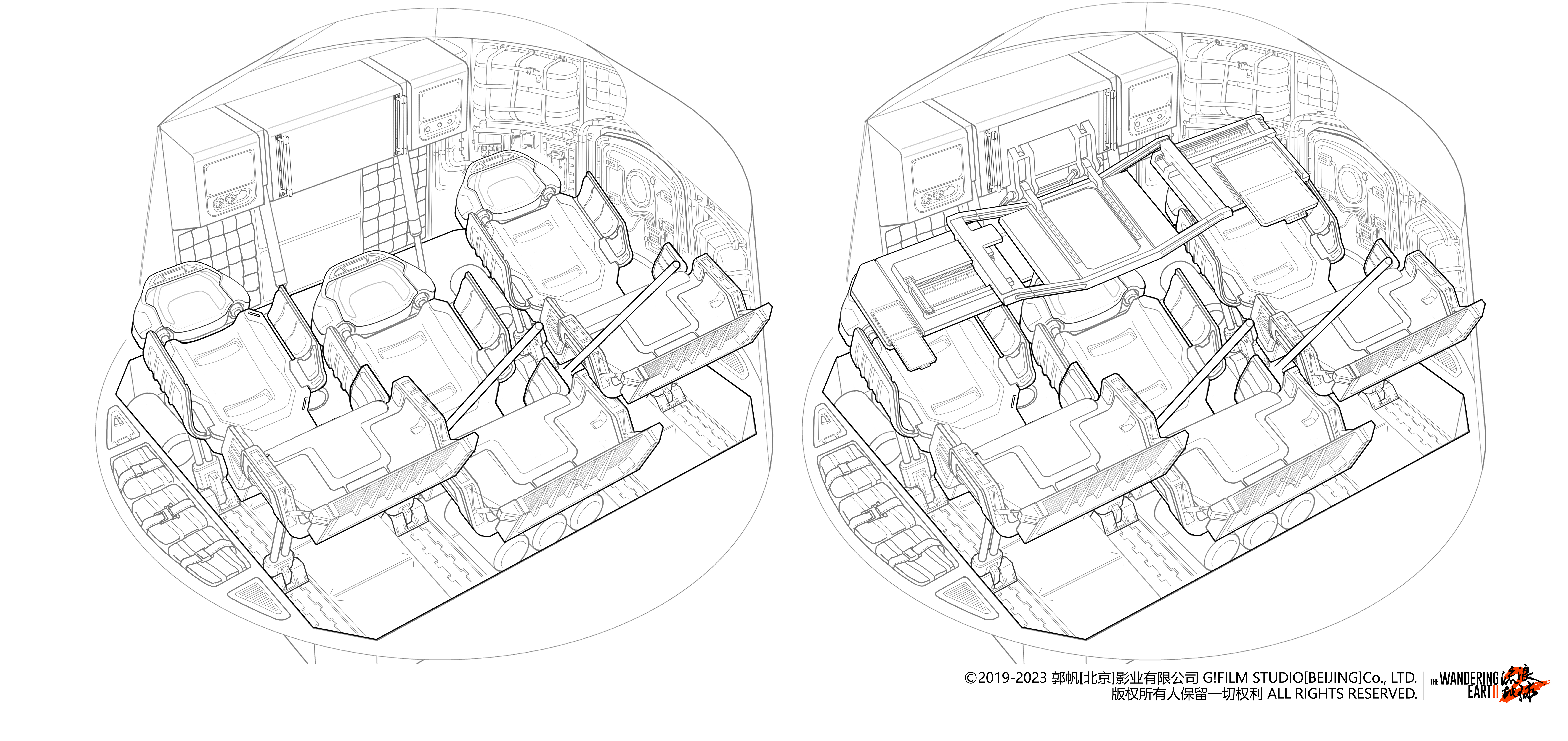 Interior of the re-entry module in the The Wandering Earth 2