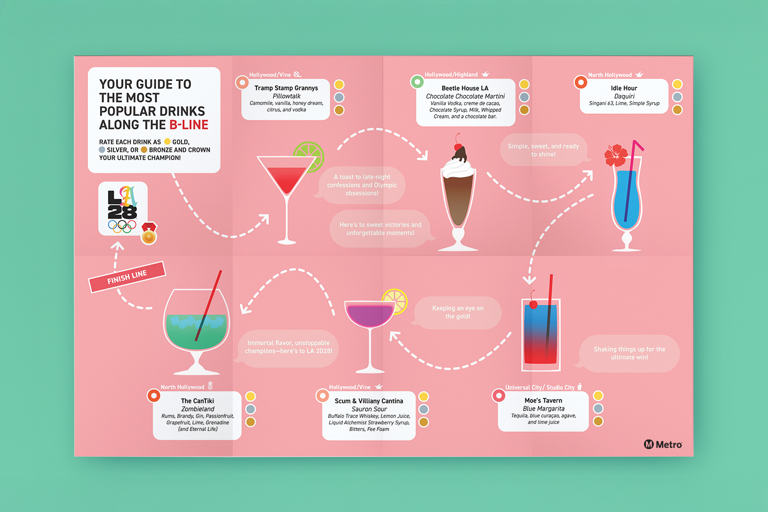 A conceptual collaboration celebrating the 2028 Los Angeles Olympic Games through a reimagined Metro experience. This project transforms the B Line into a themed route of Olympics-inspired bars and lounges, each stop reflecting a different culture, sport, or local identity.