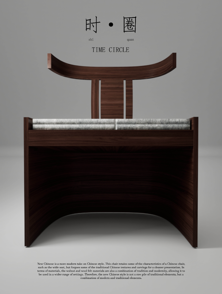New Chinese is a more modern take on Chinese style. This chair retains some of the characteristics of a Chinese chair, such as the wide seat, but forgoes some of the traditional Chinese textures and carvings for a cleaner presentation. In terms of materials, the walnut and wool felt materials are also a combination of tradition and modernity, allowing it to be used in a wider range of settings.