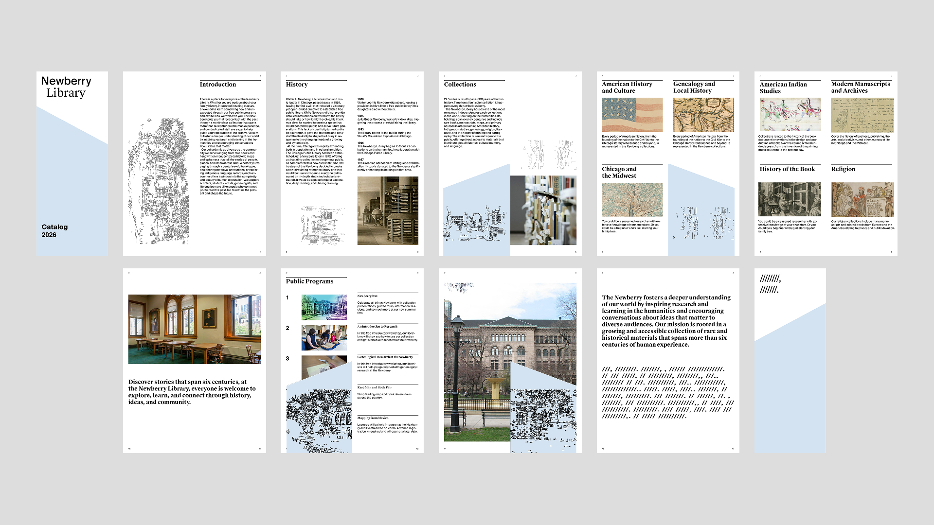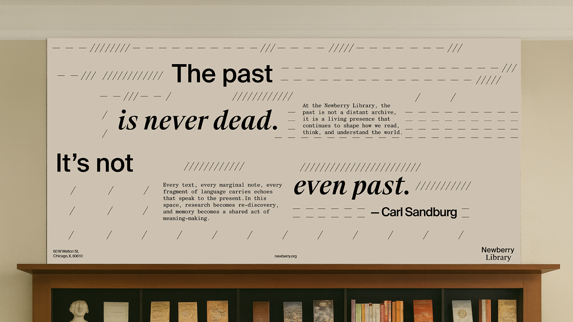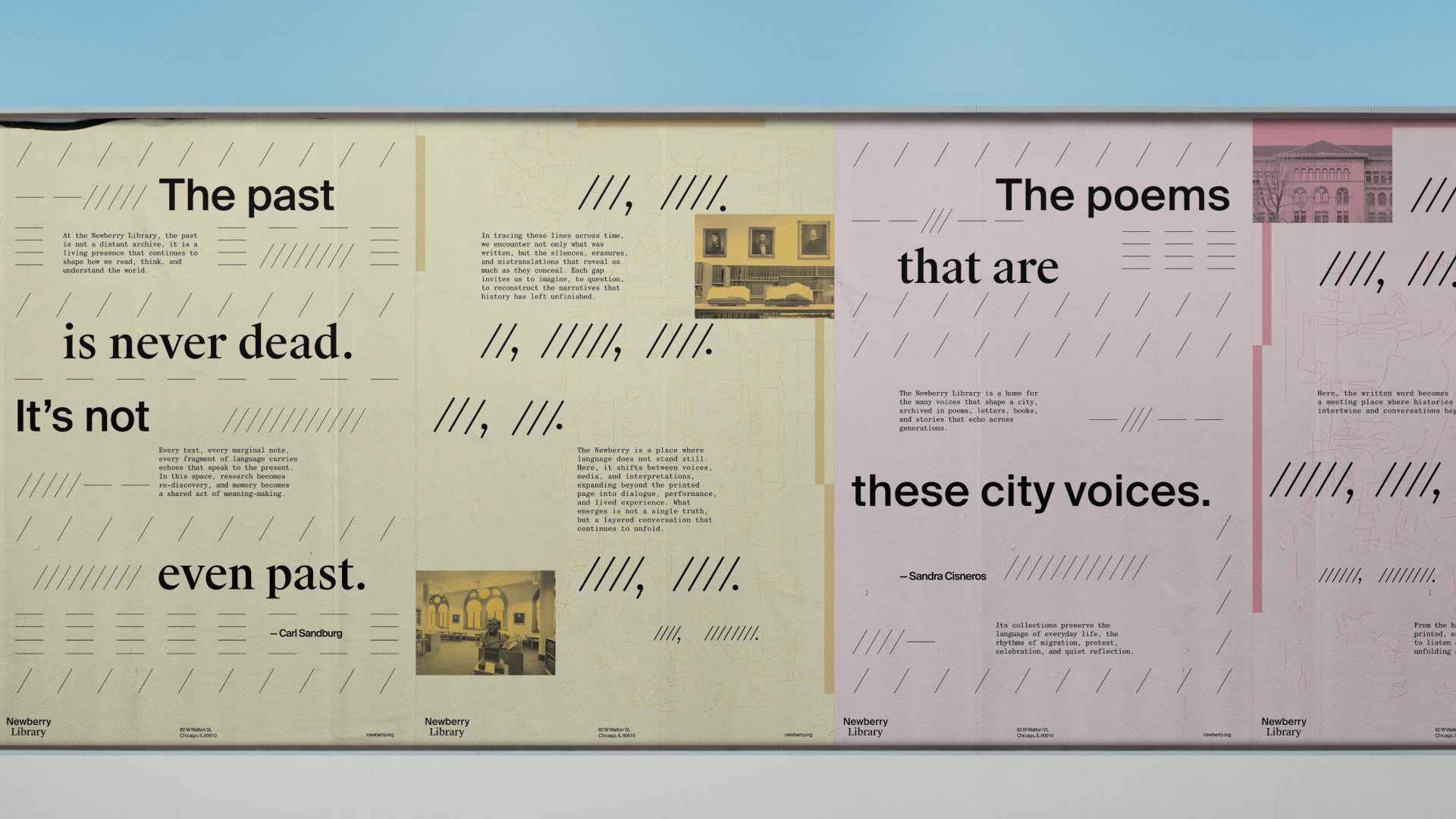 Founded in 1887, the Newberry Library stands as a vital center for the preservation and exploration of the written word. To honor its role as a guardian of language, translation, and cultural memory, this project reimagines the library’s identity through the lens of reading rhythm and the structure of knowledge. Drawing inspiration from a spatialized punctuation system, the design reflects the pauses, flows, and movements of thought.