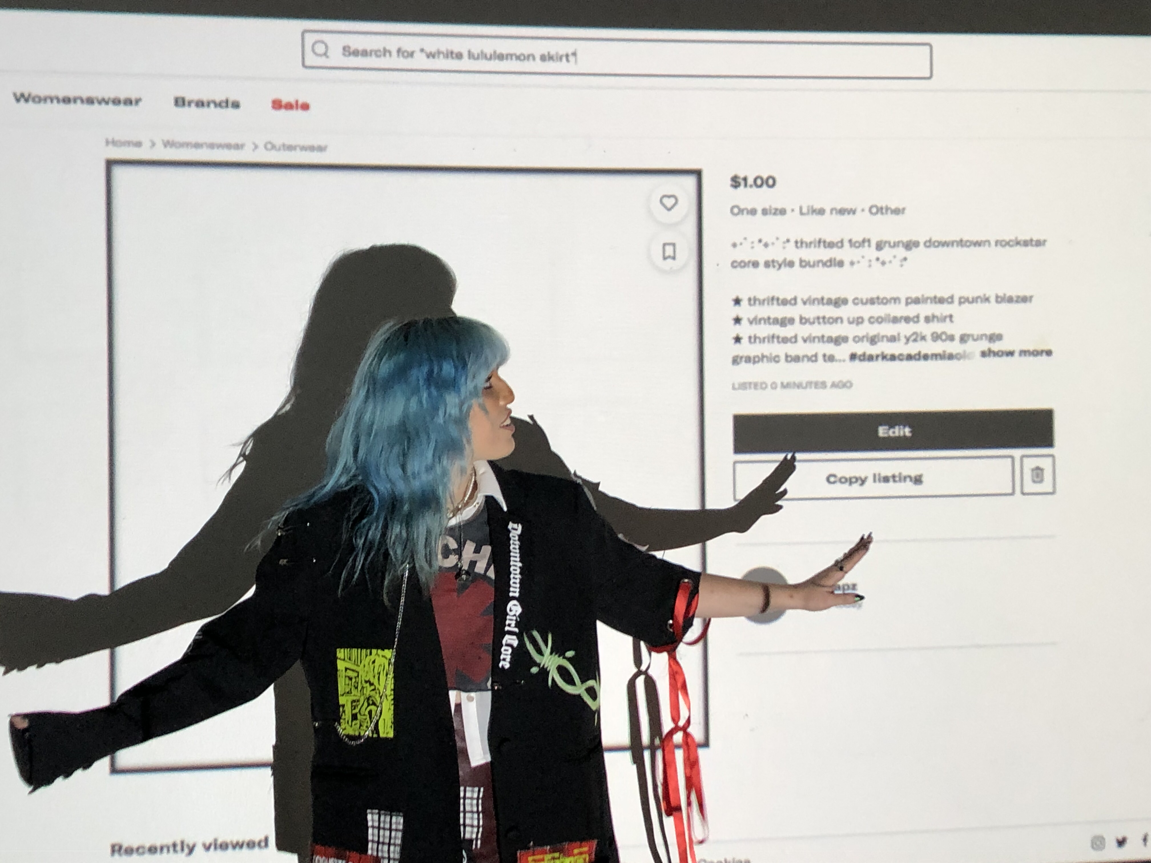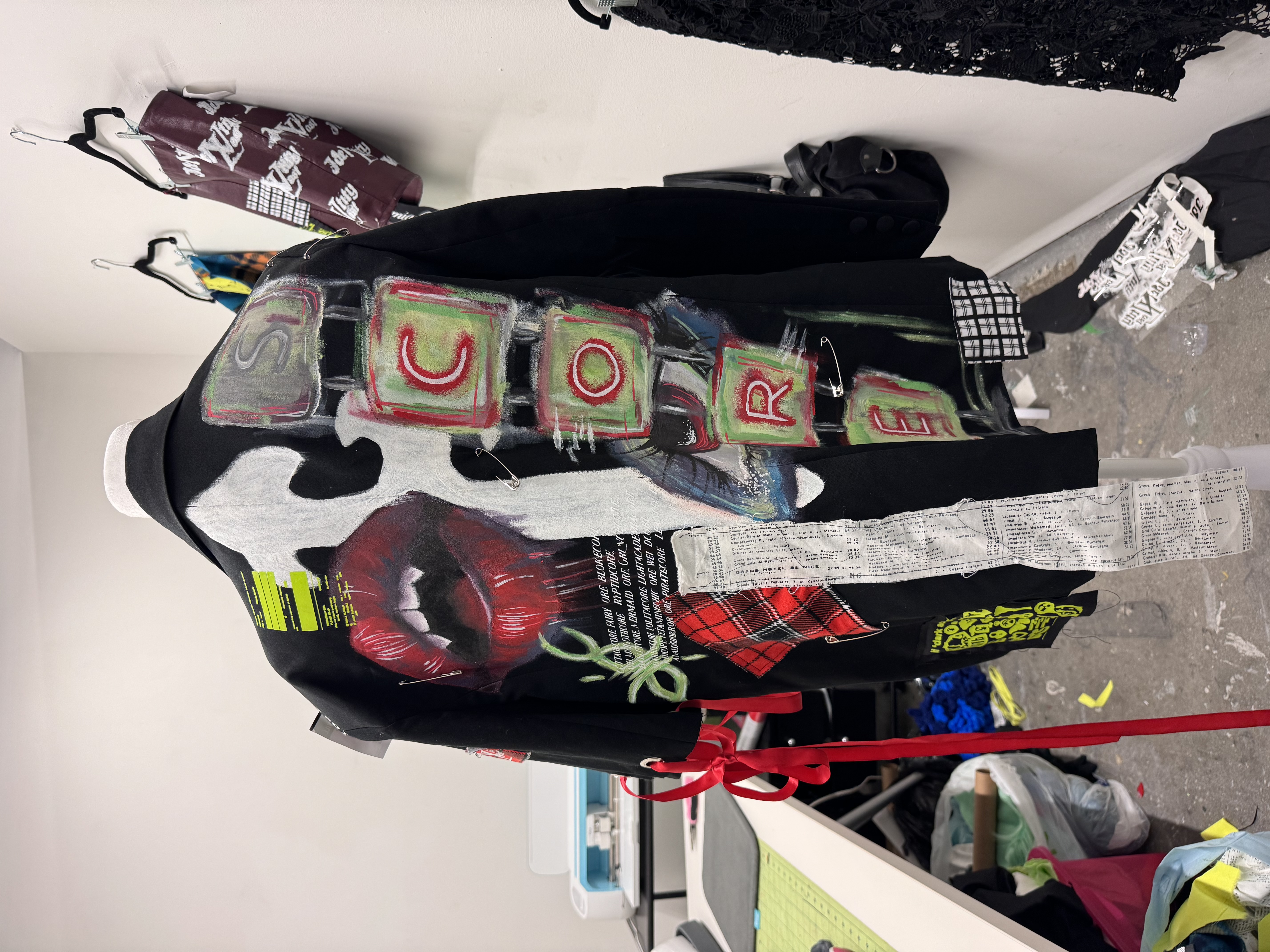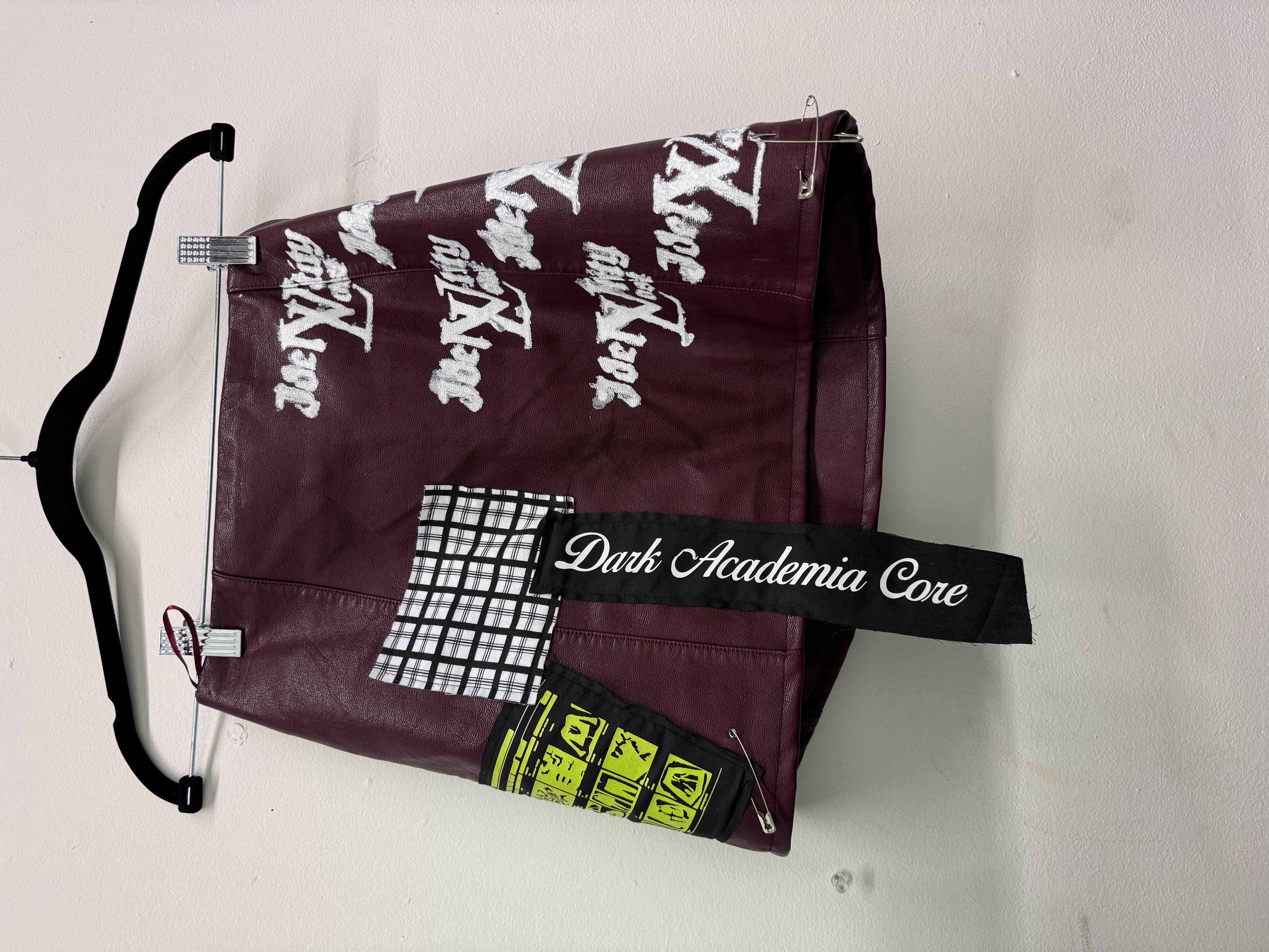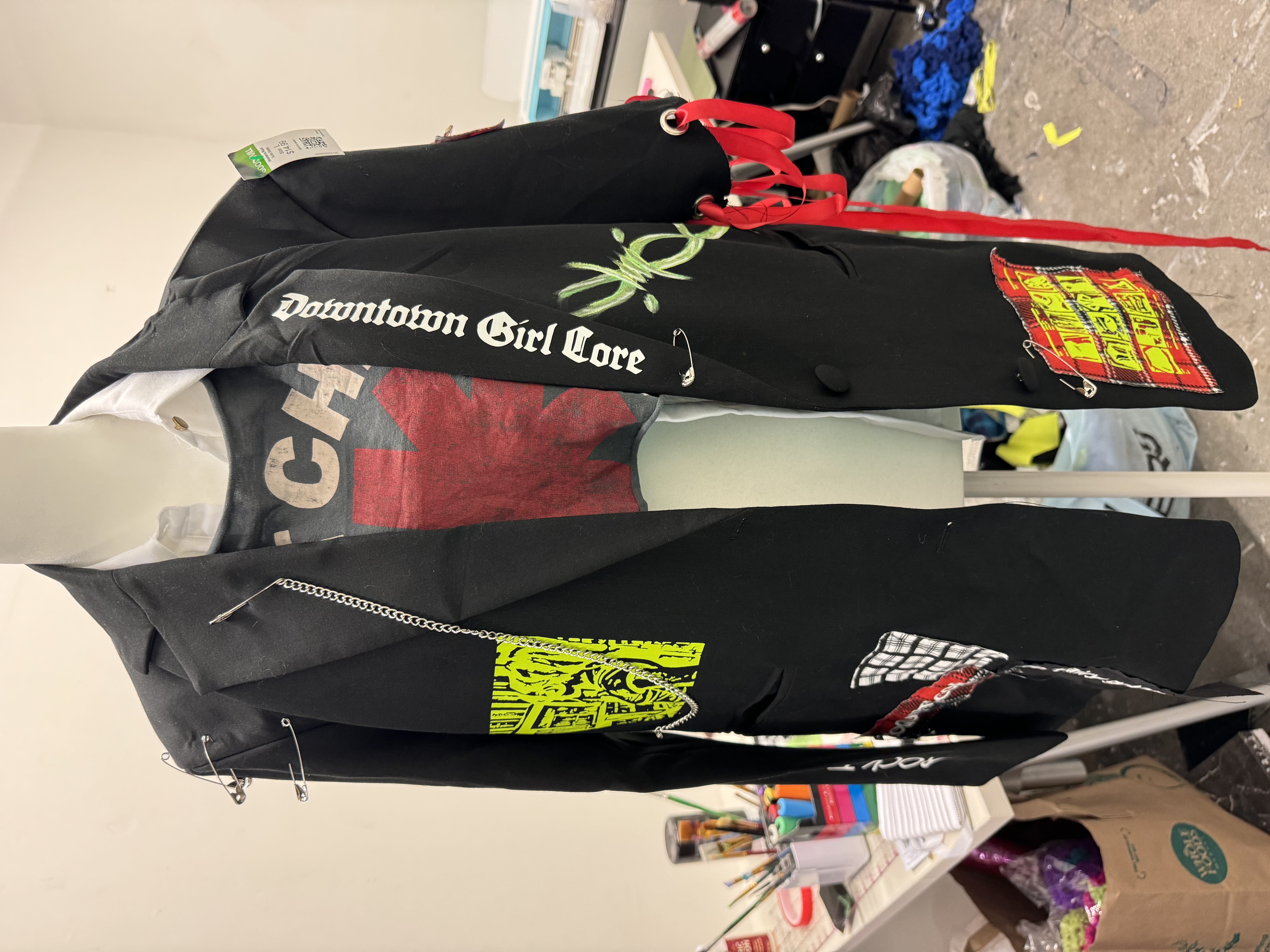 Graduates Select DepartmentBrand Design & StrategyCreative DirectionEntertainment DesignFilmFine ArtFurniture, Lighting and FixturesGraduate ArtGraduate FilmGraduate Graphic DesignGraduate Interaction DesignGraduate Spatial Experience DesignGraphic DesignIllustrationIndustrial DesignInteraction DesignMedia Design PracticesPhotography and ImagingProduct DesignSpatial Experience DesignTransportation DesignTransportation Systems and Design Back to Projects Mia Zappala BFA in Fine Art — Fine Art At It's -Core thrifted suit jacket, thrifted leather skirt, thrifted lace skirt, thrifted button up shirt, thrifted band shirt, acrylic paint, iron-on vinyl, leather paint, cotton fabric, metal grommets, satin ribbon, safety pins, metal chain Image Image Image Image