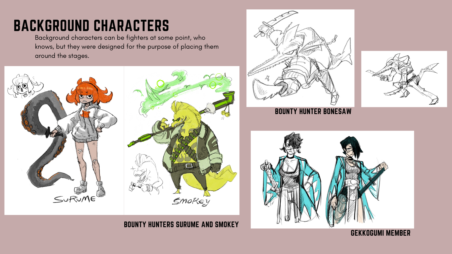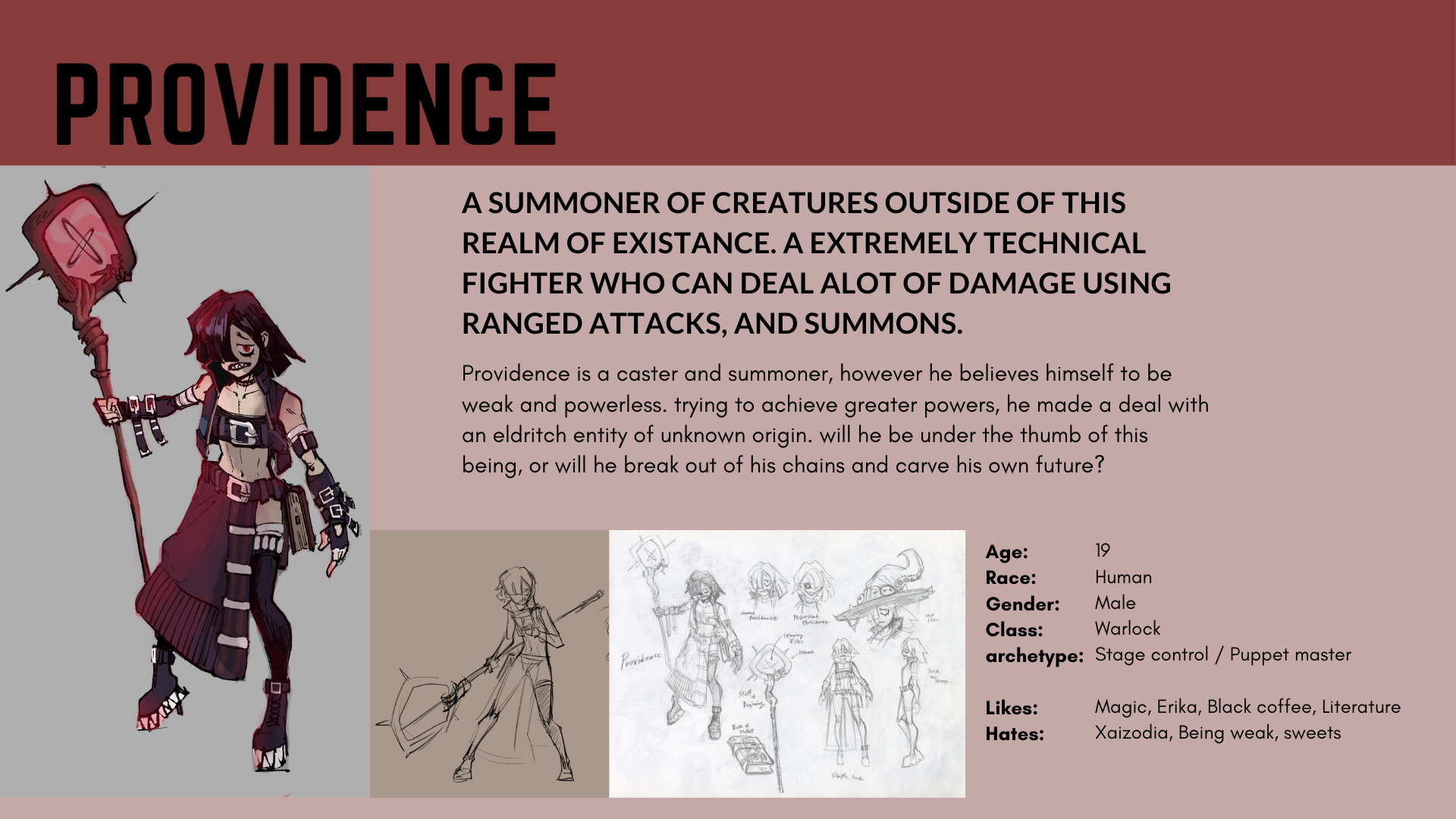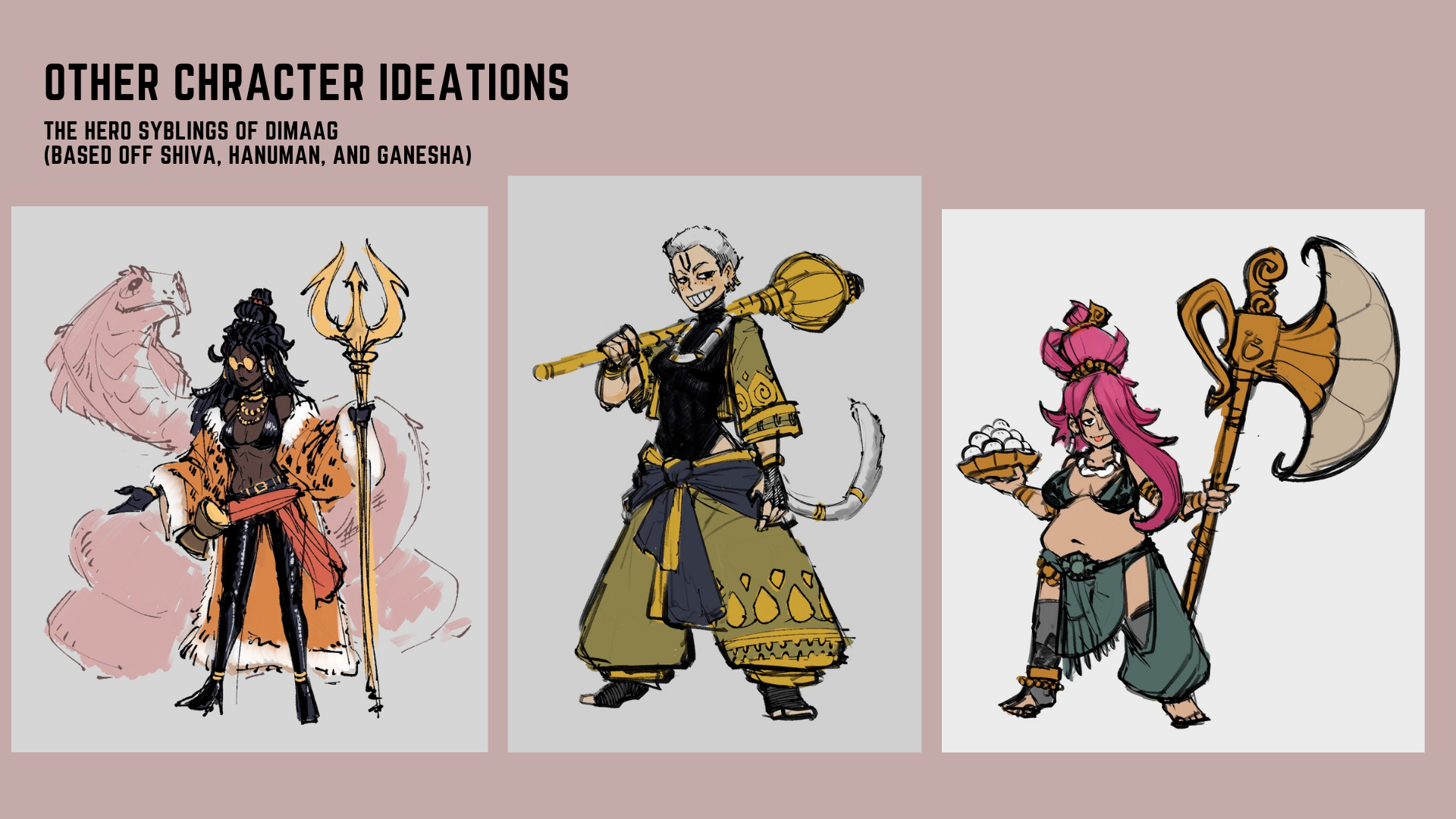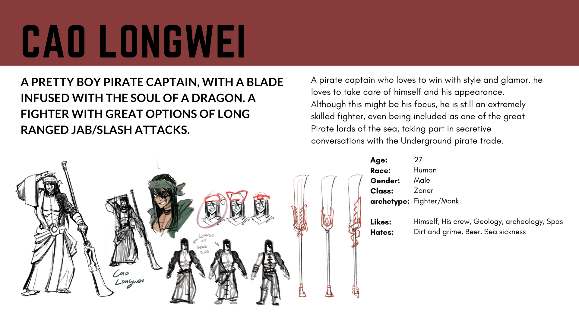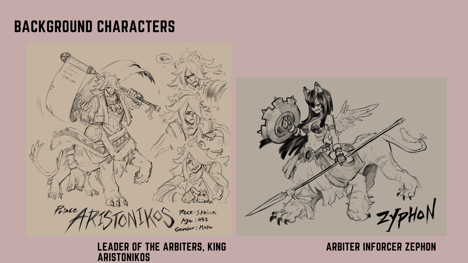 Instructor: Adam Dix This is a little side project I was working on, a fantasy fighting game concept. Originally started as a final project for character design class taught by Adam Dix (2023 Spring). these are mostly sketches so far, so I compiled everything into a little presentation. after graduation I'm planning to polish everything to the point where its presentable as a Presentable project.