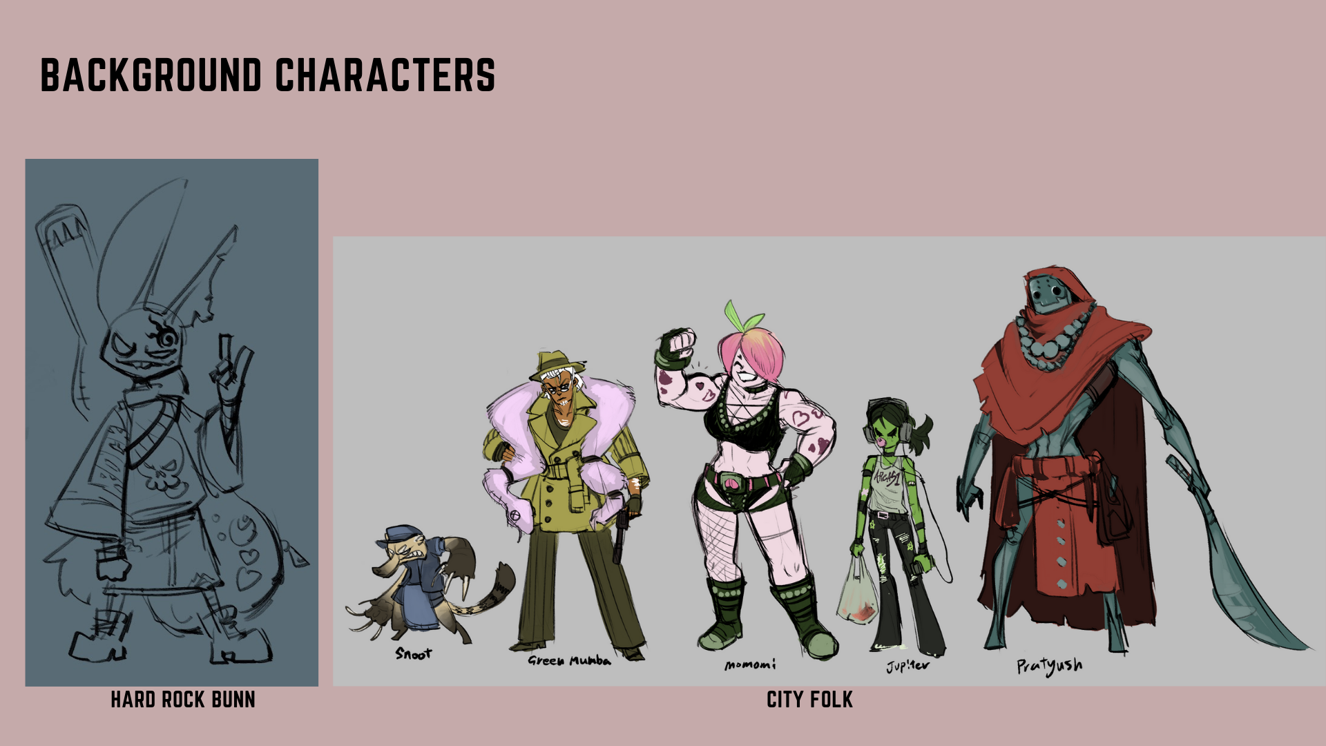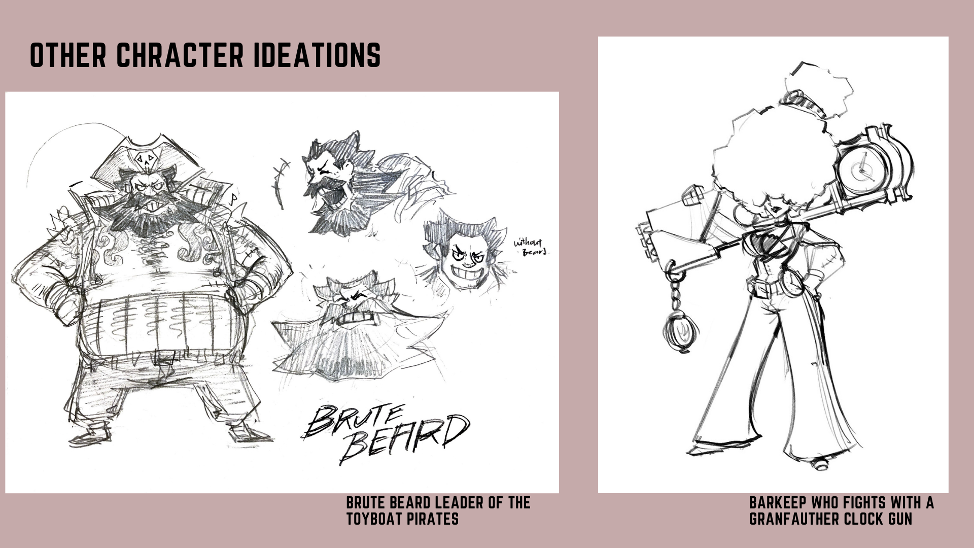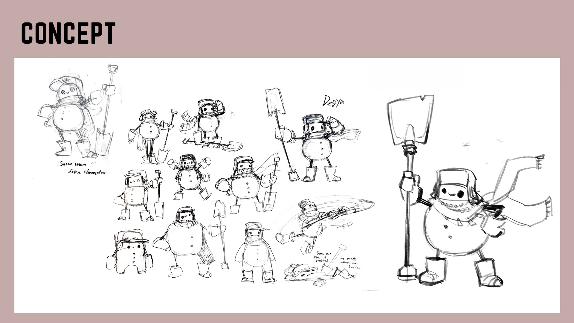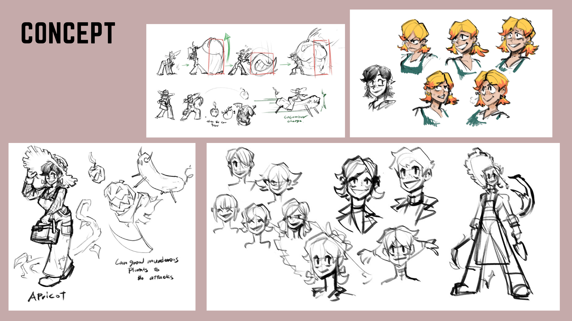 learned about experimenting with unique shapes and sizes for characters. learning how to sketch out ideations for characters, poses, and expressions. learned how to simplify, and improve designs. learned how to do turn arounds.