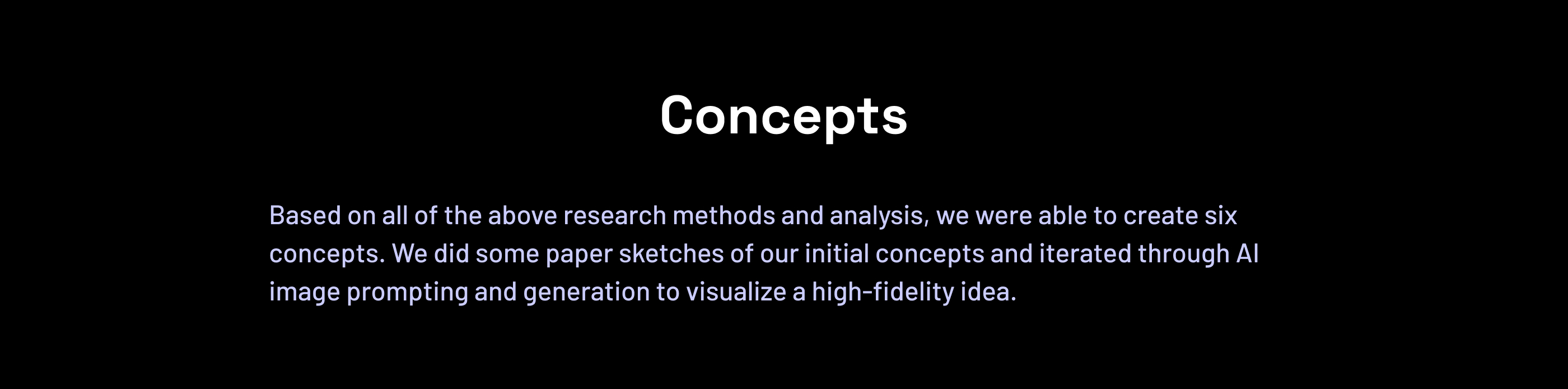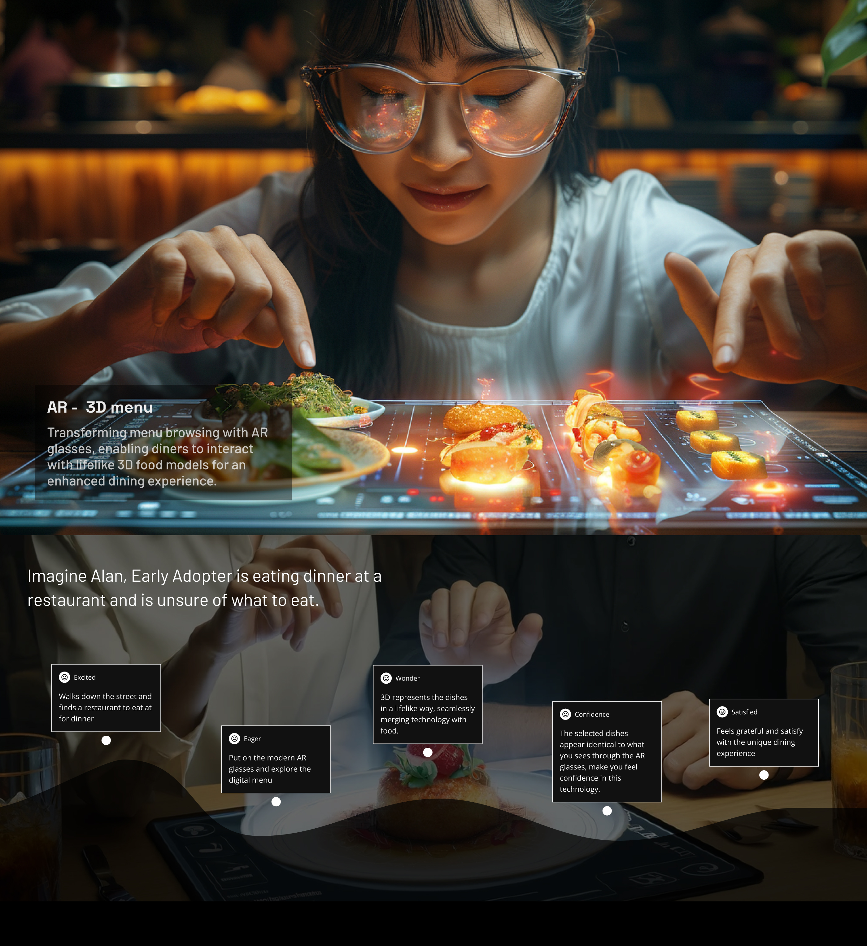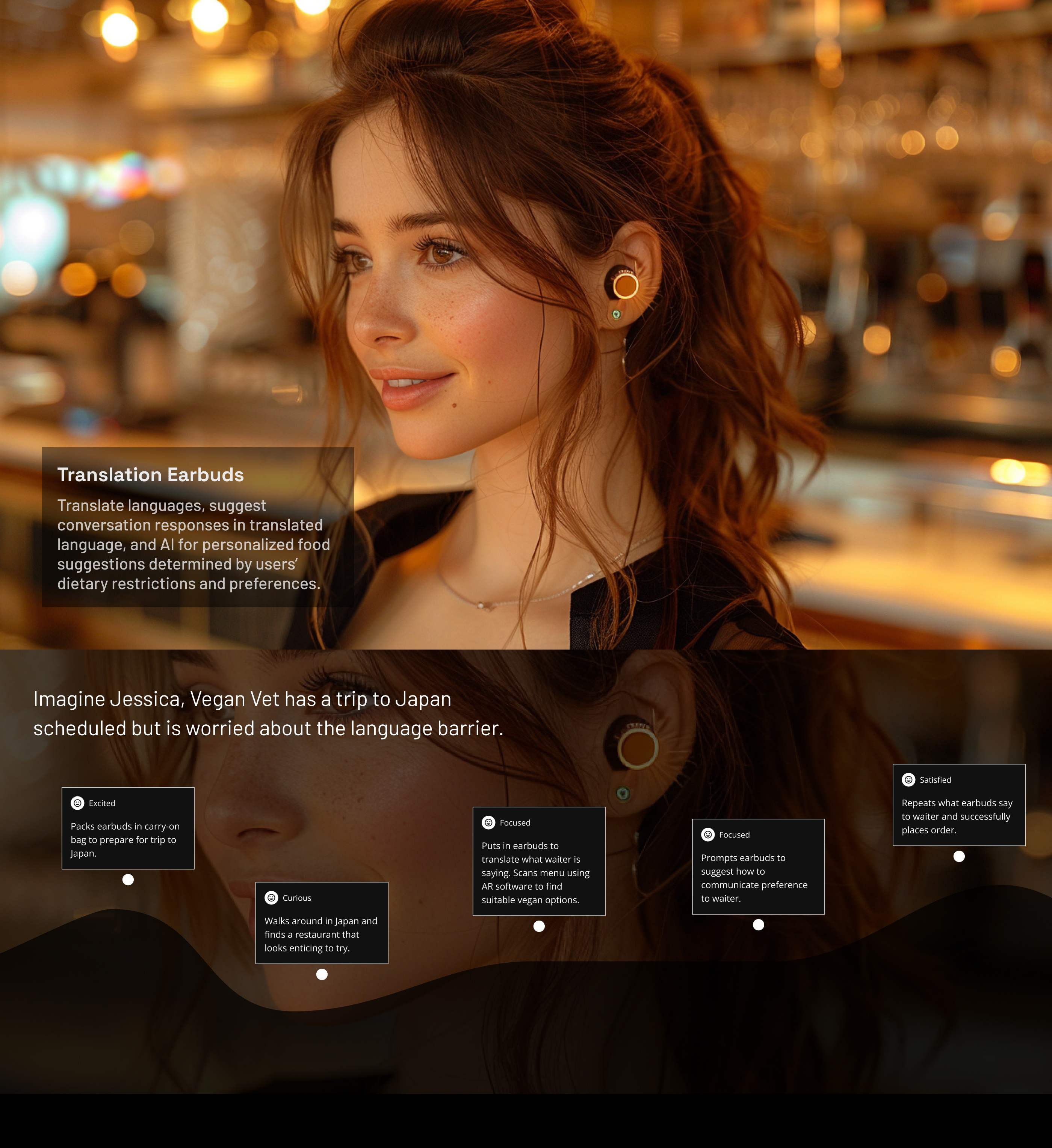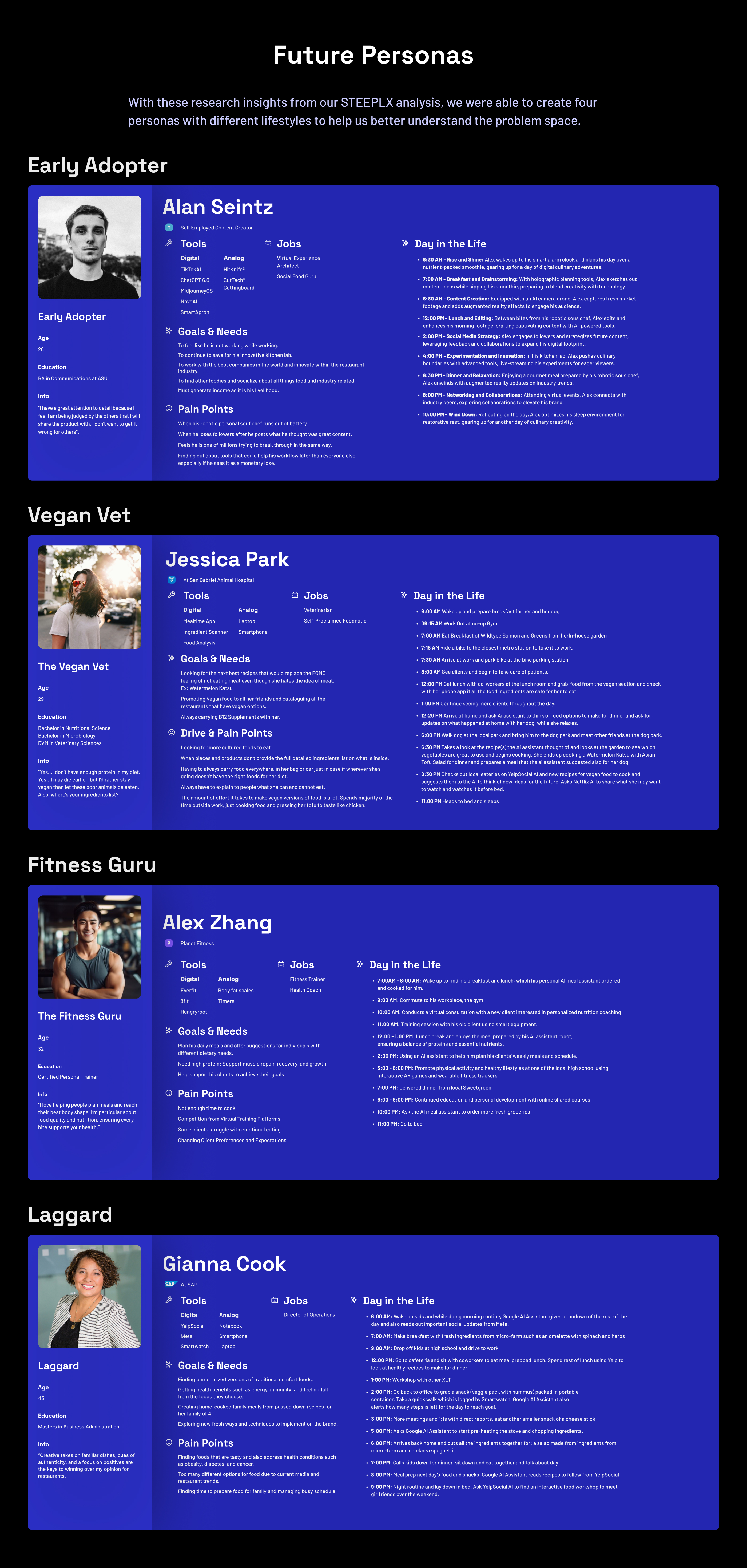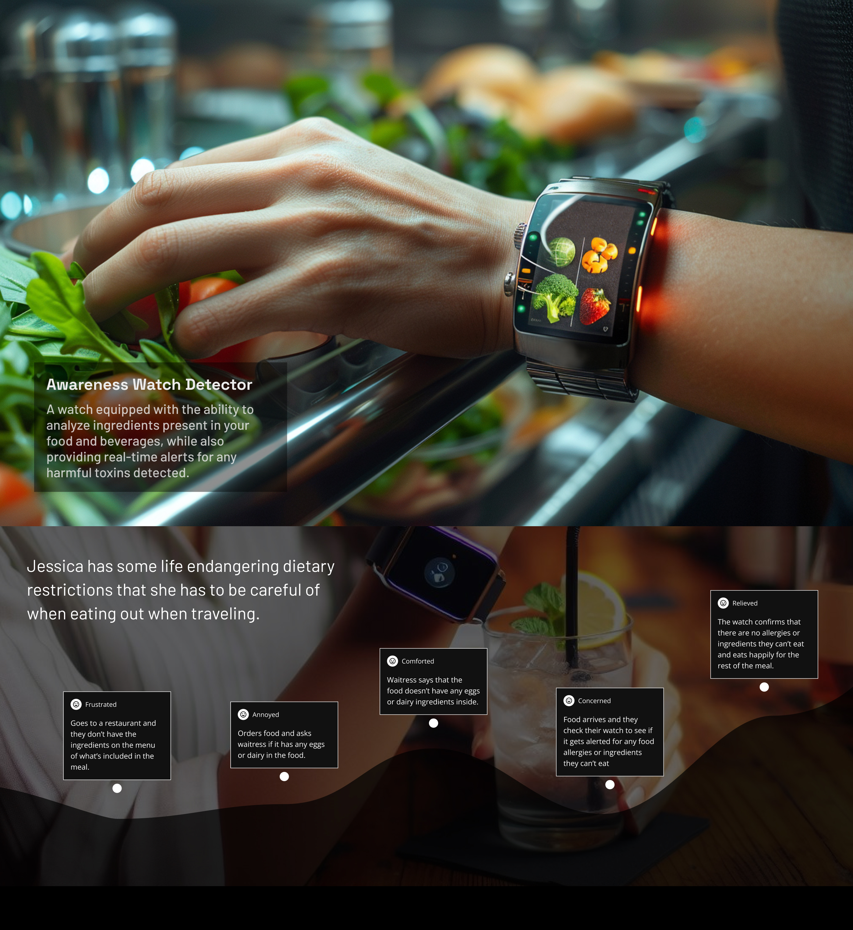 Utilizing four personas and a morphological analysis, our team was able to speculate new concepts to facilitate human interaction with food. Team members: Andrea Chau, Eric Fillingame, Mengdian Xing, Michelle Chen.