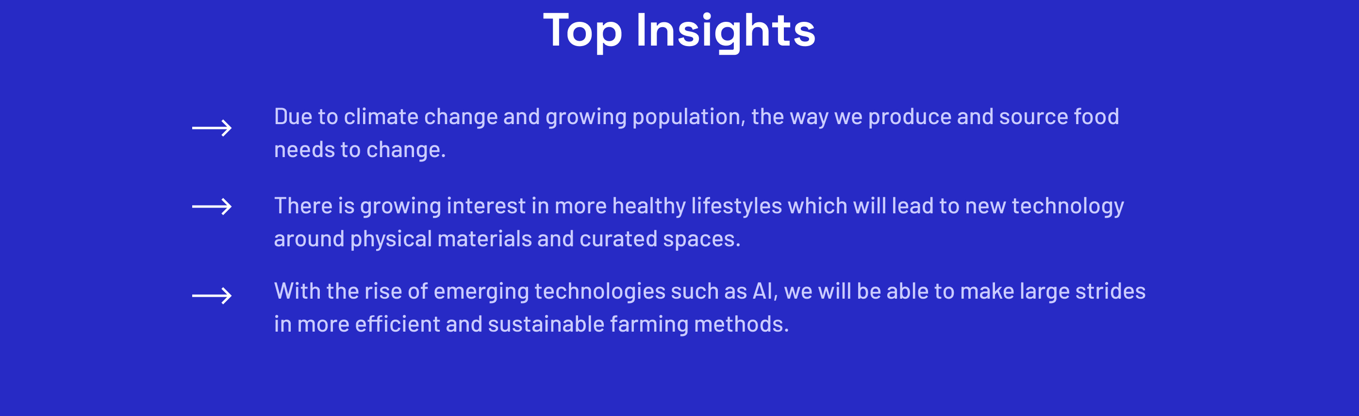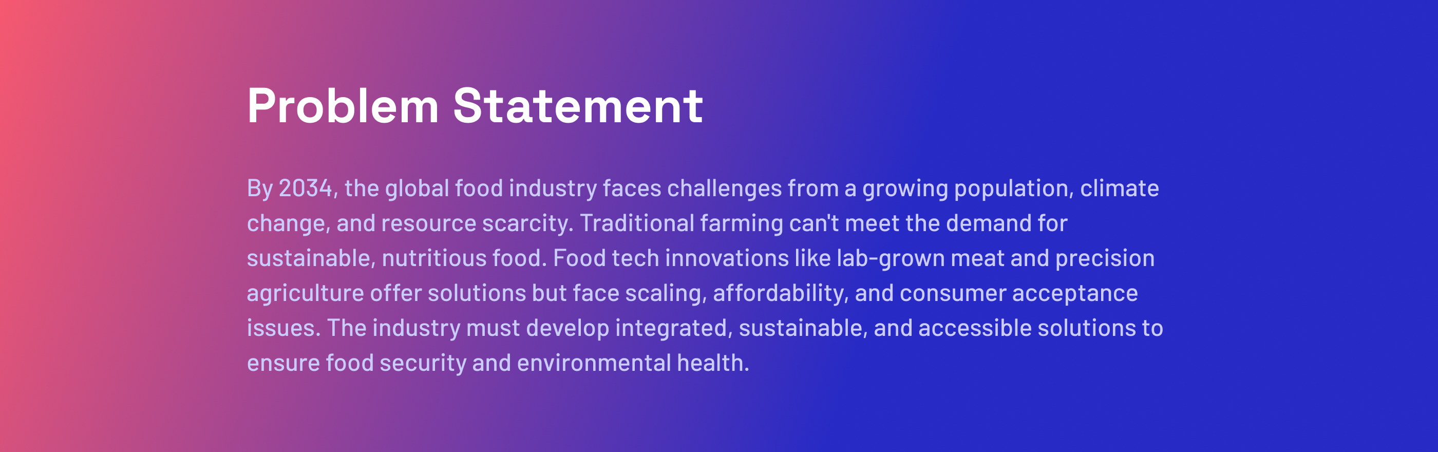 This report utilizes the Delphi Framework to explore the future of food technology in 2034. Reports project that the world will have 43 megacities by 2030 which demonstrates the need for deep infrastructural change and how we produce and make food.