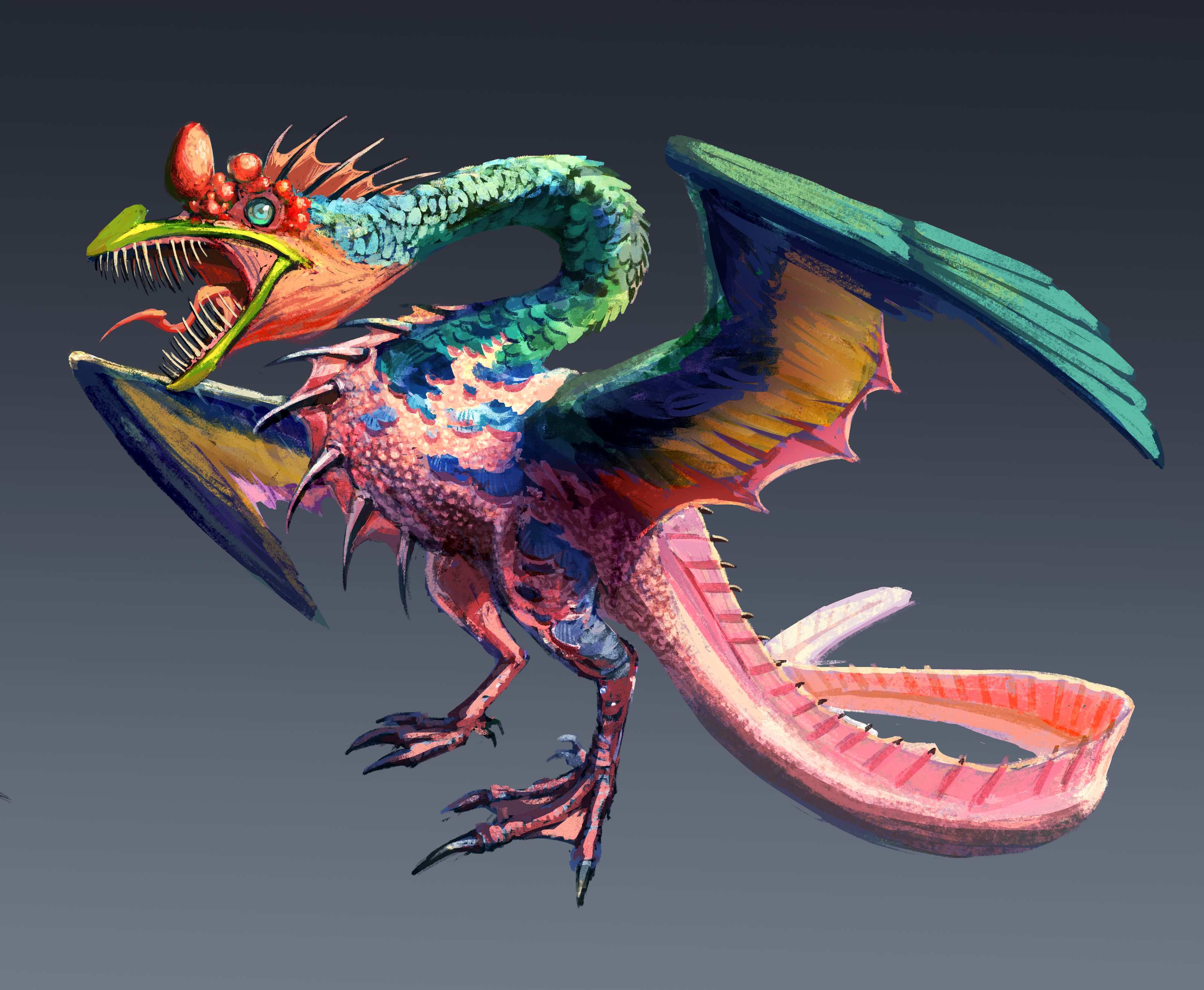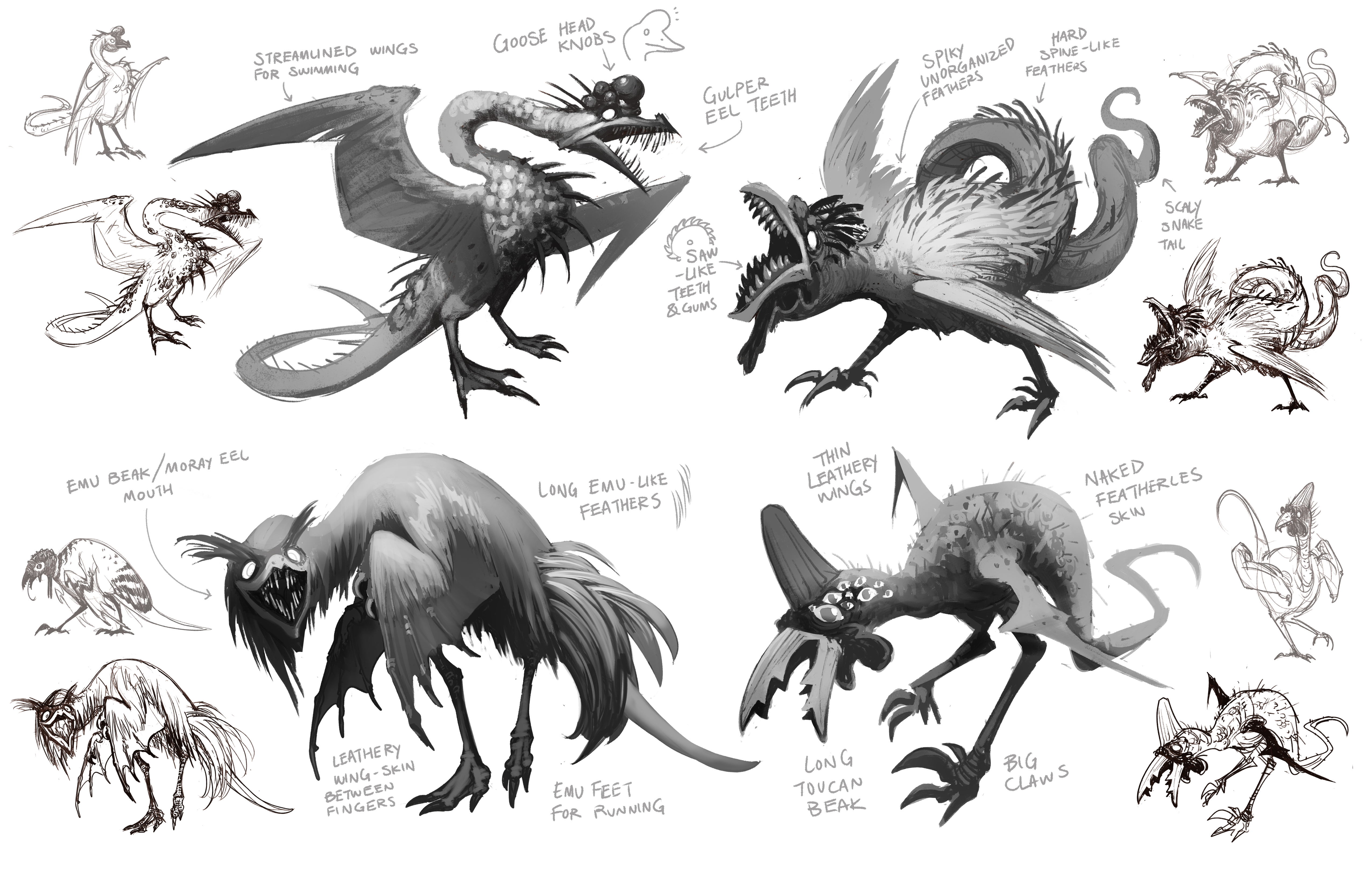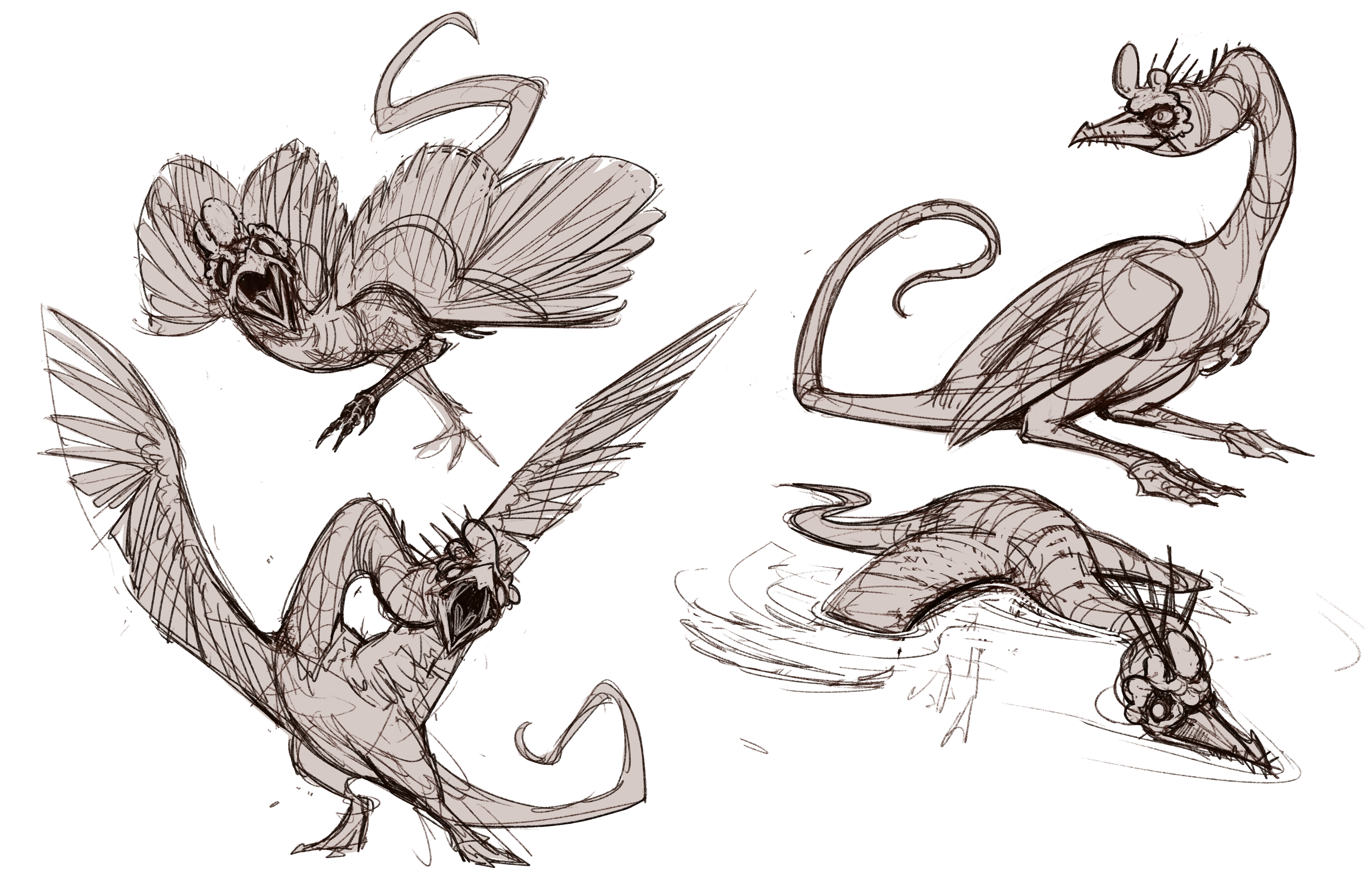 Design process of a mythological cockatrice that instead lives in an aquatic environment.