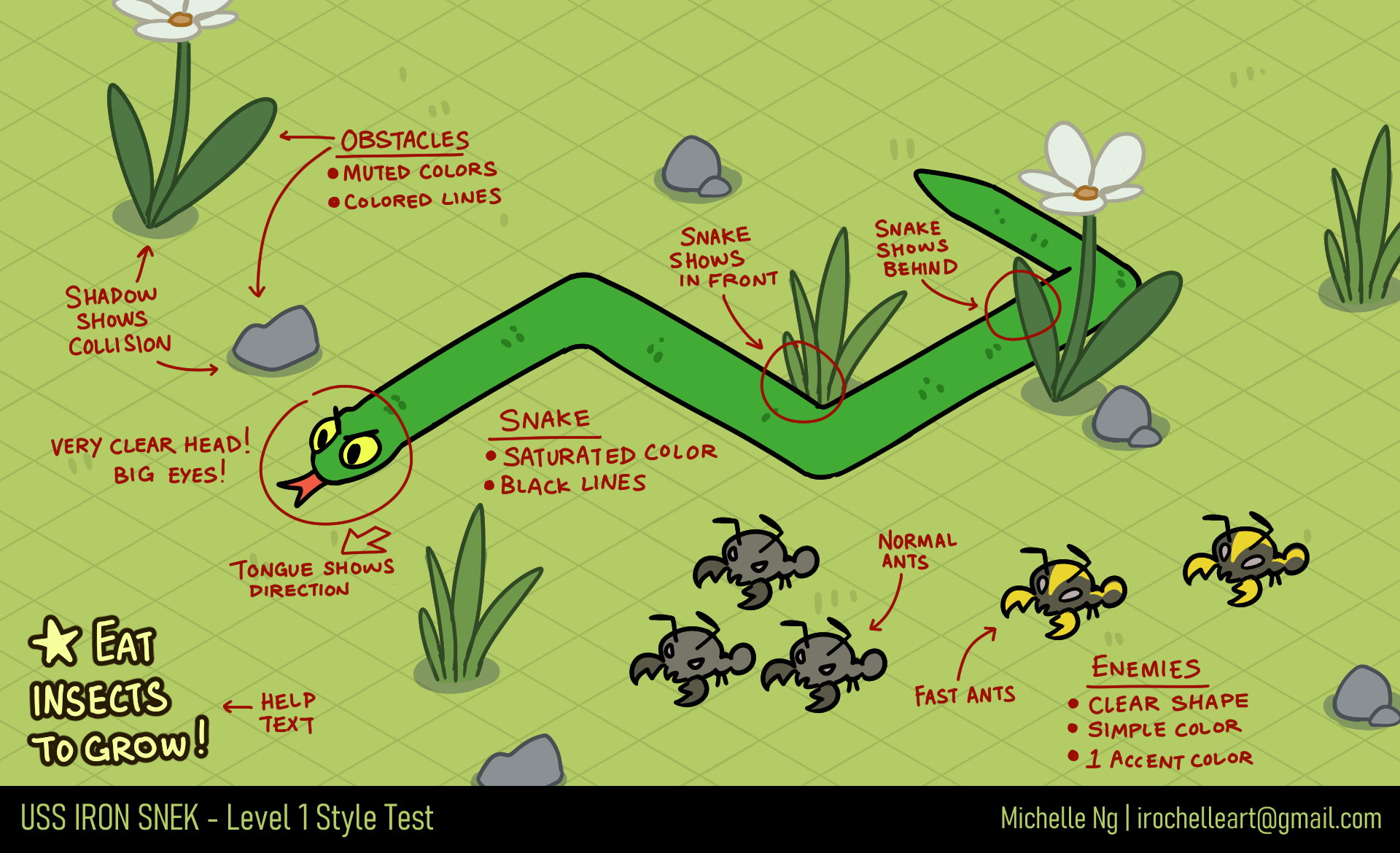 Splash art, art direction style guides, and game assets I created for Kaboom-Aconda. Submission to GMTK Game Jam 2024 "Kaboom-Aconda: Feed your snake to grow and take over the world!"