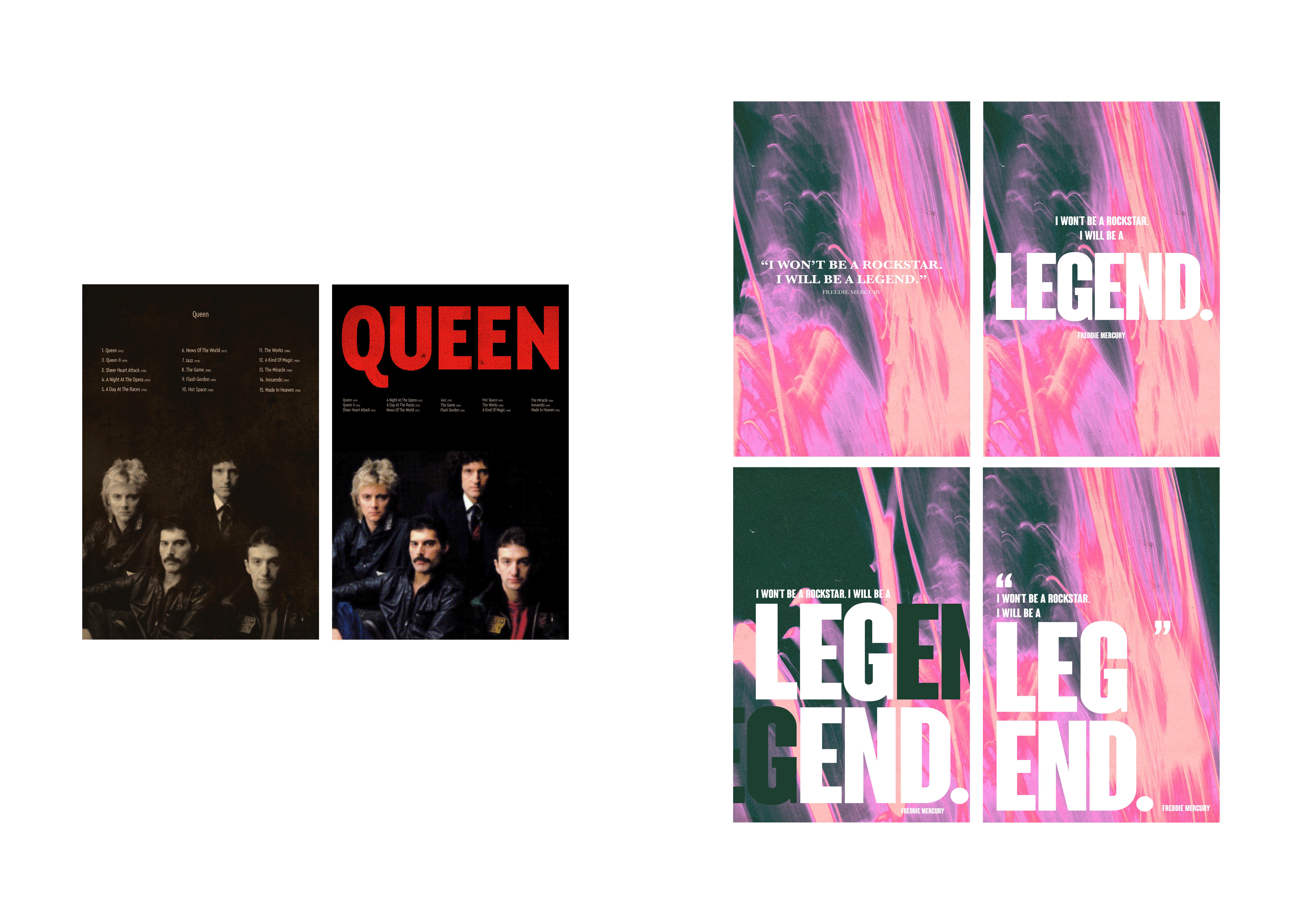 The goal of this project was to create a visually engaging perspective that conveys an emotional response through typography. I researched about my favorite bands of all time, Queen and made poster seires: Concert Tour Poster, Tribute Poster, Typographic Poetry.