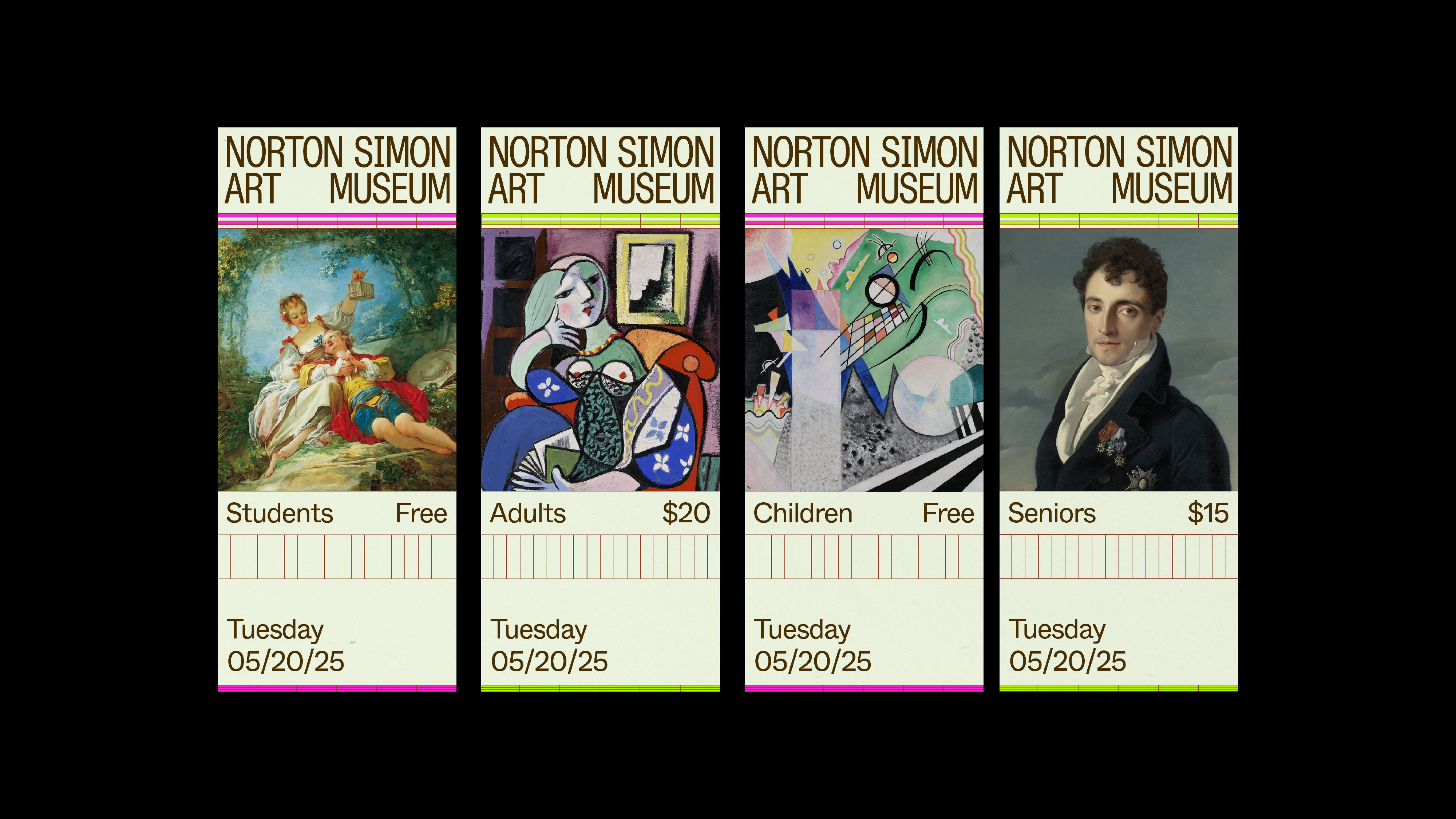 The Norton Simon Art Museum is renowned for its impressive collection of European paintings, sculptures, and South Asian art. For the rebranding, I took inspiration from the museum’s architectural structure, particularly its use of rectangular forms and linear textures. Through this design, I aimed to create a fresh, visually engaging identity that resonates with younger generations, making the museum more inviting and accessible while preserving its artistic and historical significance.