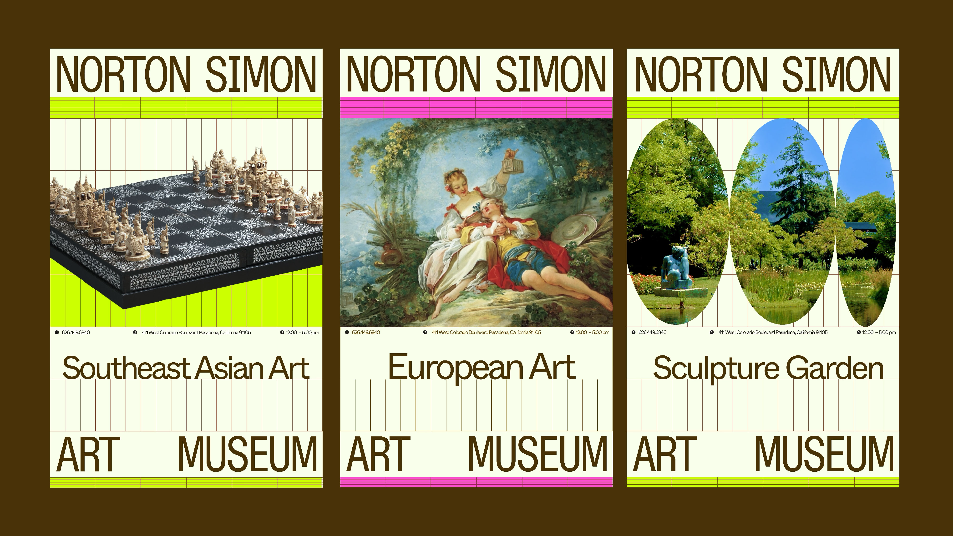 (ON GOING PROJECT) The Norton Simon Museum Rebranding Project addresses the museum's current challenge of attracting young audiences. Inspired by the museum's architectural textures, the new identity features a narrow rectangular grid, modern typography, vibrant colors, and captivating art images. This visually appealing design will refresh the museum's image to better engage young art enthusiasts and increase their overall interest and attendance.