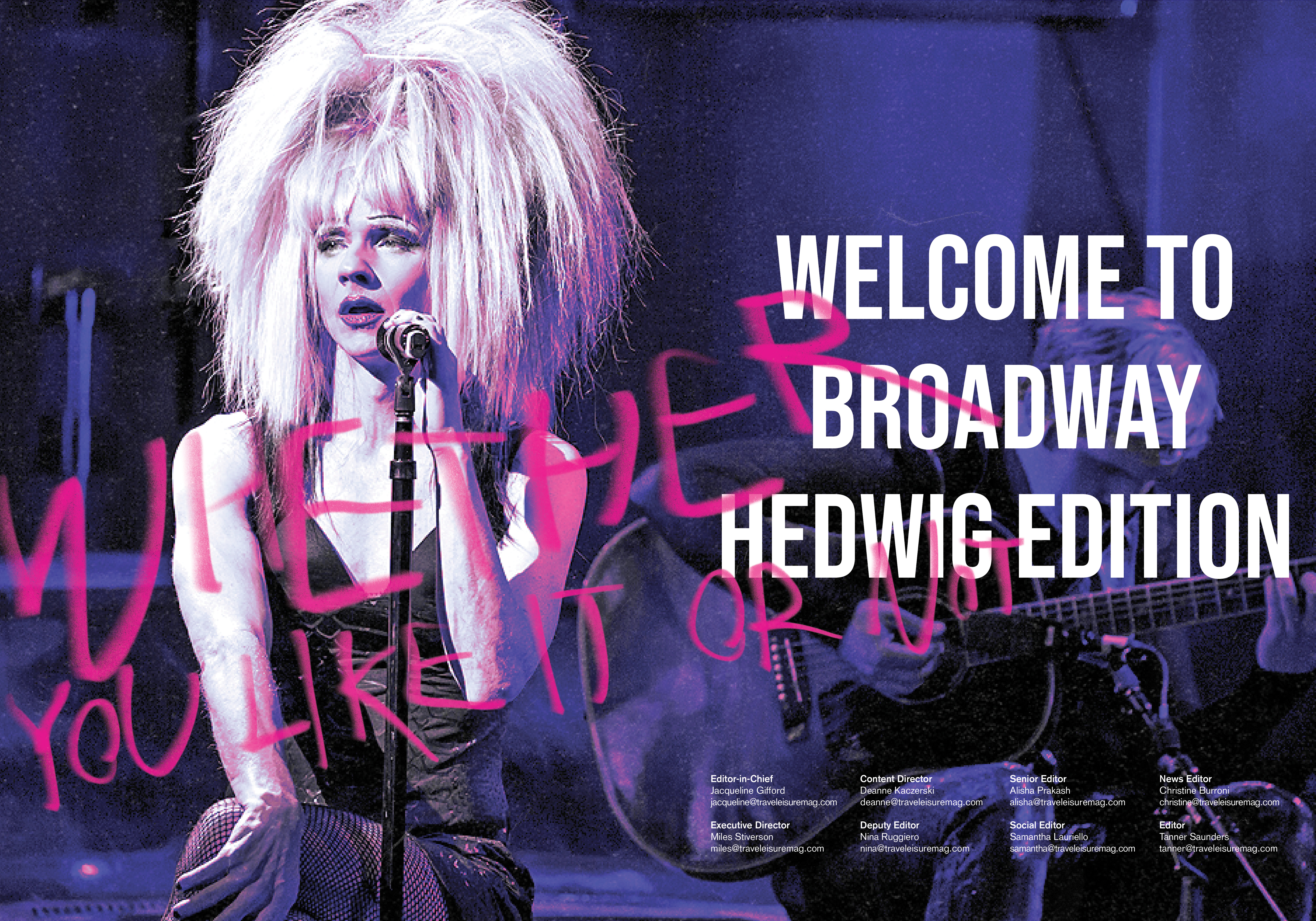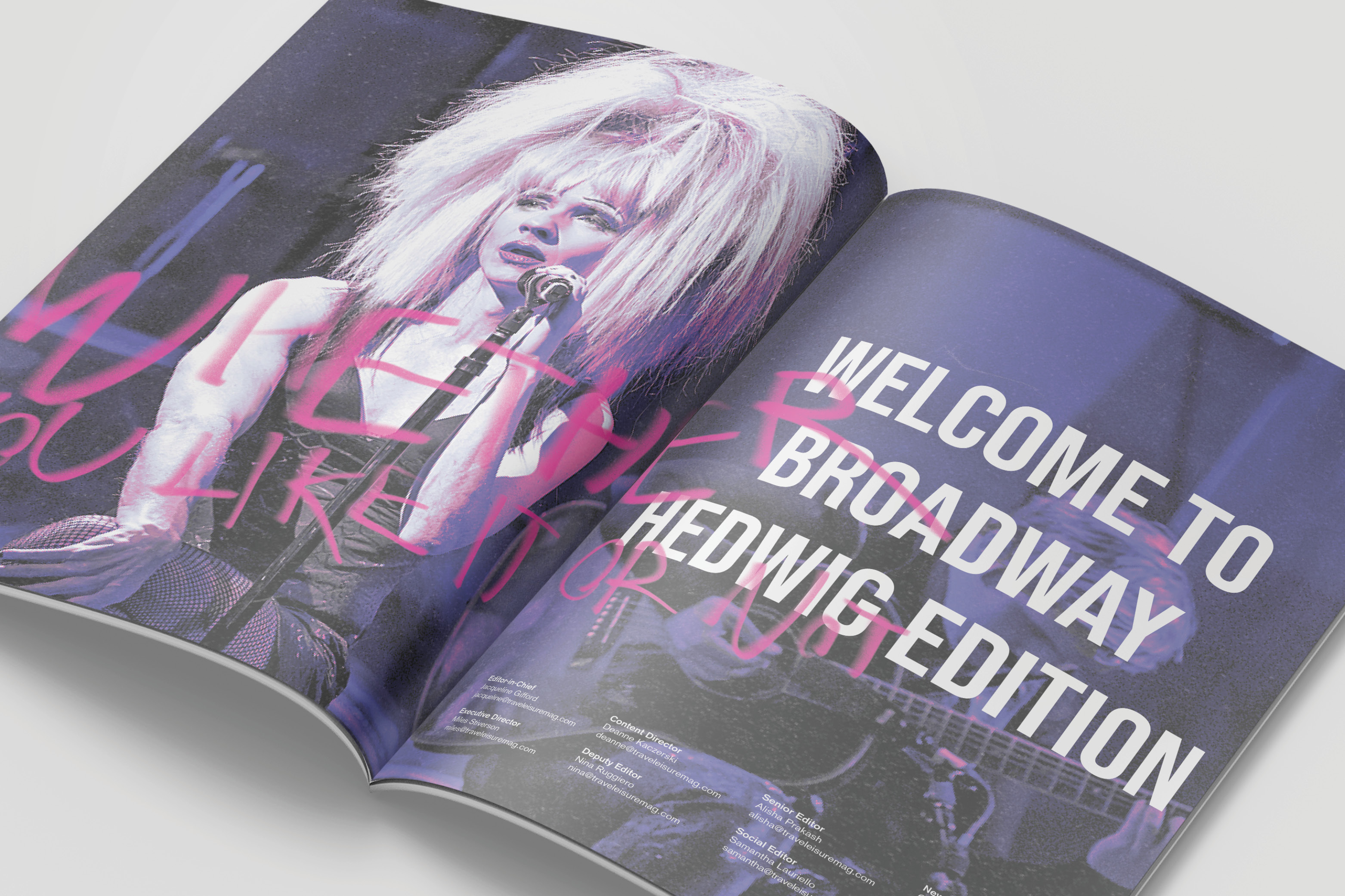 This is a magazine Travel+Leisure redesign made for those who are interested in Broadway, NY especially musical Hedwig and the Angry Inch.