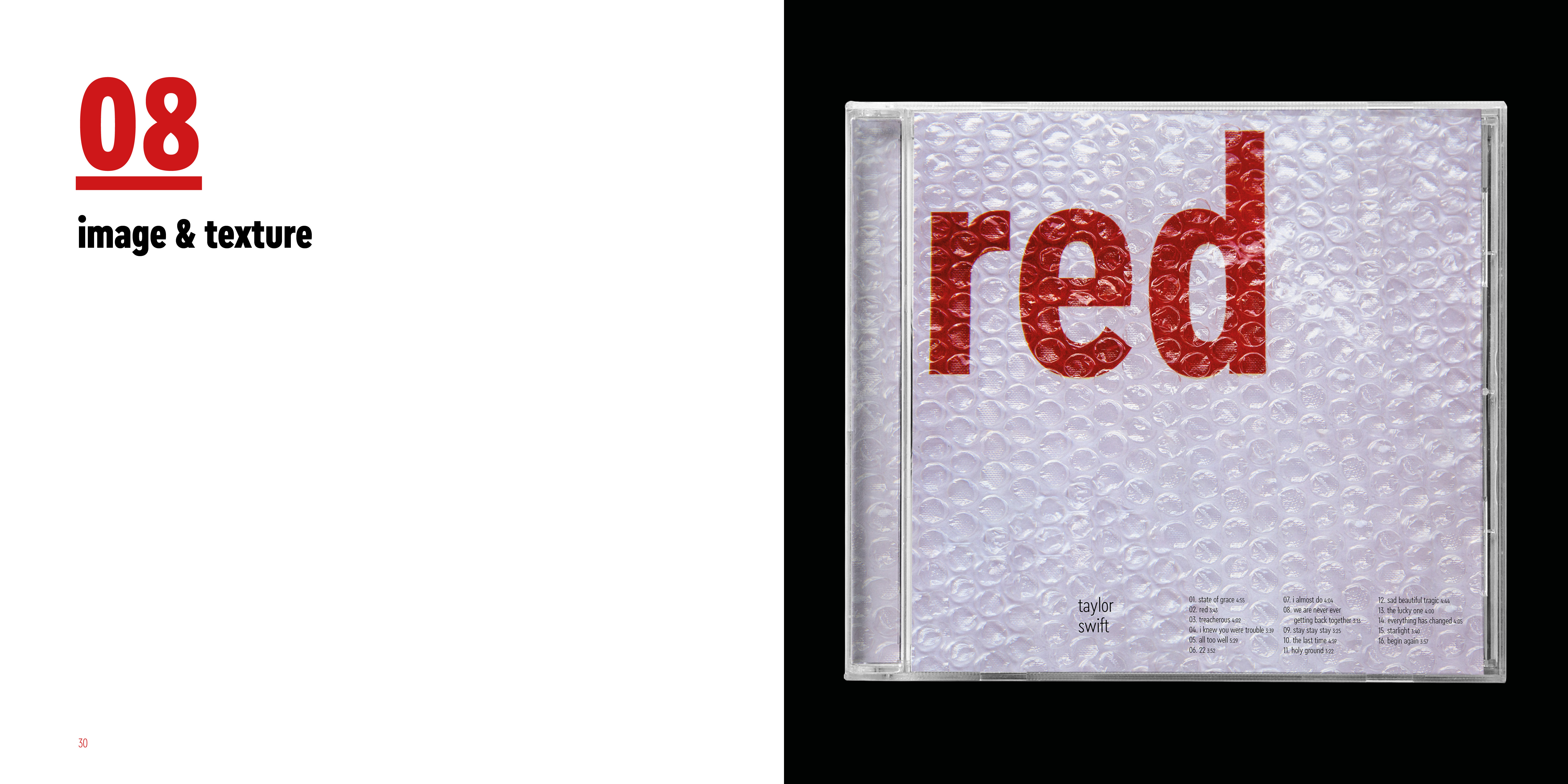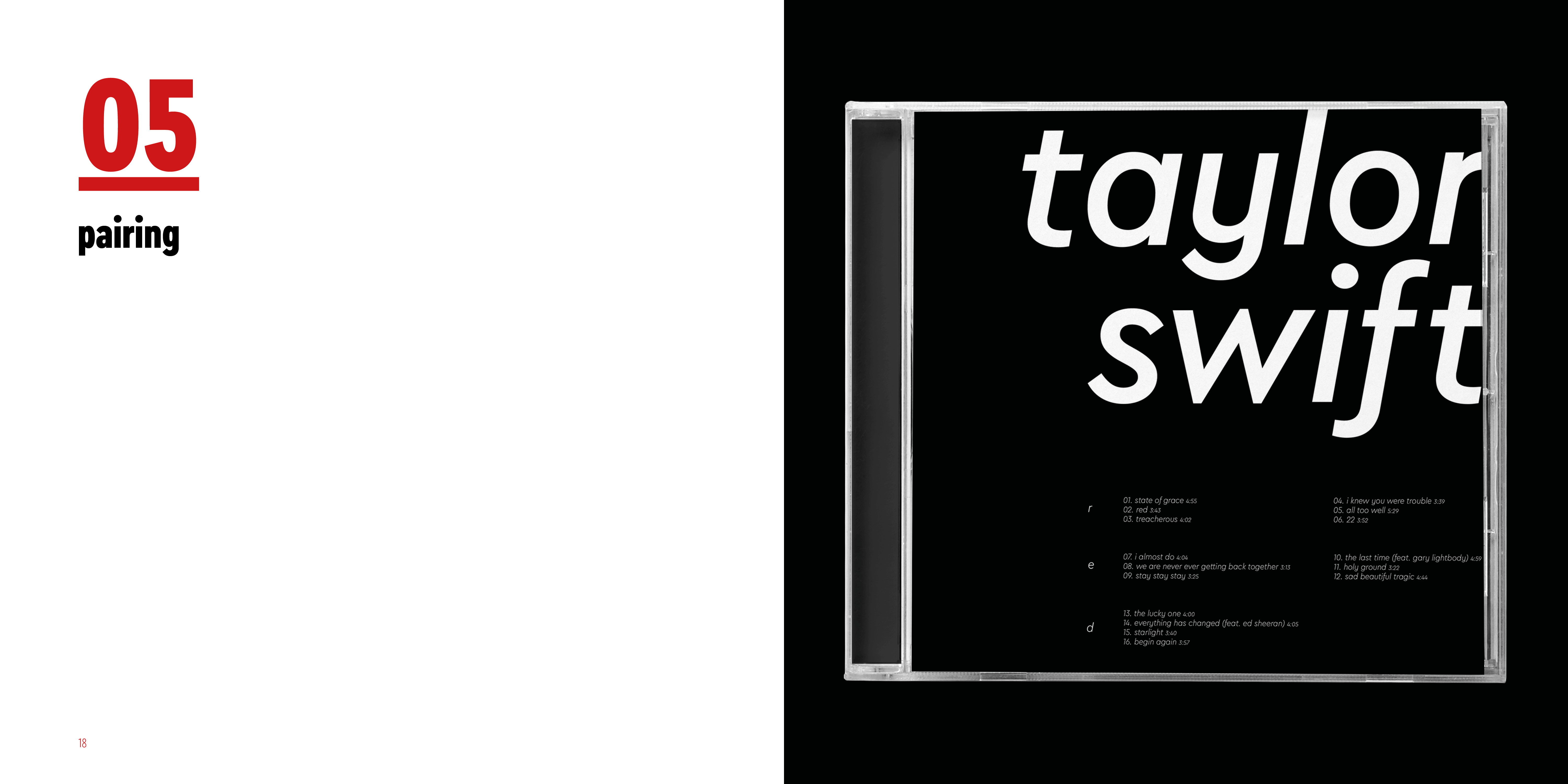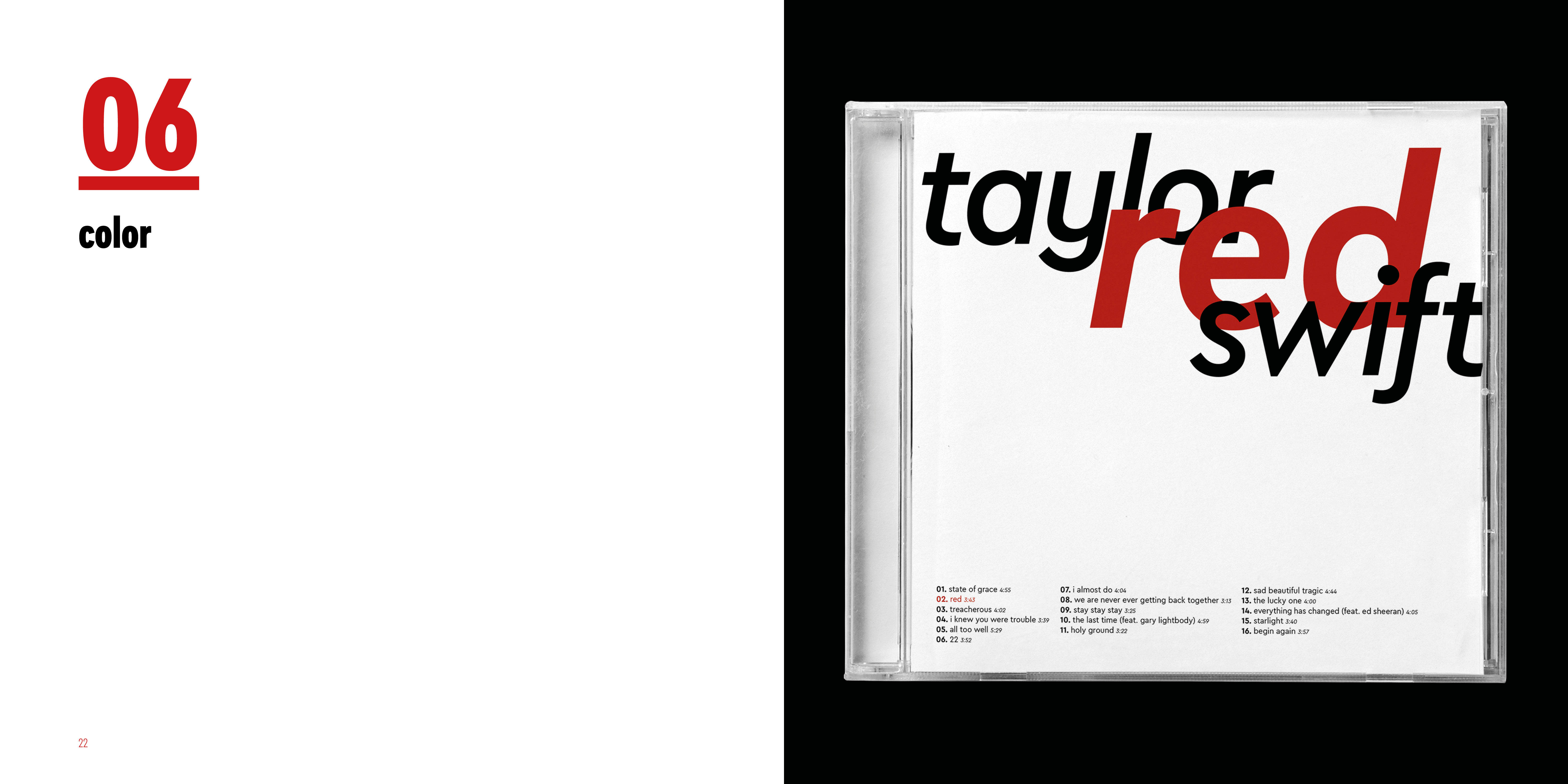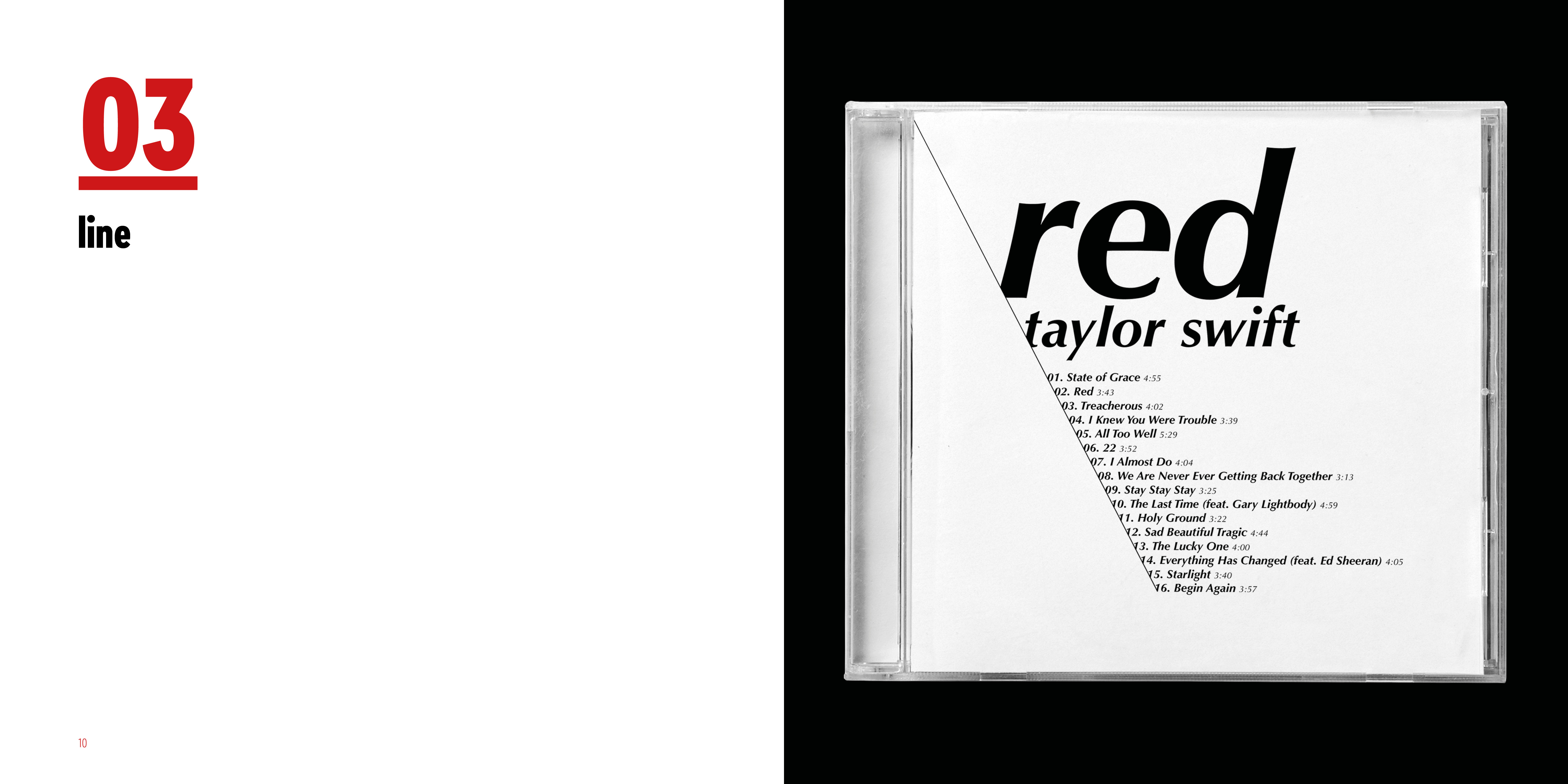 I made series of typographic exercise which was making a album cover of Red by Taylor Swift. To develop type fundamentals, I used different forms of expression by using analog and digital.