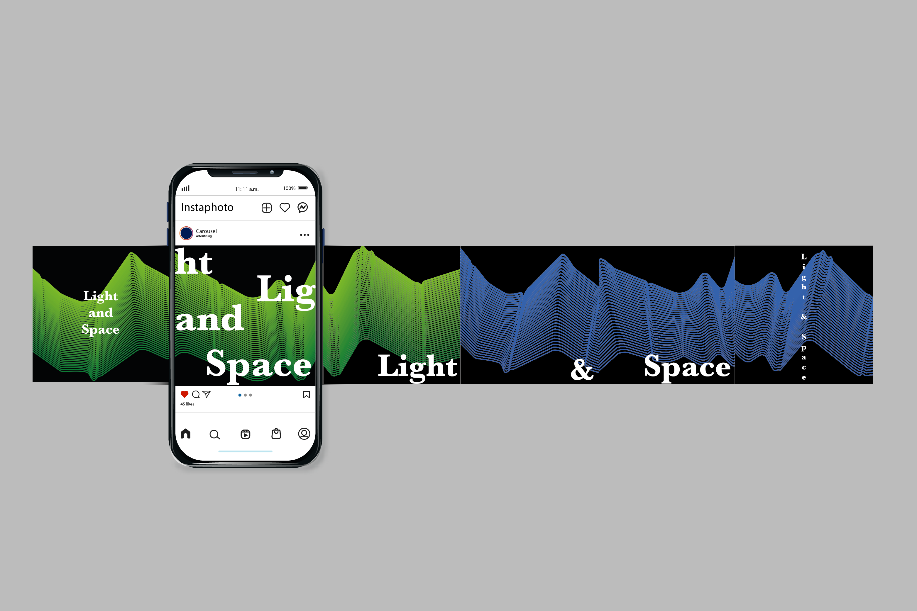 CD3 Final poster design. I made a poster with the theme of light and space that was conducted during the midterm exam. While wondering how to express light and space, I decided to give a feeling with gradation lines. And by connecting these lines to three posters, the posters looked connected, and various names of the artists were arranged to complete the theme of light and space. And I made a poster for Instagram, and I also made it connect when I flipped the posts to the side with a line.