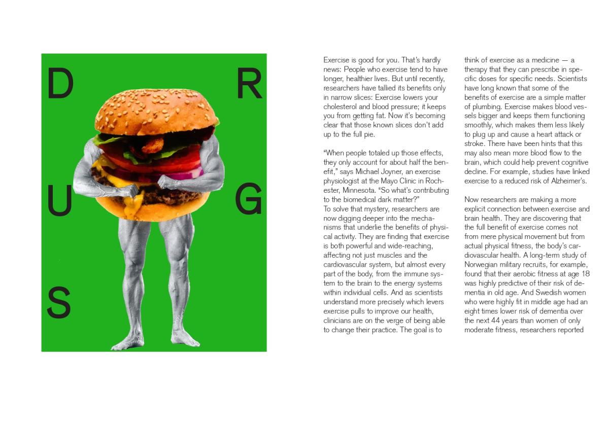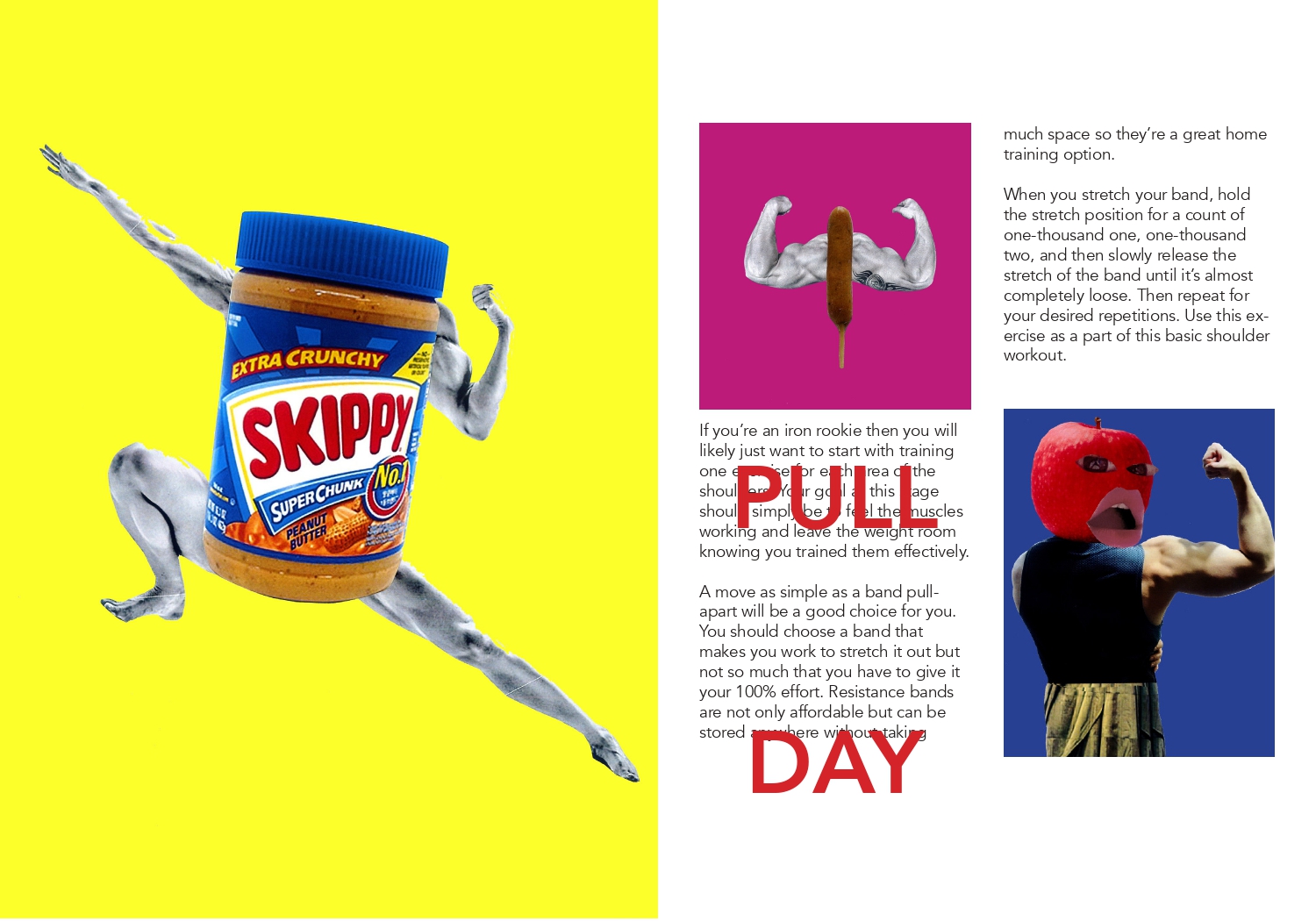 This is the project that I had the most fun in Communication Design 2 class’s finals. I chose an opposite topic from Yoko Ono and made a short animation, a magazine, and a kinetic poster. I chose the theme of bodybuilding culture, and named it ‘Big Skinny’. I am actually interested in bodybuilding, so I chose this topic and I think it was a project that put a lot of my thoughts in various ways. And the pictures of food in bodybuilding poses in the magazine are collages that I made myself.