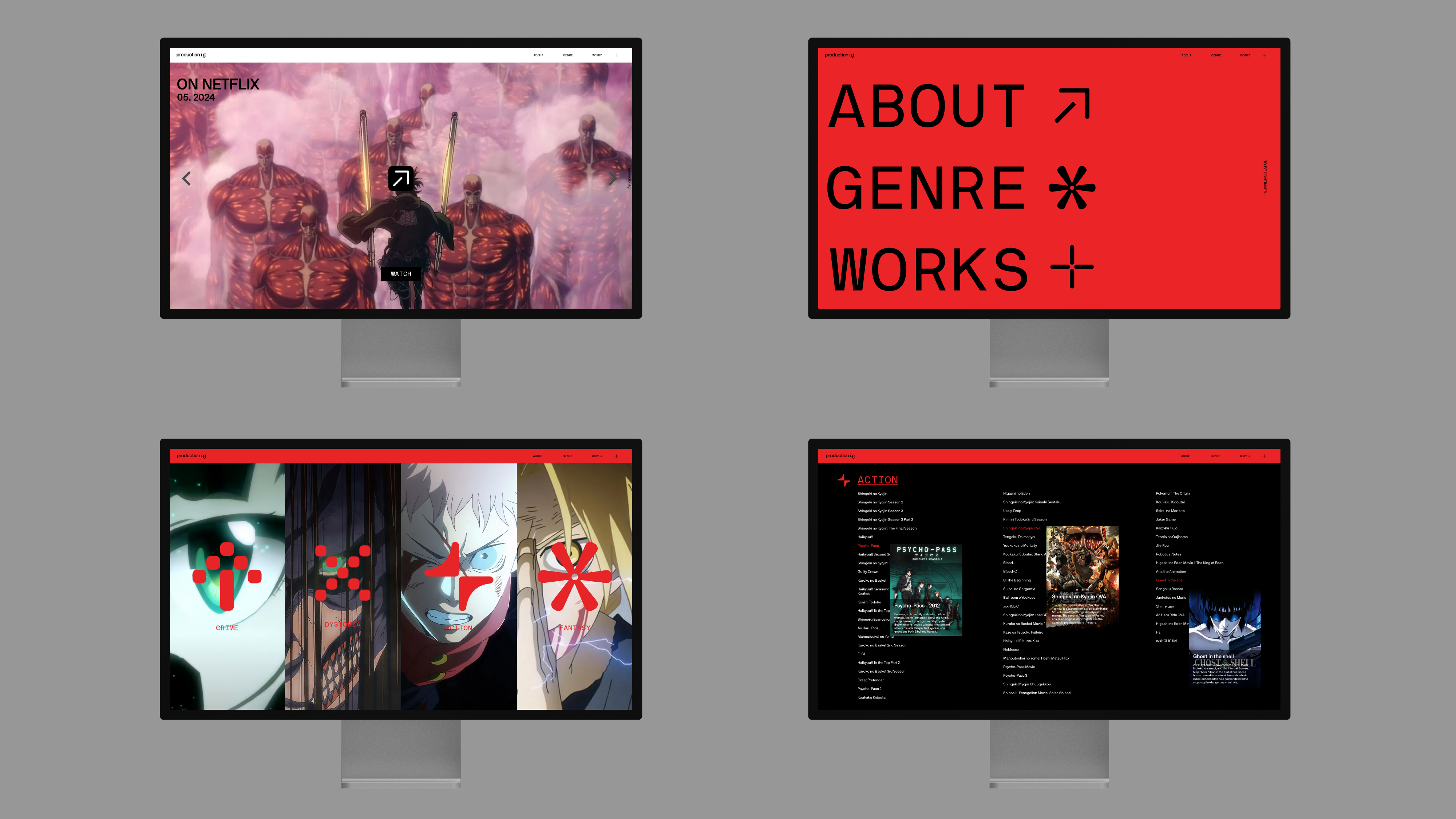 Animation goes beyond moving images—it expresses emotion and sparks imagination. For the rebrand of Production I.G, I translated the essence of animation into a dynamic design system. Bold type and motion-inspired graphics shaped a flexible, evolving identity that reflects the spirit of animation.