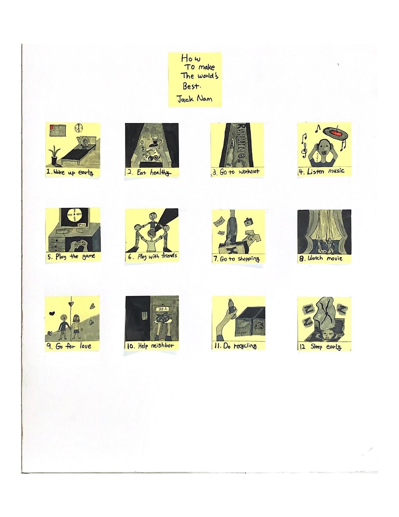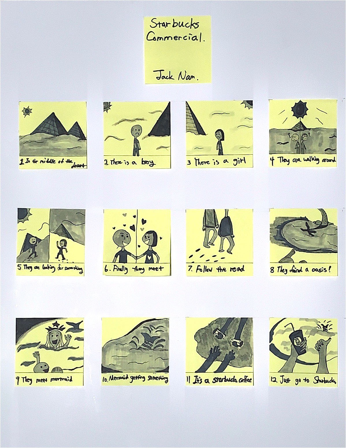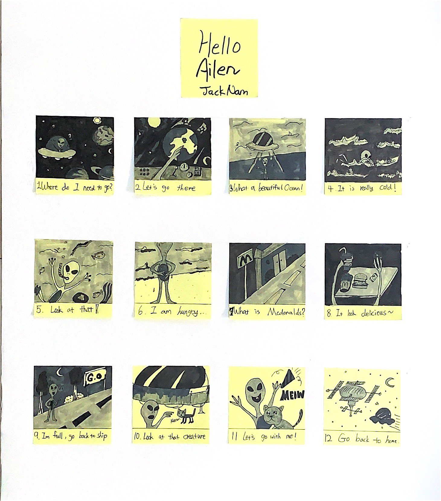 This is a storytelling project that I have done in the Narrative Sketch class. These are short stories from my imagination drawn on post-its. I was given different topics every day, and different stories were underway. And I had fun only using black and gray pens for the drawings on this project.