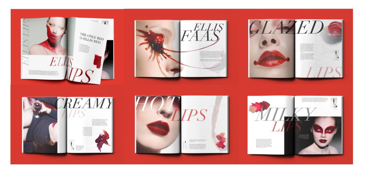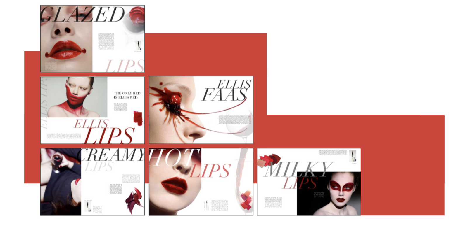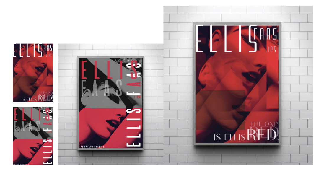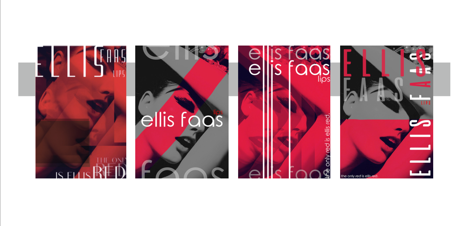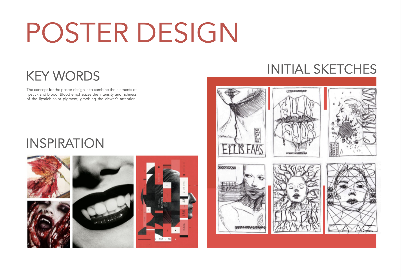 This project targets the use of contrast, high color tones, and classic typefaces. I used unique photos of models that are rarely portrayed in popular media and heavy letters to convey confidence in beauty. I incorporated concepts of blood and wine to emphasize the color red and intensity of the lipstick. Throughout all my designs, my strategy to represent feminine strength is using only the colors red, white, gray, and black.