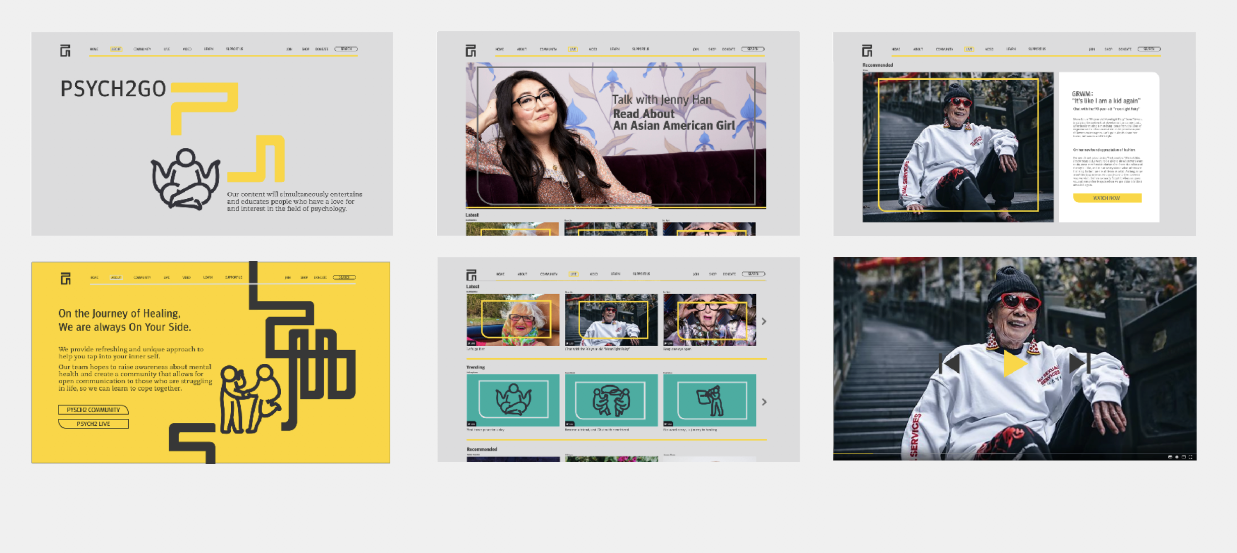 Psych2Go is a youtube channel that utilizes animation and illustrations articles to educate people on mental health and psychology. The new identity system will create a community that allows for open communication and provide live-streaming activities to create engagements.