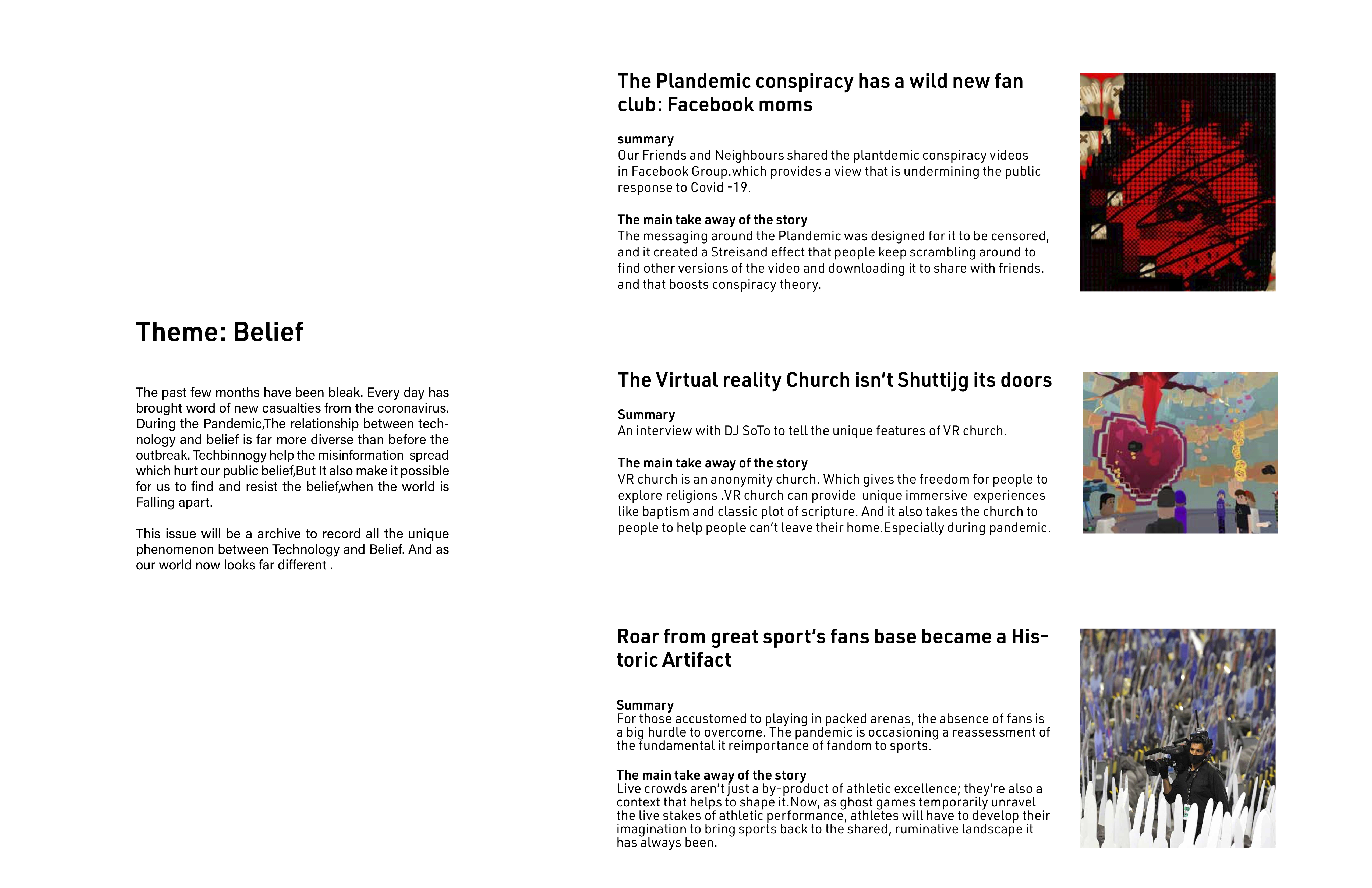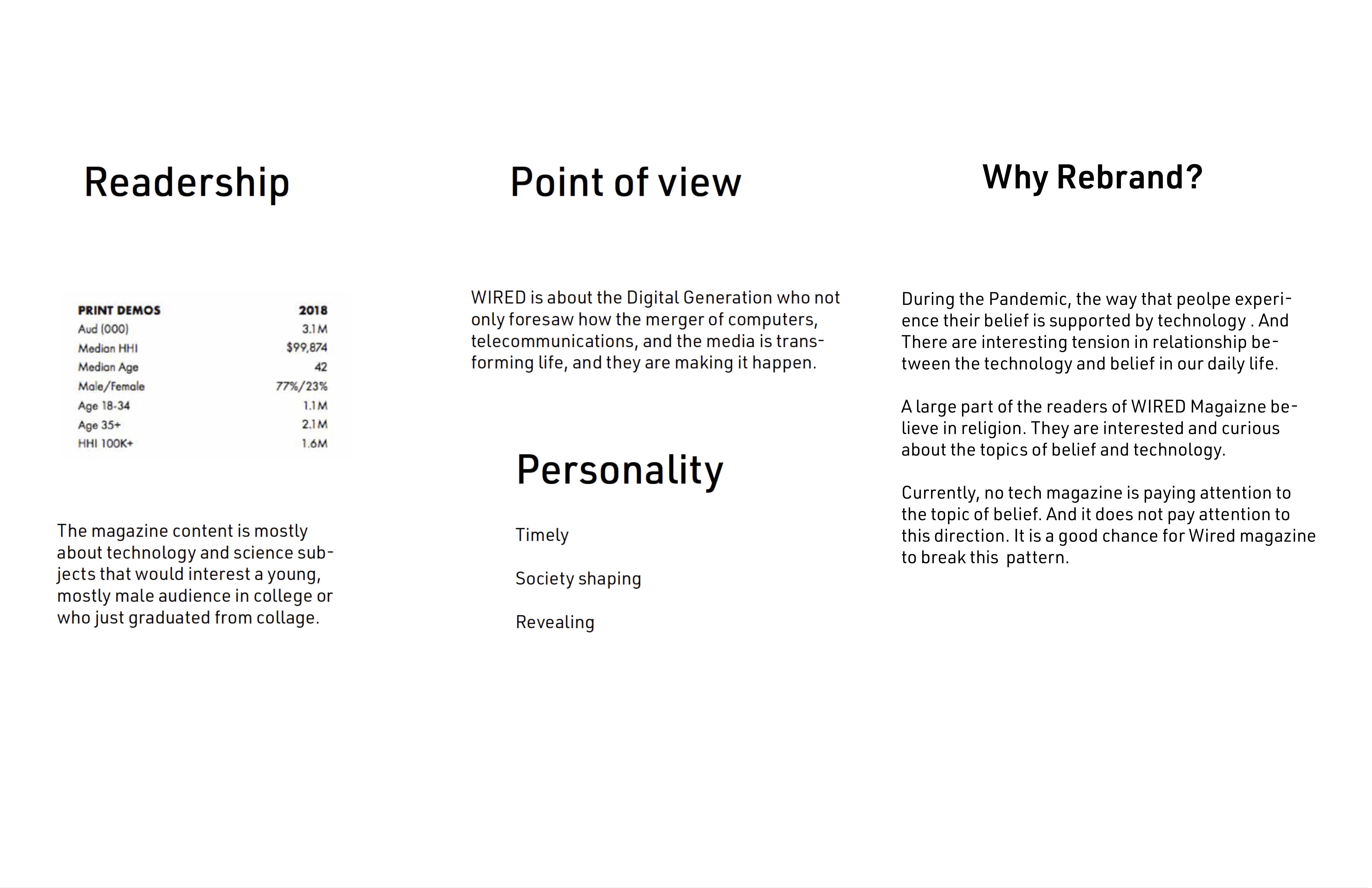 During the Pandemic, the way that people experience their beliefs is supported by technology. there is an interestin tension in the relationship between technology and belief in our daily life.A large part of the readers of WIRED Magazine believe i religion. They are interested in the topics of belief and technology. Currently, no tech magazine is paying attention to the topic of belief. And it does not pay attention to this direction. It is a good chance for Wired magazine to break this pattern