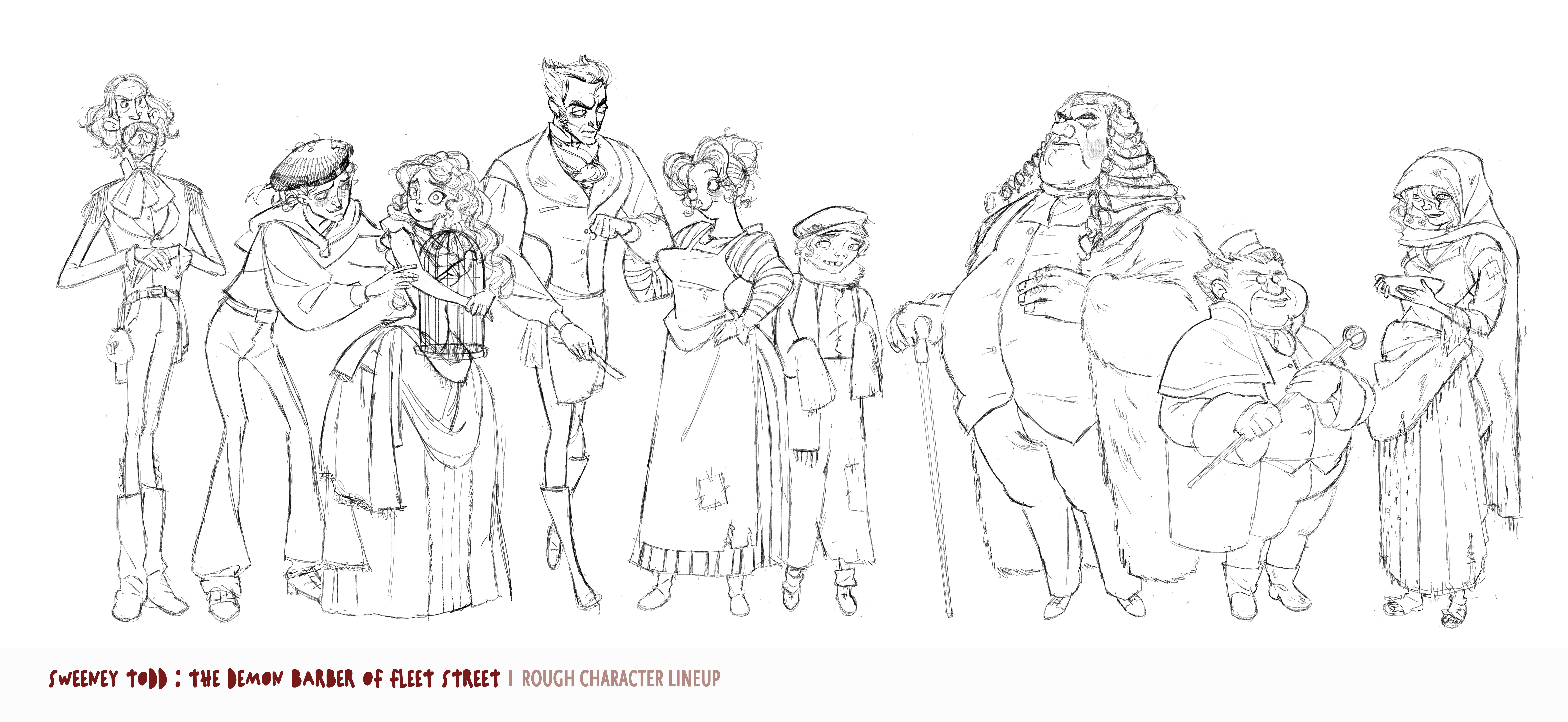 Interpreting the well-known musical Sweeney Todd: The Demon Barber of Fleet Street into character designs!