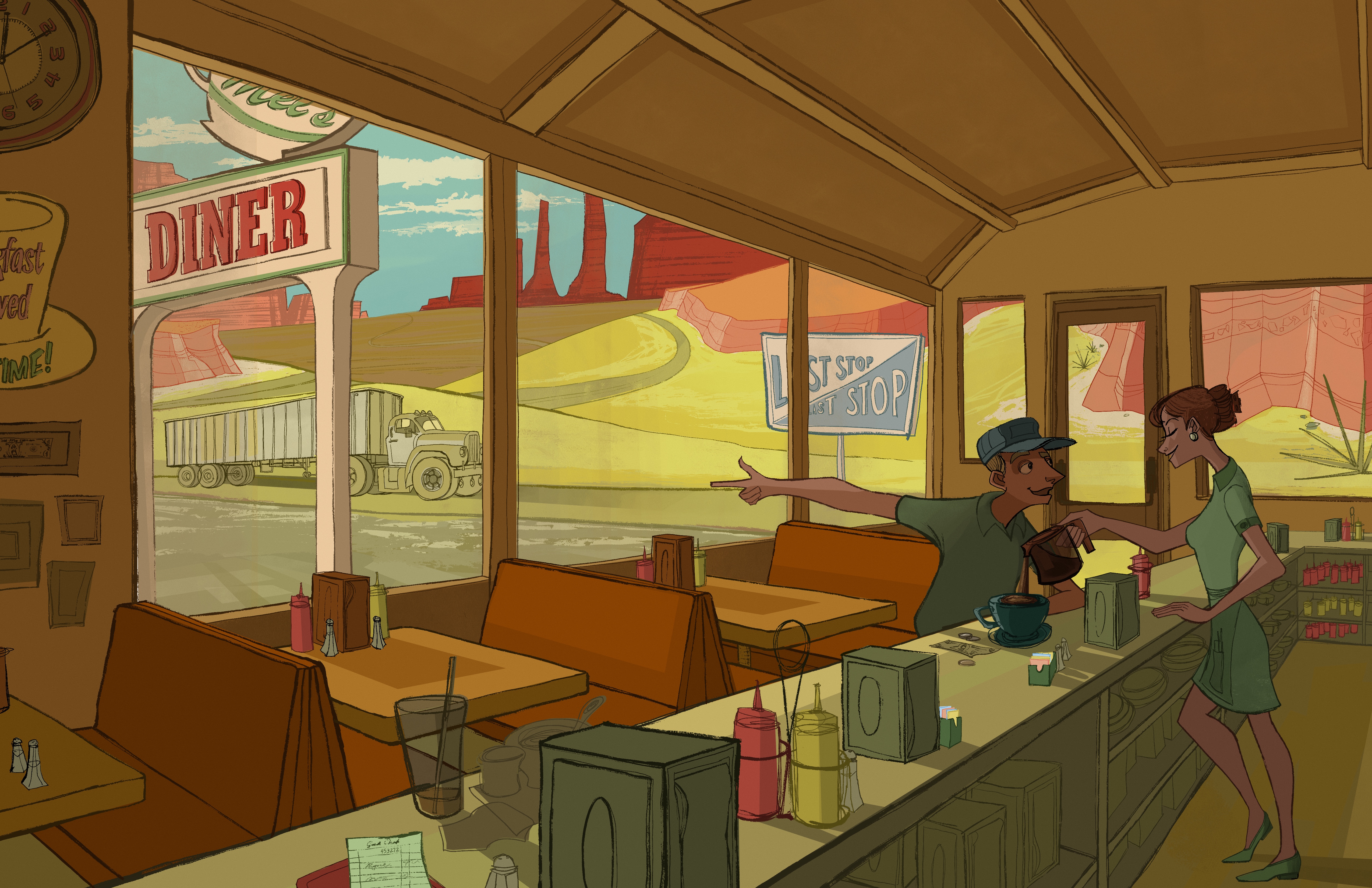 Graduates Select DepartmentBrand Design & StrategyCreative DirectionEntertainment DesignFilmFine ArtFurniture, Lighting and FixturesGraduate ArtGraduate FilmGraduate Graphic DesignGraduate Interaction DesignGraduate Spatial Experience DesignGraphic DesignIllustrationIndustrial DesignInteraction DesignMedia Design PracticesPhotography and ImagingProduct DesignSpatial Experience DesignTransportation DesignTransportation Systems and Design Back to Projects Morgan Schmitz BFA in Illustration - Entertainment Arts — Illustration Diner Scene An illustration based off the song "Phantom 309" by Red Sovine. Image