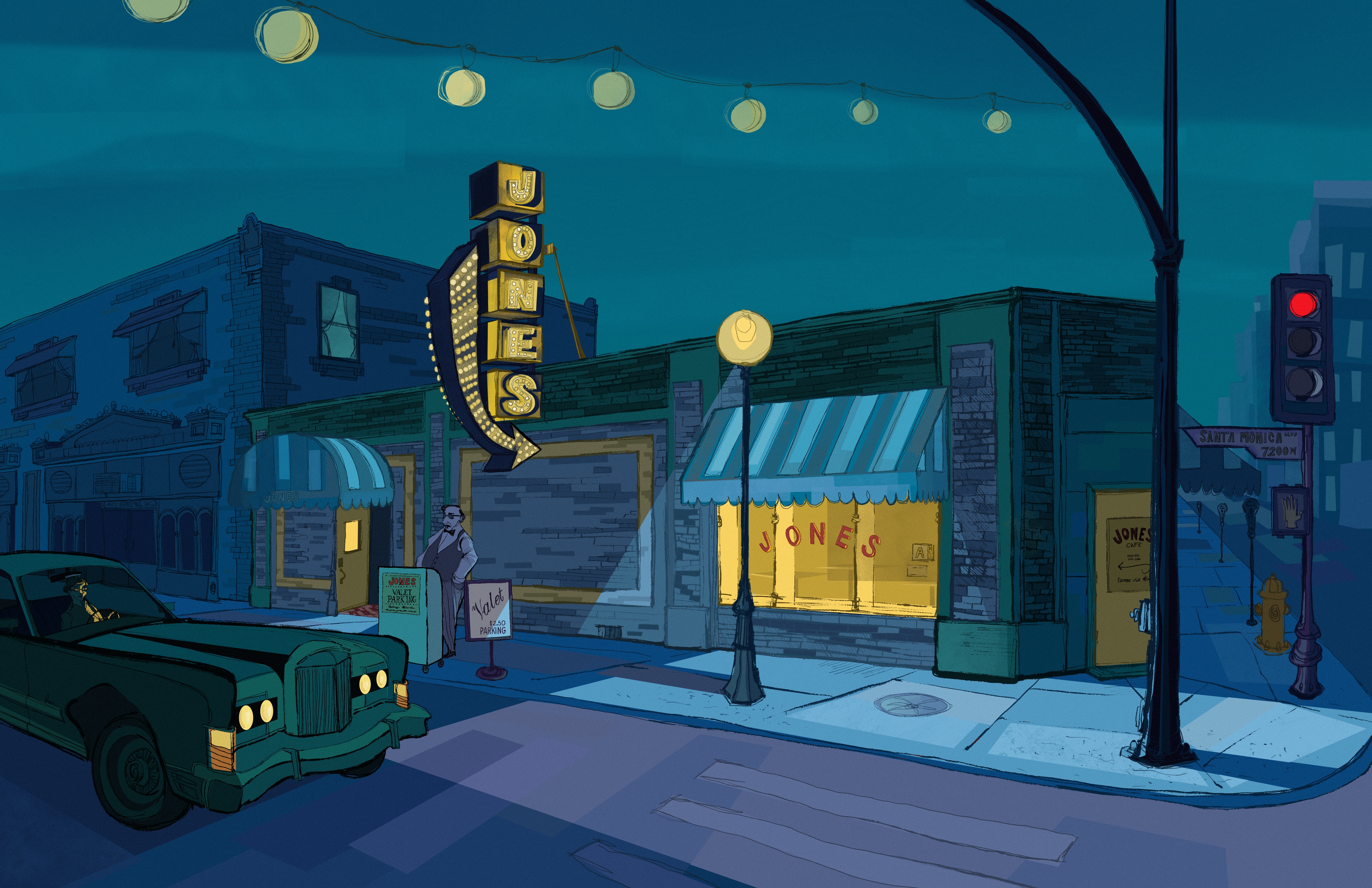 Graduates Select DepartmentBrand Design & StrategyCreative DirectionEntertainment DesignFilmFine ArtFurniture, Lighting and FixturesGraduate ArtGraduate FilmGraduate Graphic DesignGraduate Interaction DesignGraduate Spatial Experience DesignGraphic DesignIllustrationIndustrial DesignInteraction DesignMedia Design PracticesPhotography and ImagingProduct DesignSpatial Experience DesignTransportation DesignTransportation Systems and Design Back to Projects Morgan Schmitz BFA in Illustration - Entertainment Arts — Illustration Course: 339 Graphic Design for Entertainments Arts Jones Hollywood Storefront nighttime illustration of Jones Hollywood, honoring one of my favorite restaurants in all of Los Angeles. Image