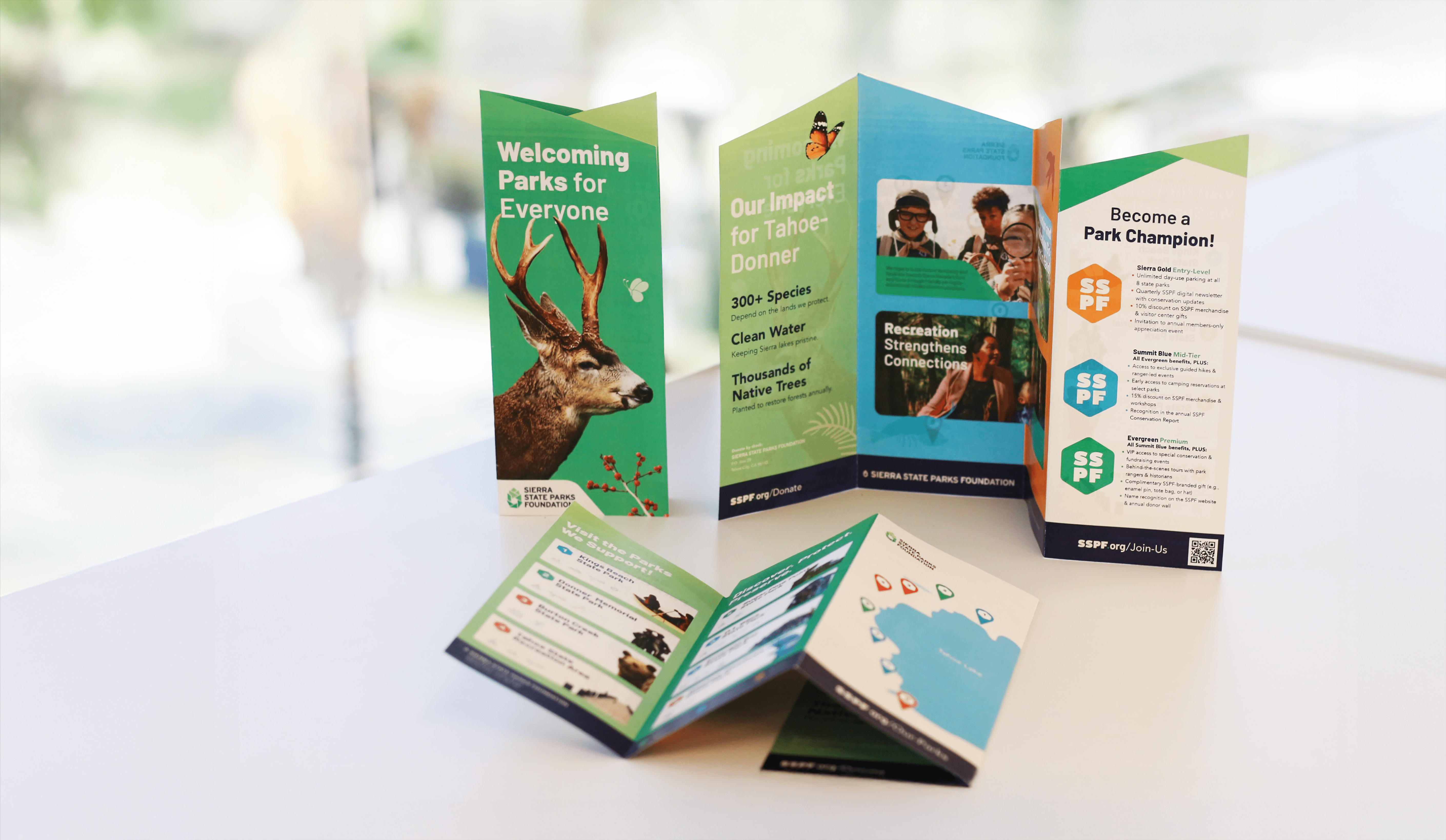The tri-fold pamphlet I designed serves as a comprehensive visitor guide: consolidating SSPF’s mission, conservation impact, redesigned park map, and new supporter program into a single, cohesive artifact.