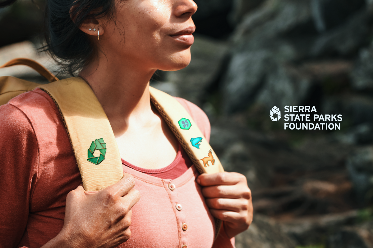 The logo when worn as an enamel pin for park rangers and volunteers becomes a symbol of protection and pride of the Sierra State Parks.