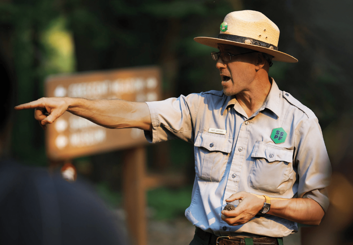 The new logo, an abstracted pinecone, is a symbol of unified stewardship between park-goers and rangers. The icon was built from eight leaf-like shapes representing the eight parks.