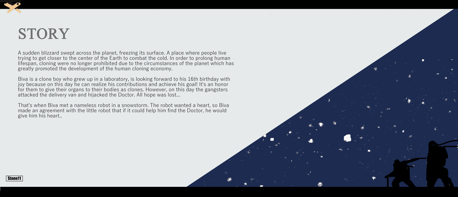 Graduates Select DepartmentBrand Design & StrategyCreative DirectionEntertainment DesignFilmFine ArtFurniture, Lighting and FixturesGraduate ArtGraduate FilmGraduate Graphic DesignGraduate Interaction DesignGraduate Spatial Experience DesignGraphic DesignIllustrationIndustrial DesignInteraction DesignMedia Design PracticesPhotography and ImagingProduct DesignSpatial Experience DesignTransportation DesignTransportation Systems and Design Back to Projects Nan Li BS in Entertainment Design - Concept — Entertainment Design STONE11 An adventure story about a cloned boy Image Image Image Image Image Image Image Image Image Image Image Image Image