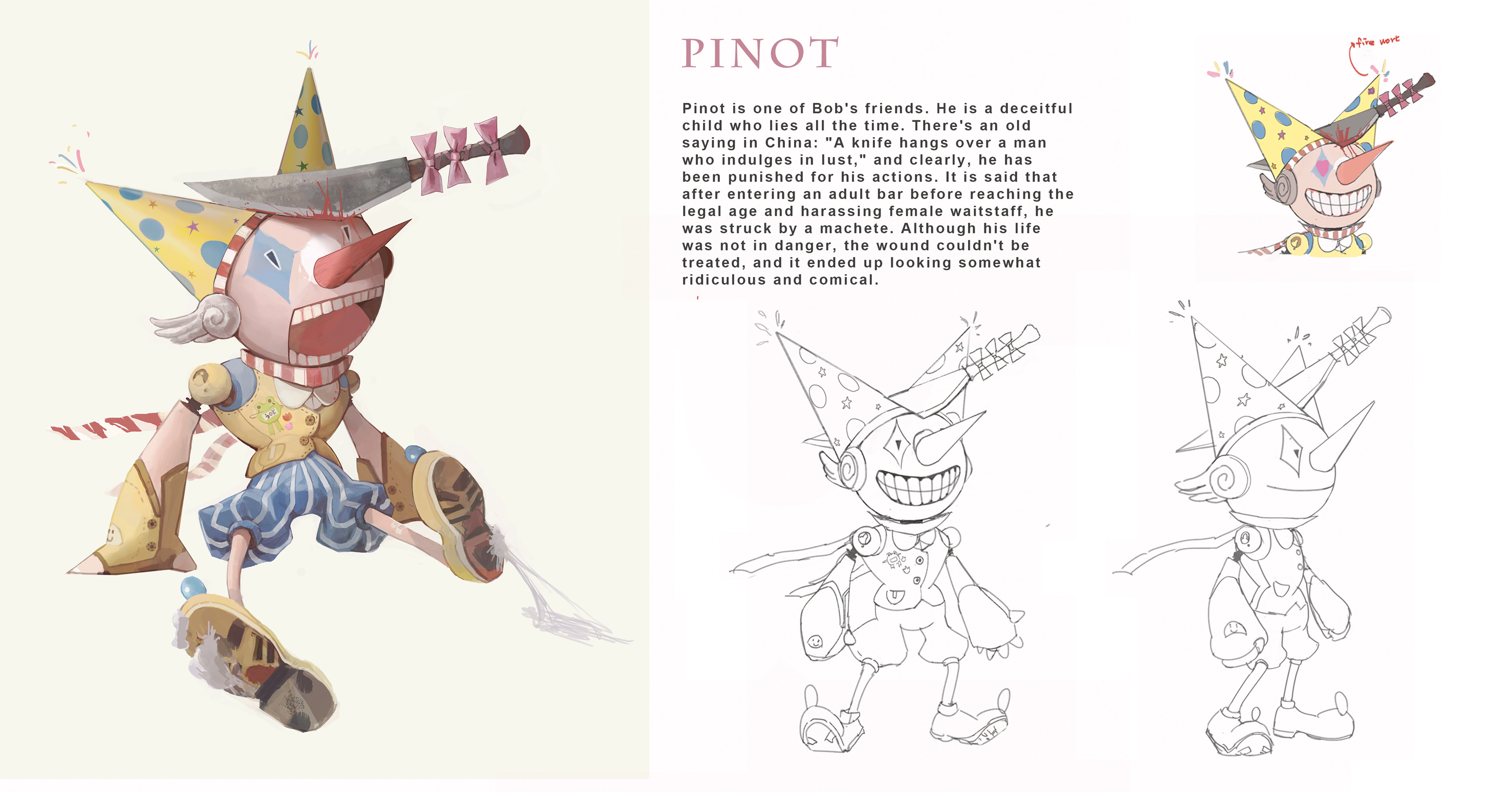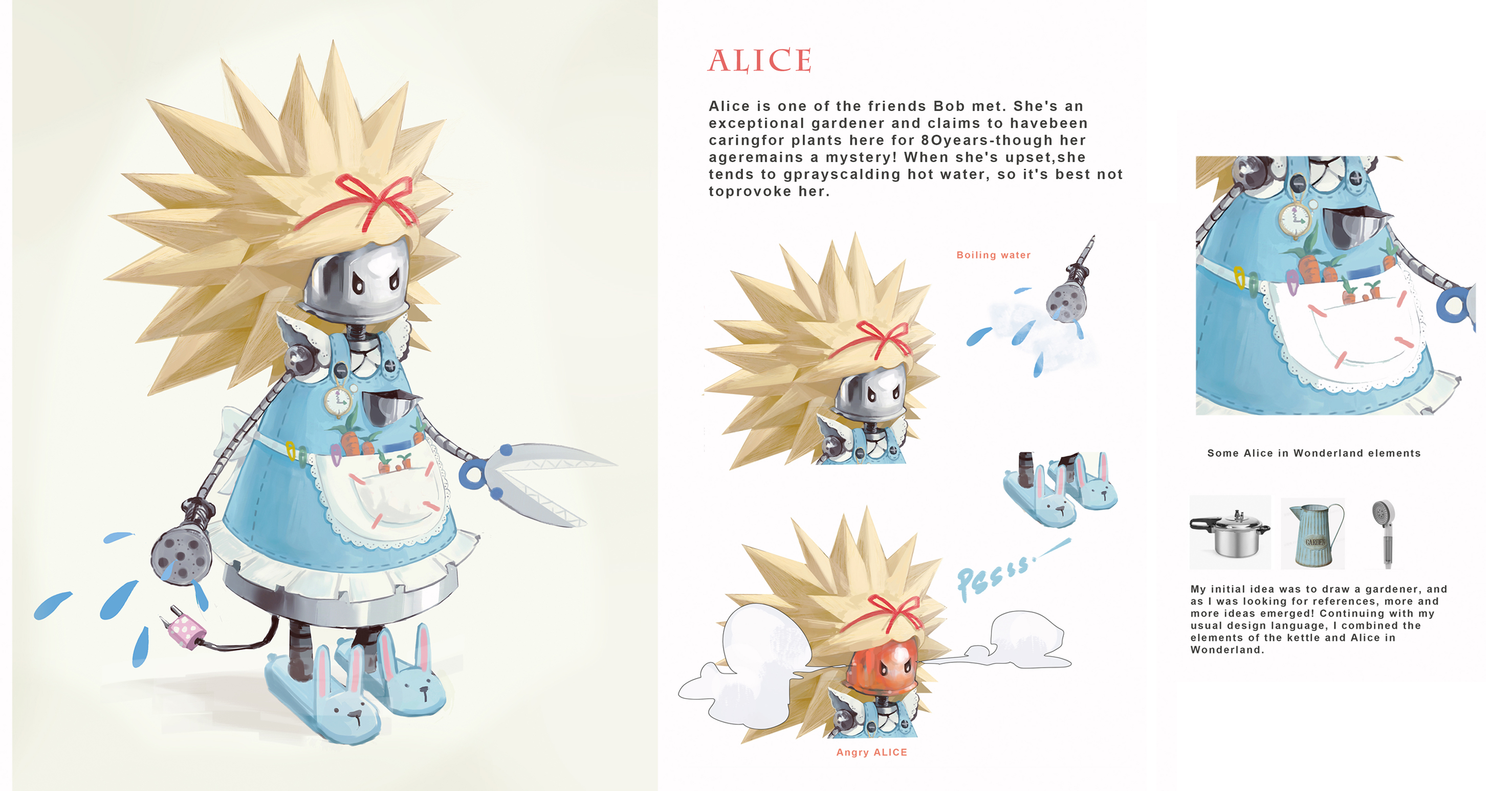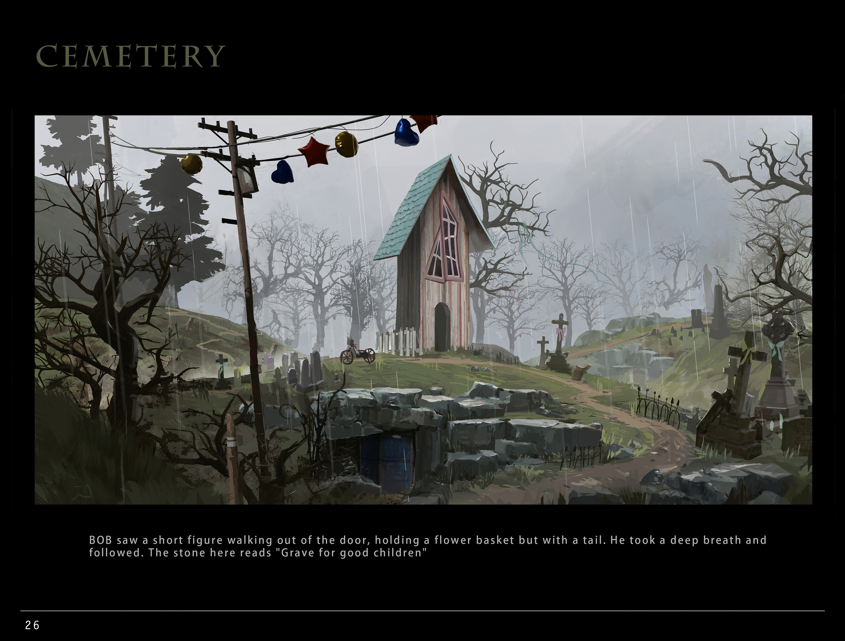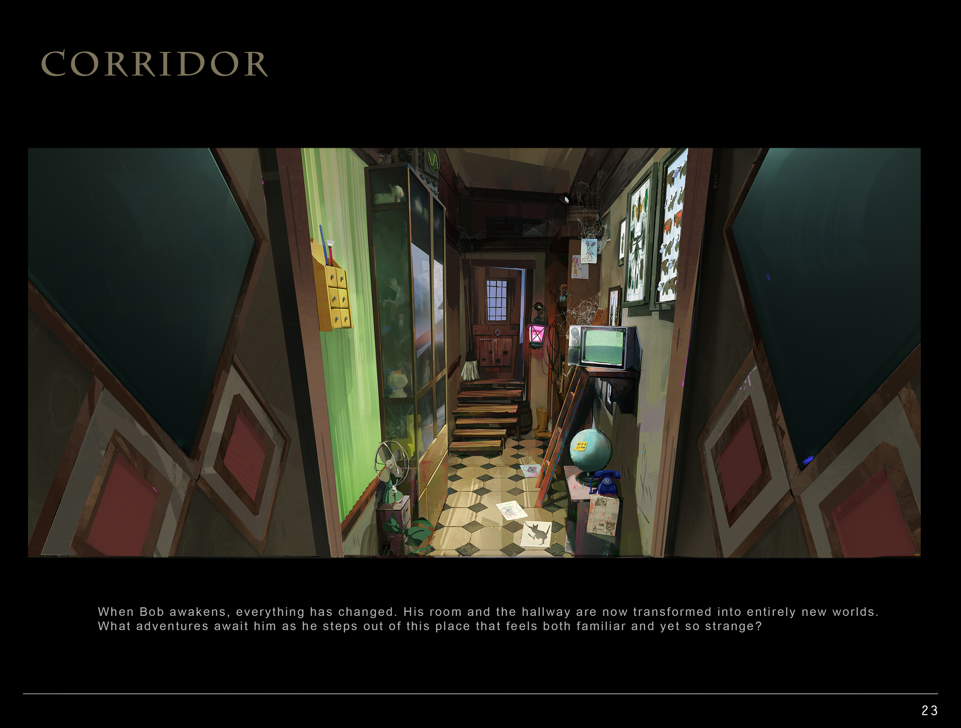 My project tells a fantasy story about a boy who wakes up as a light-bulb dog. He searches for a way back in this strange and crazy world. The art style is more like a gloomy and surreal fairy tale.