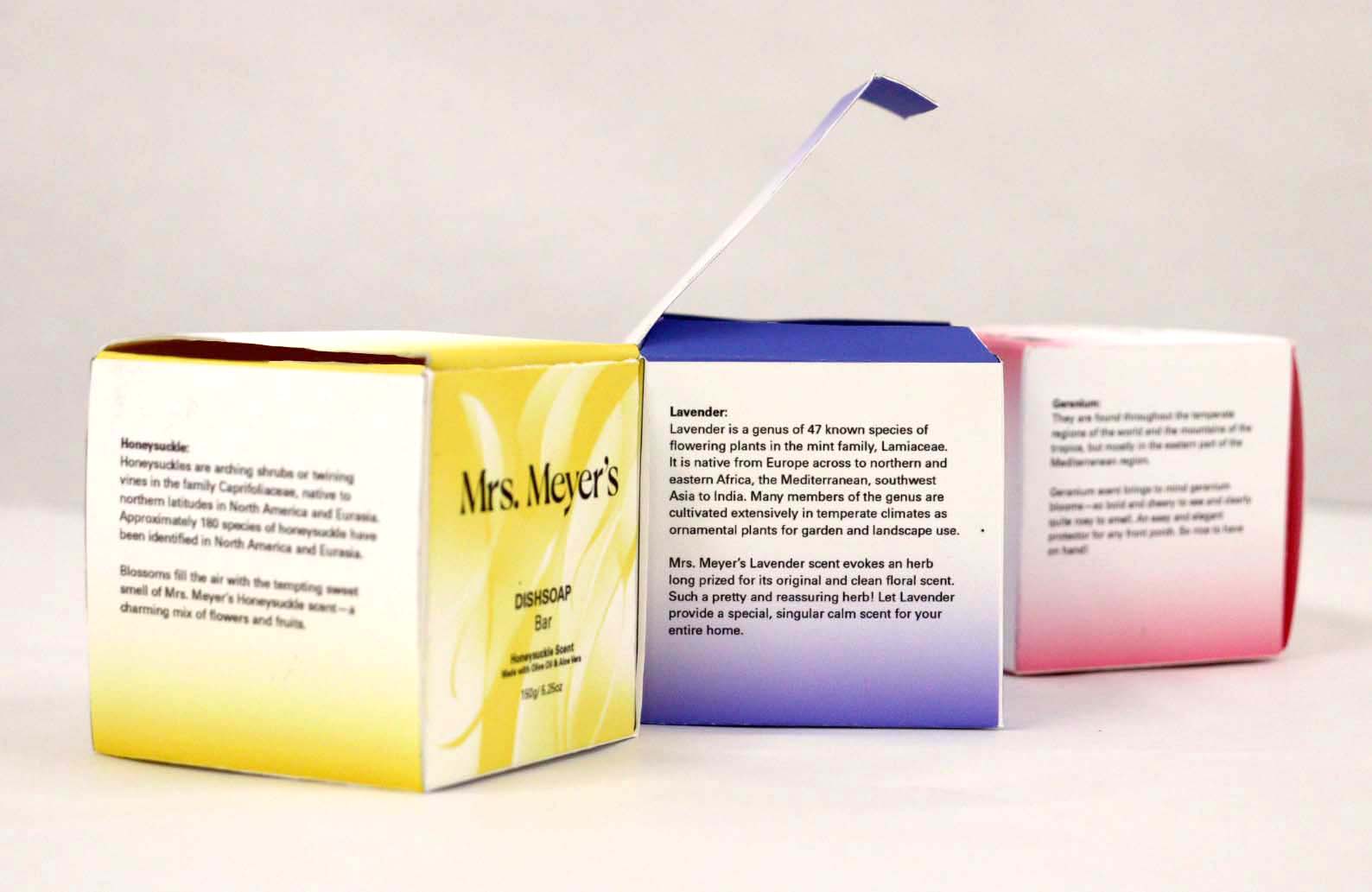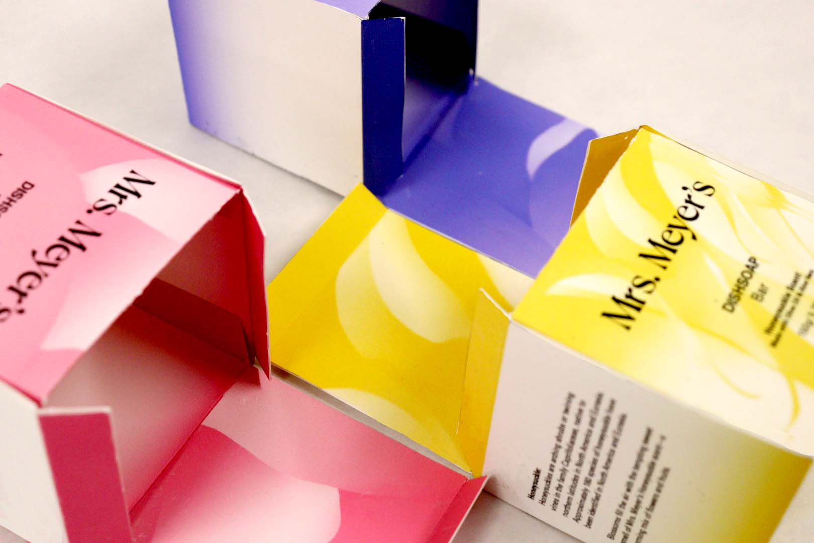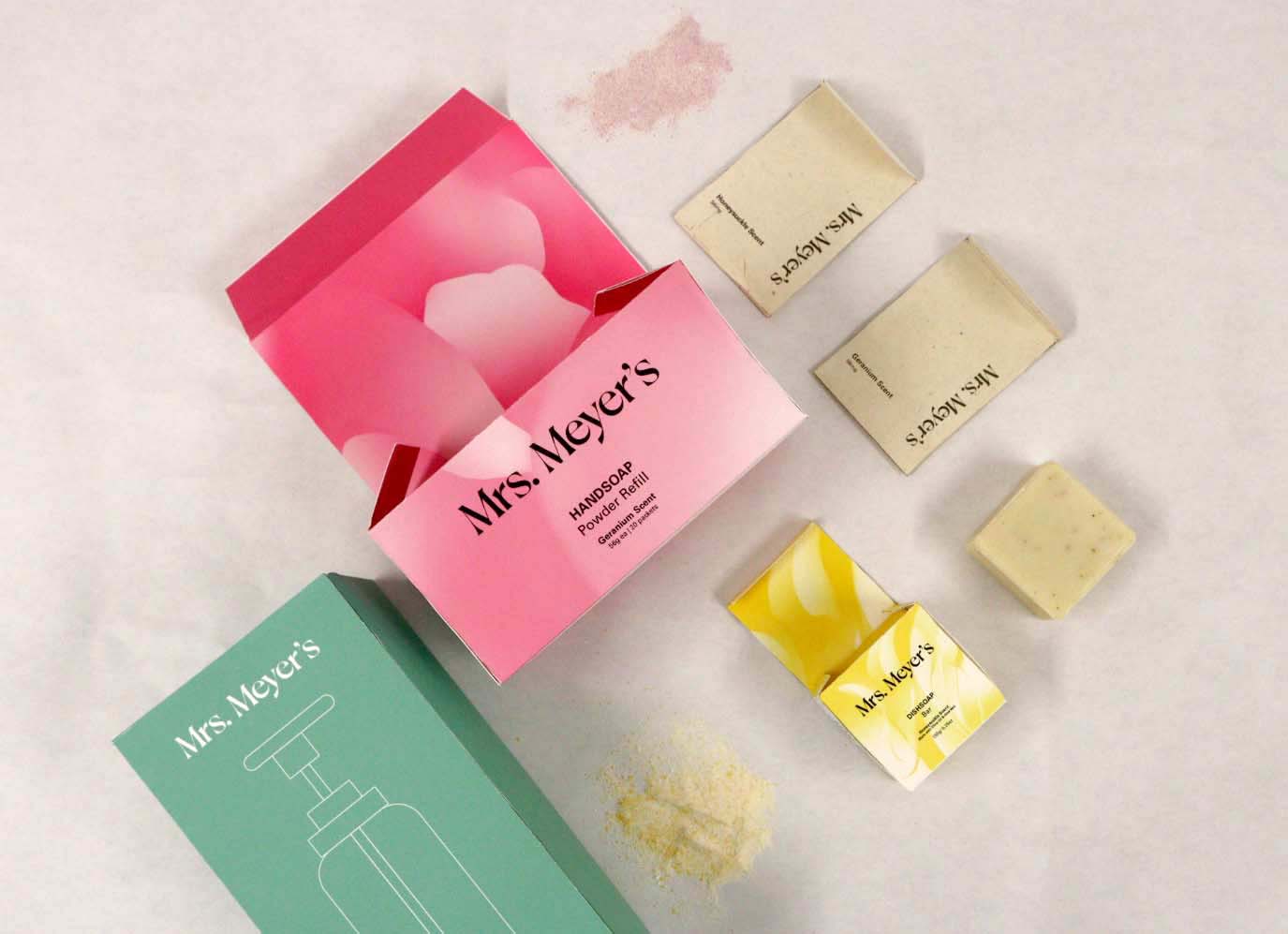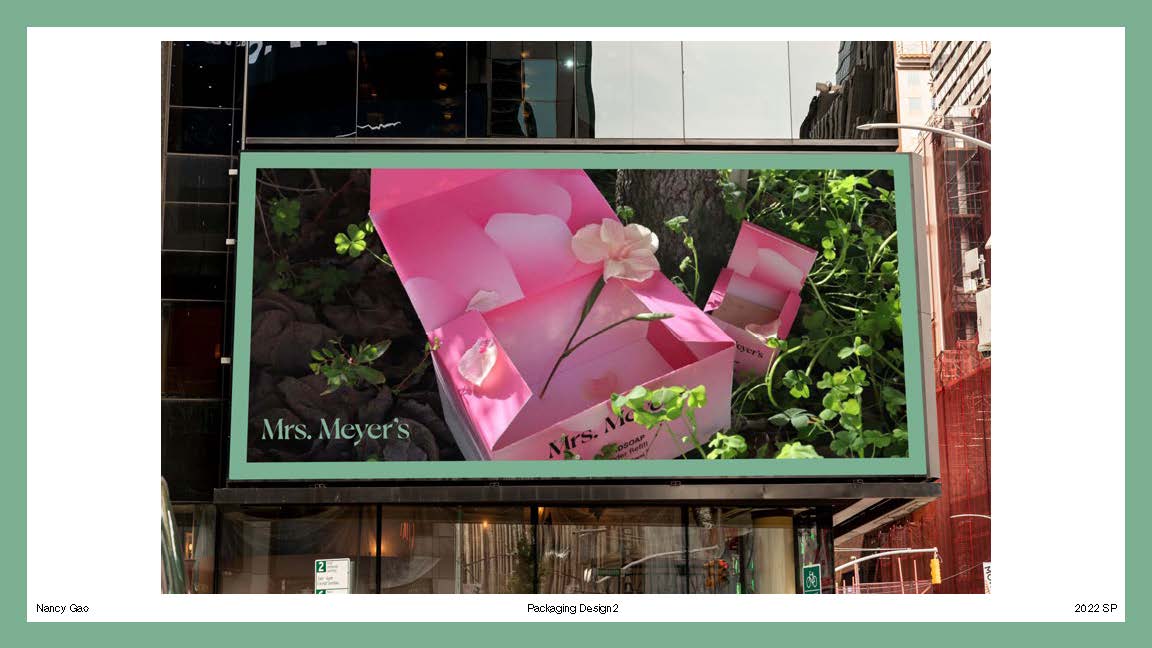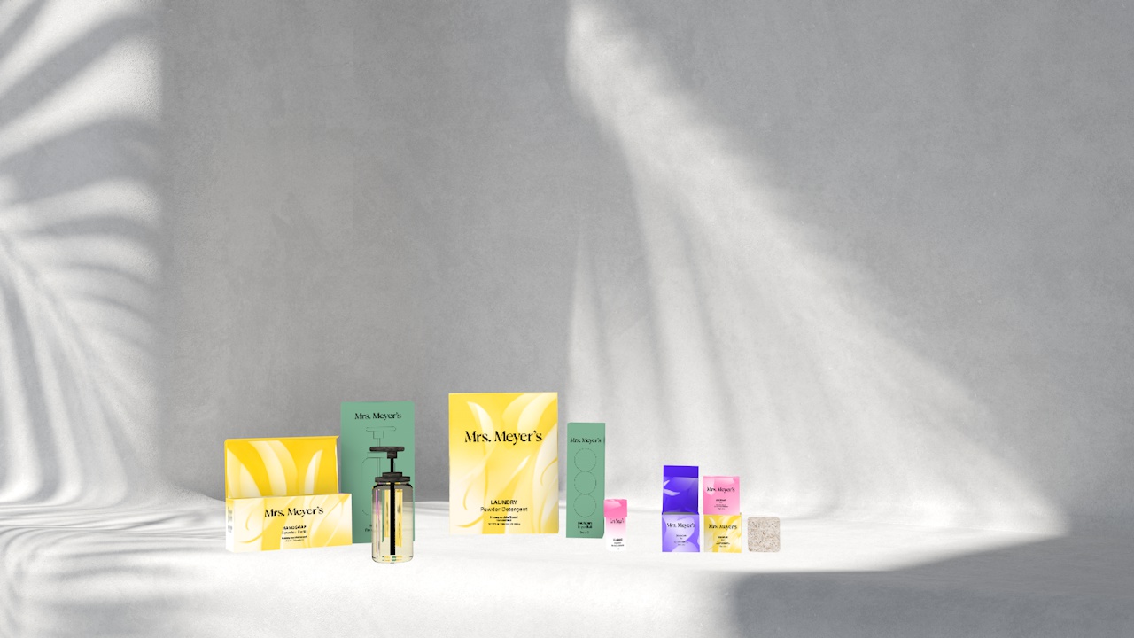 Rebrand Mrs. Meyer's cleaning product line. My 5 products are Dishsoap Bar, Laundry Detergent powder, Handsoap powder refill and laundry dryer ball.