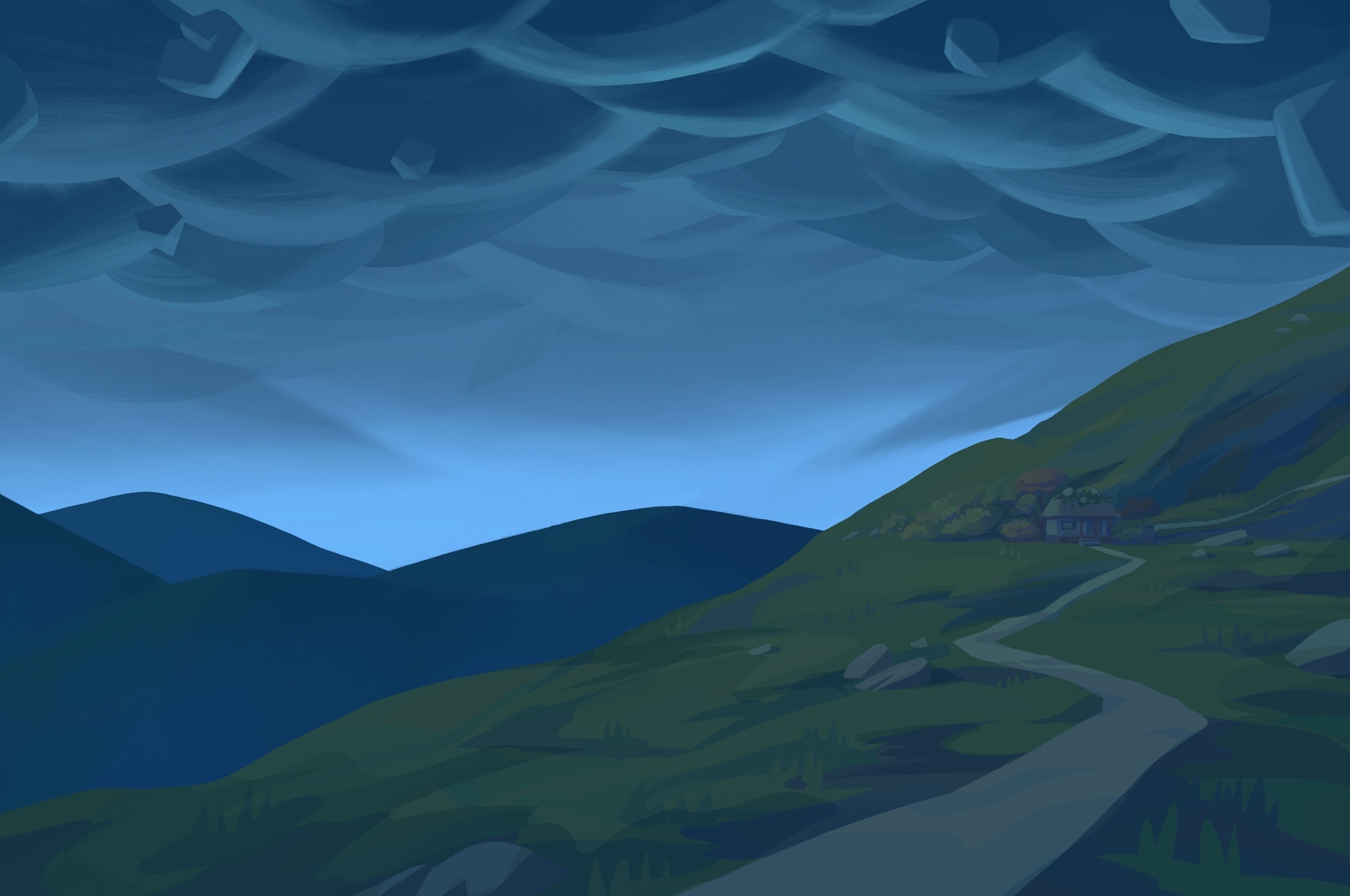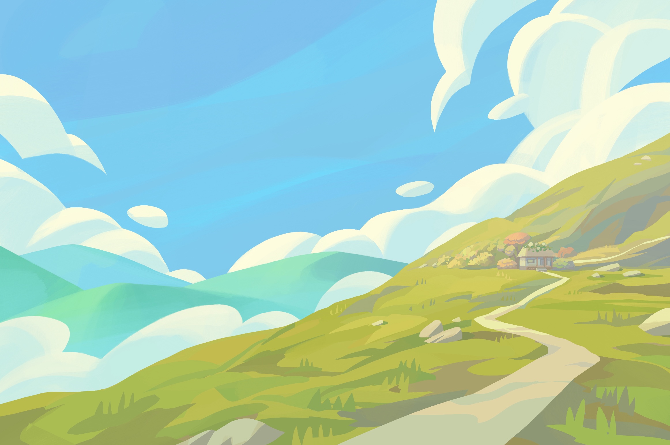 I worked as a background painter on the animated short Dokkaebi, directed by Sooyeon Bae. I was given rough layouts that I cleaned up into finalized paintings.