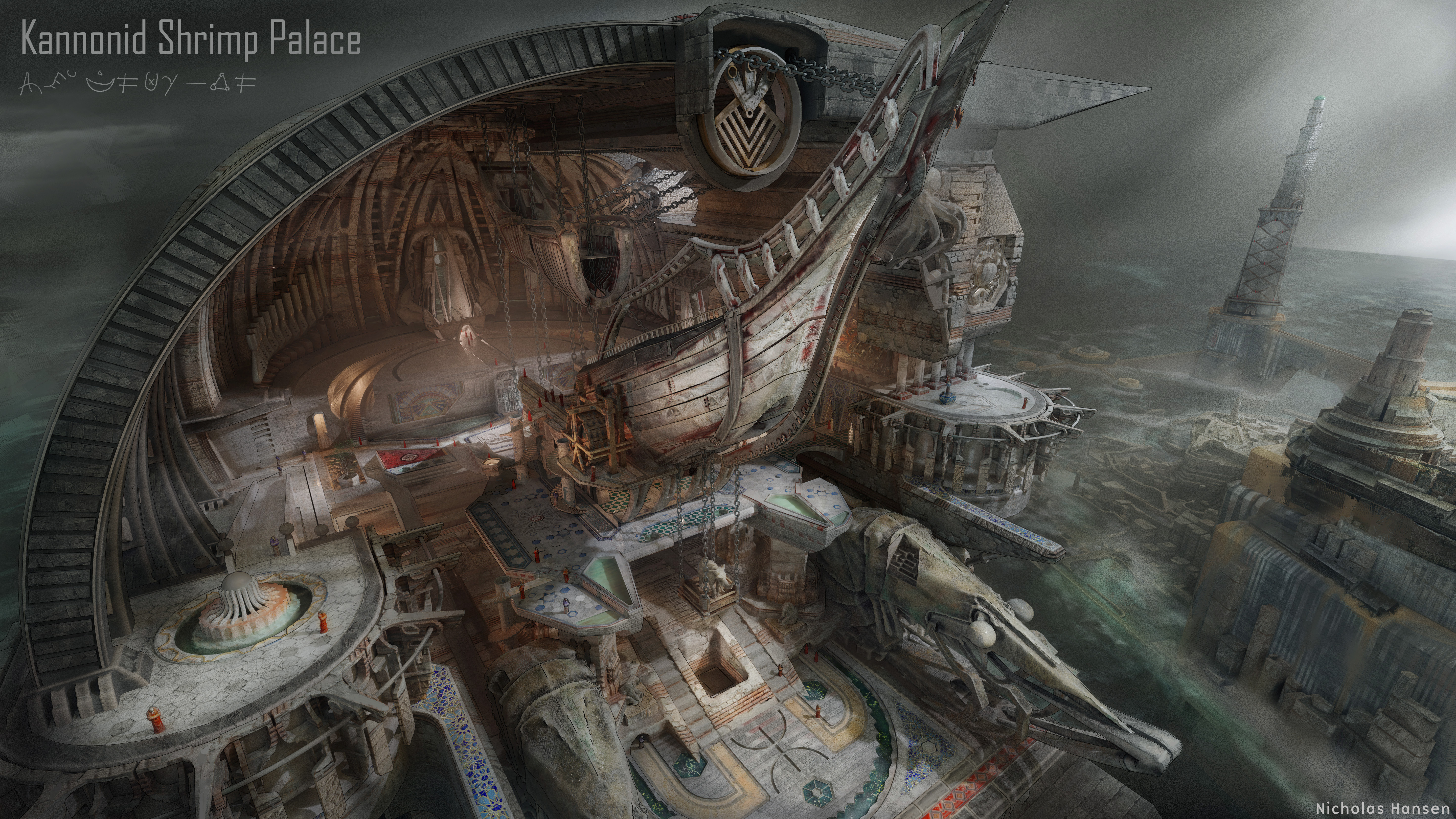 Kannonid Palace, the seat of power for the Kannonid empire, a terrible force that rules the Ubican Sea through Naval Might. This project is part of my world building project Yunger Dryas… an alternative history / fantasy world about a war between forgotten empires that were washed away by the rising sea levels at the end of the last Ice Age.