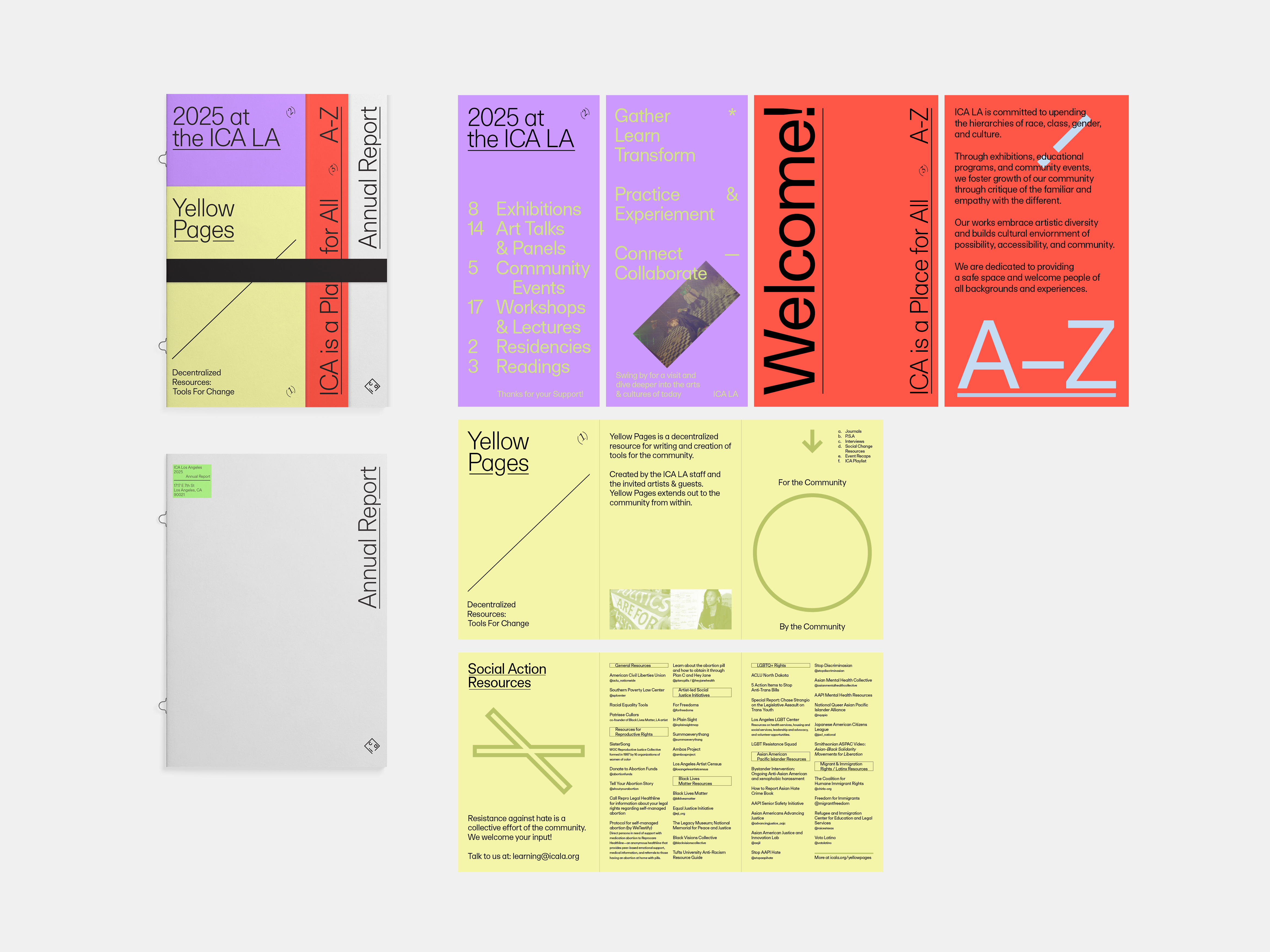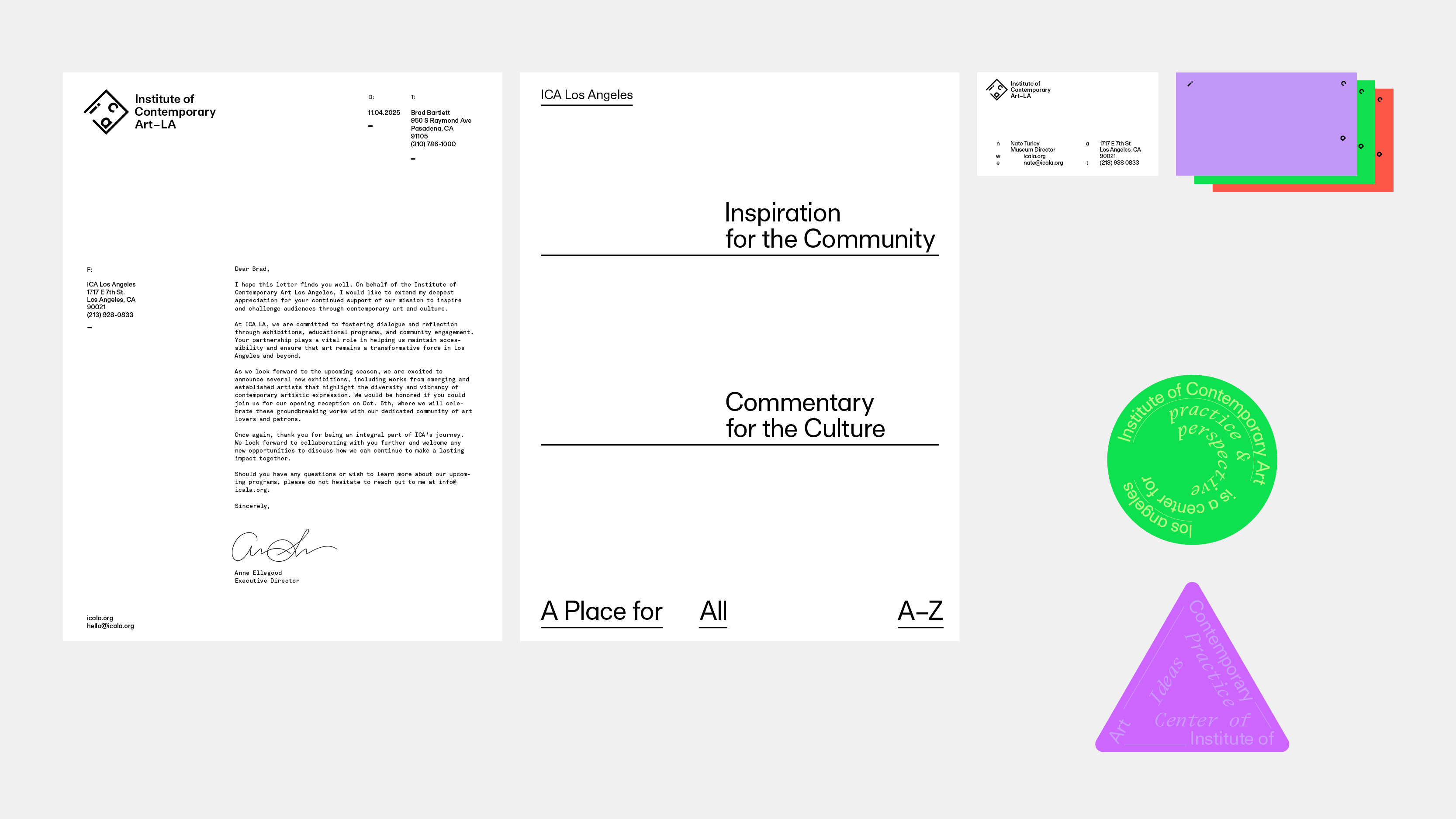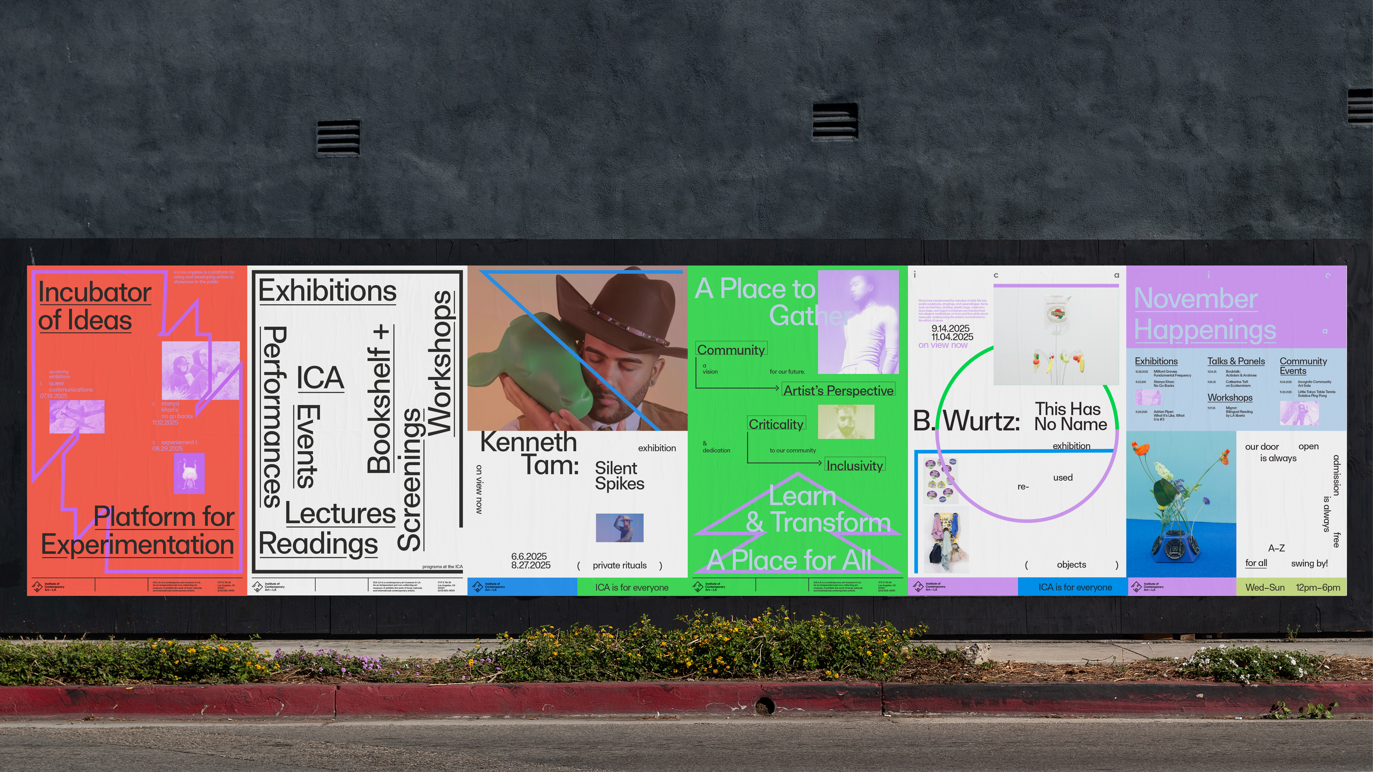 Institute of Contemporary Art, Los Angeles (ICA LA) is an independent, non-collecting museum that celebrates experimentation and discovery. ICA LA is a place for perspectives, practice, and social discourse. Visual identity was created to reflect its embrace for diversity and highlighting the different voices in this space. Spiraling motion serves as a form of diving deeper into the practice of learning and understanding.