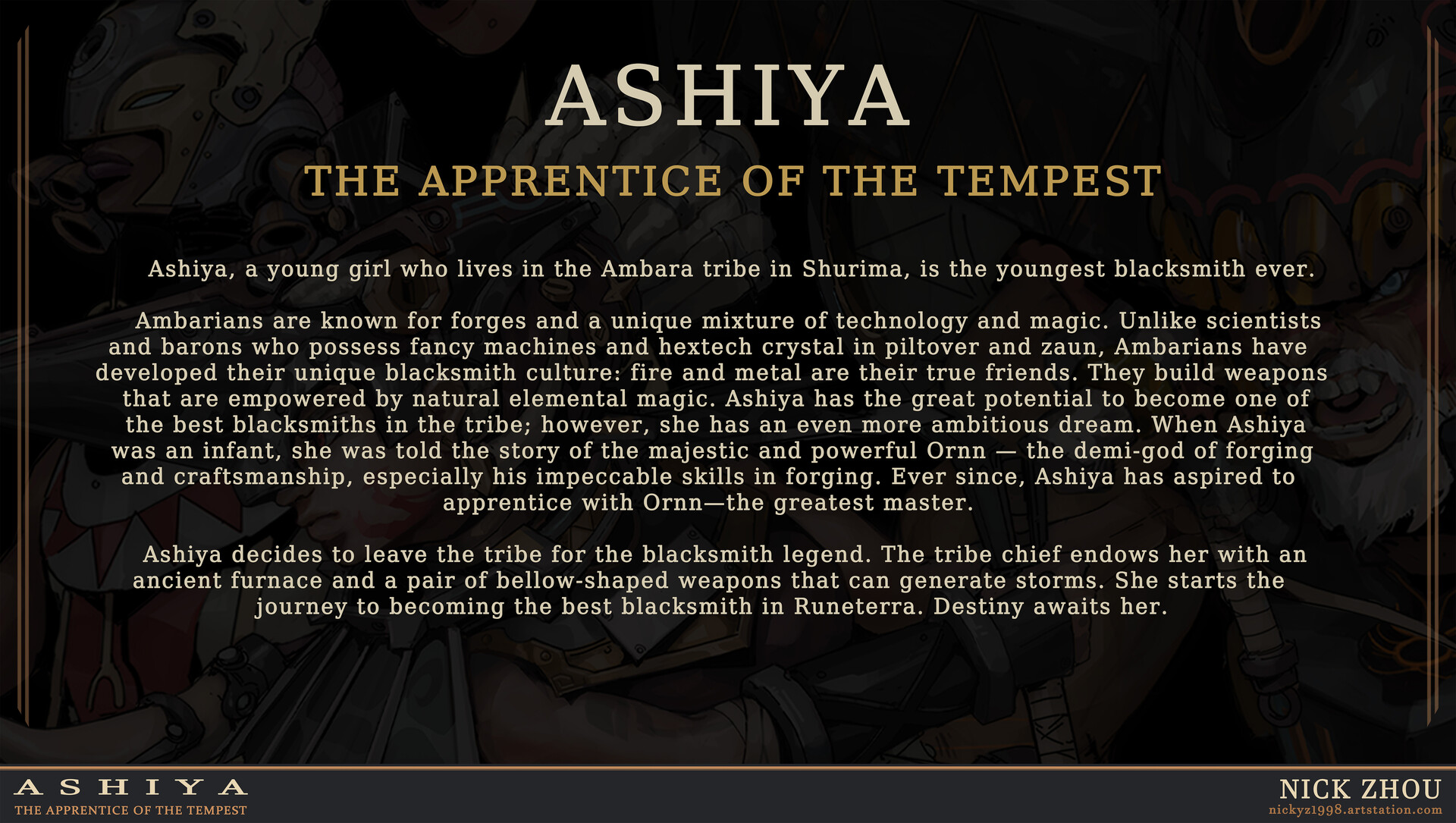 This is a Fan champion for league of legends. I've always had great interest in the lore of Runeterra. I tried to create a character that fits and connects with the world of league of legends. So here she is------Ashiya: The Apprentice Of The Tempest.