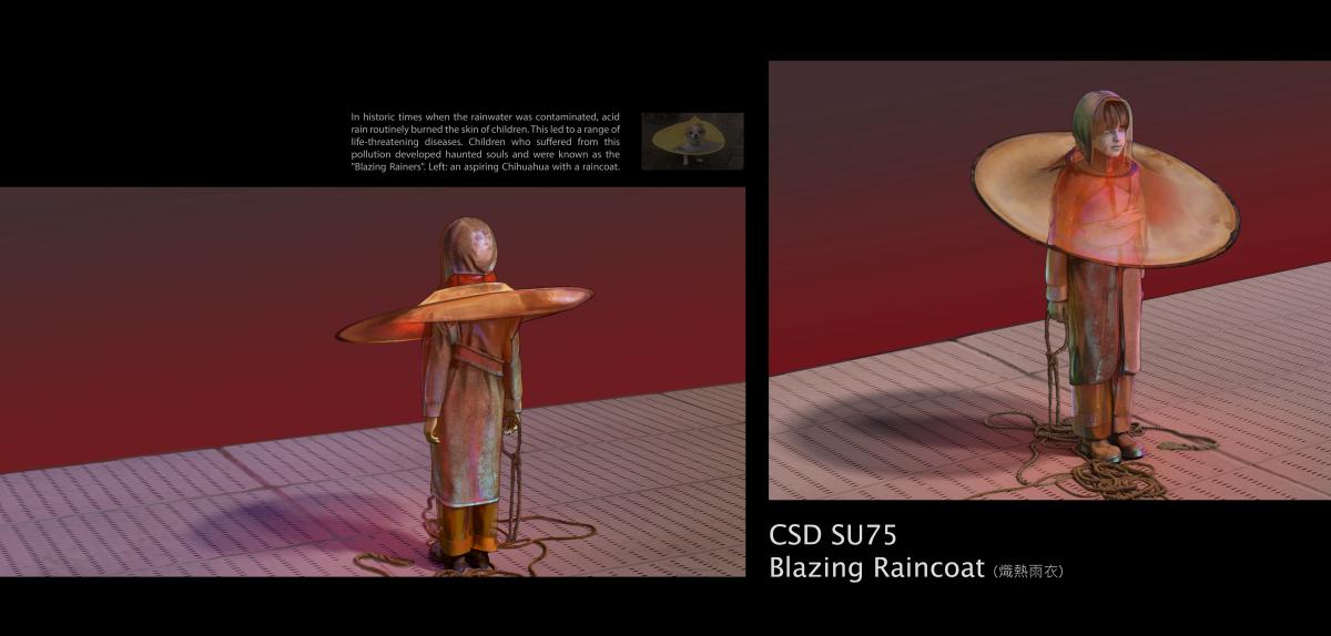 Utilizing biodegradable plastic materials, the blazing raincoat is more suited for the typical person. The raincoat has a replaceable neckpiece and carries less fabric than the cloak. The material used to fabricate this piece was developed under a high temperature, which resulted in a stronger and more durable surface.