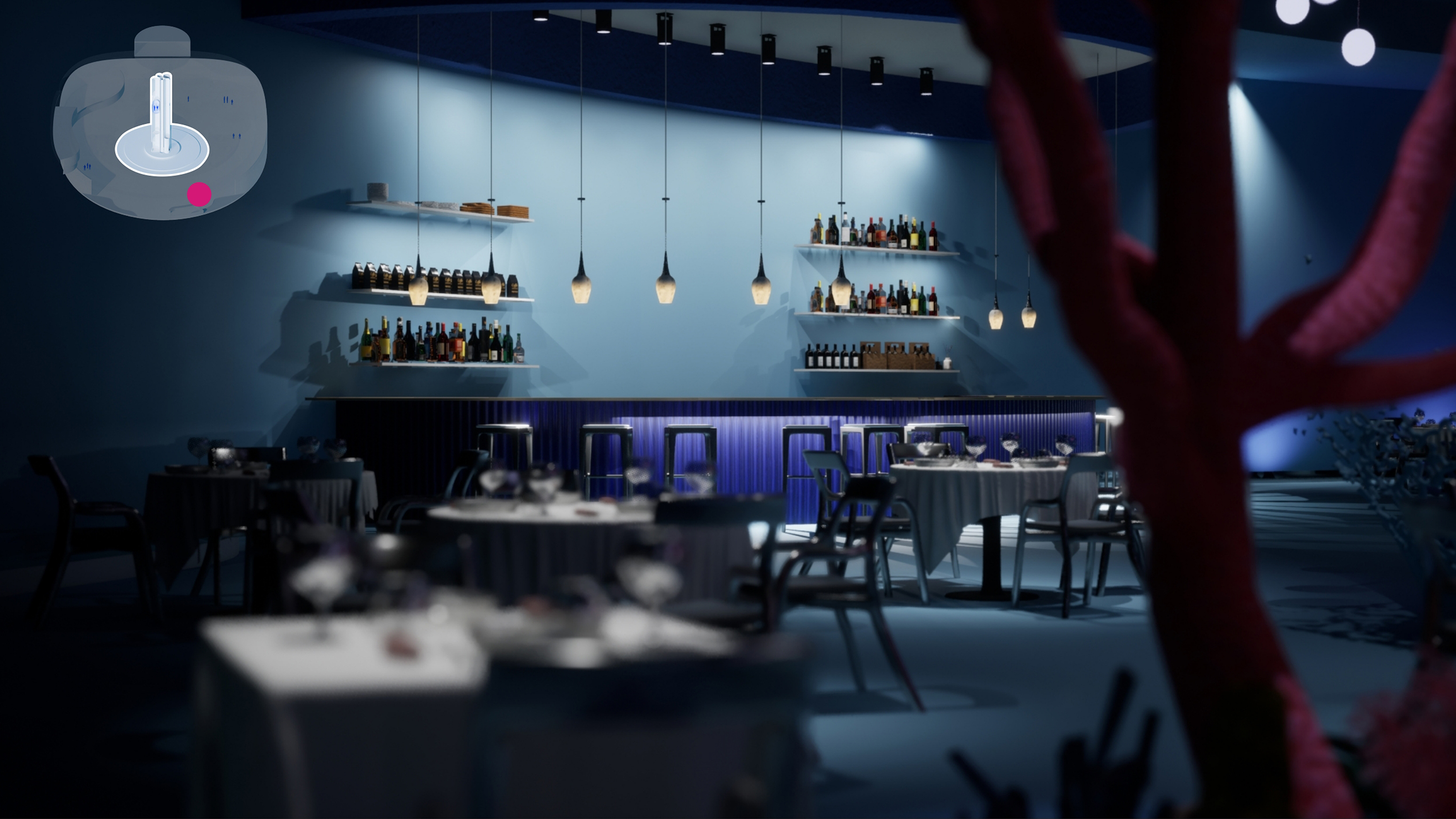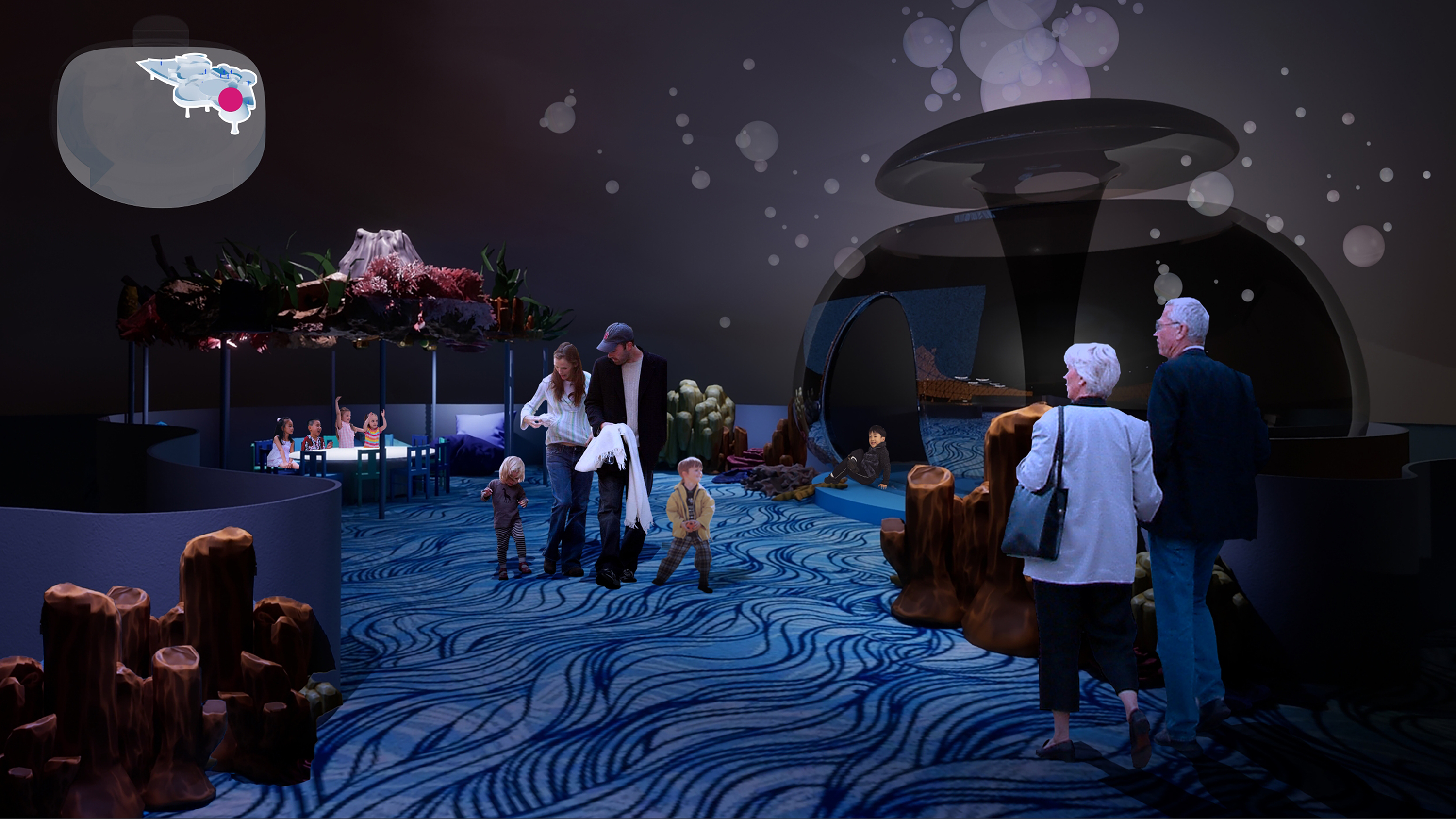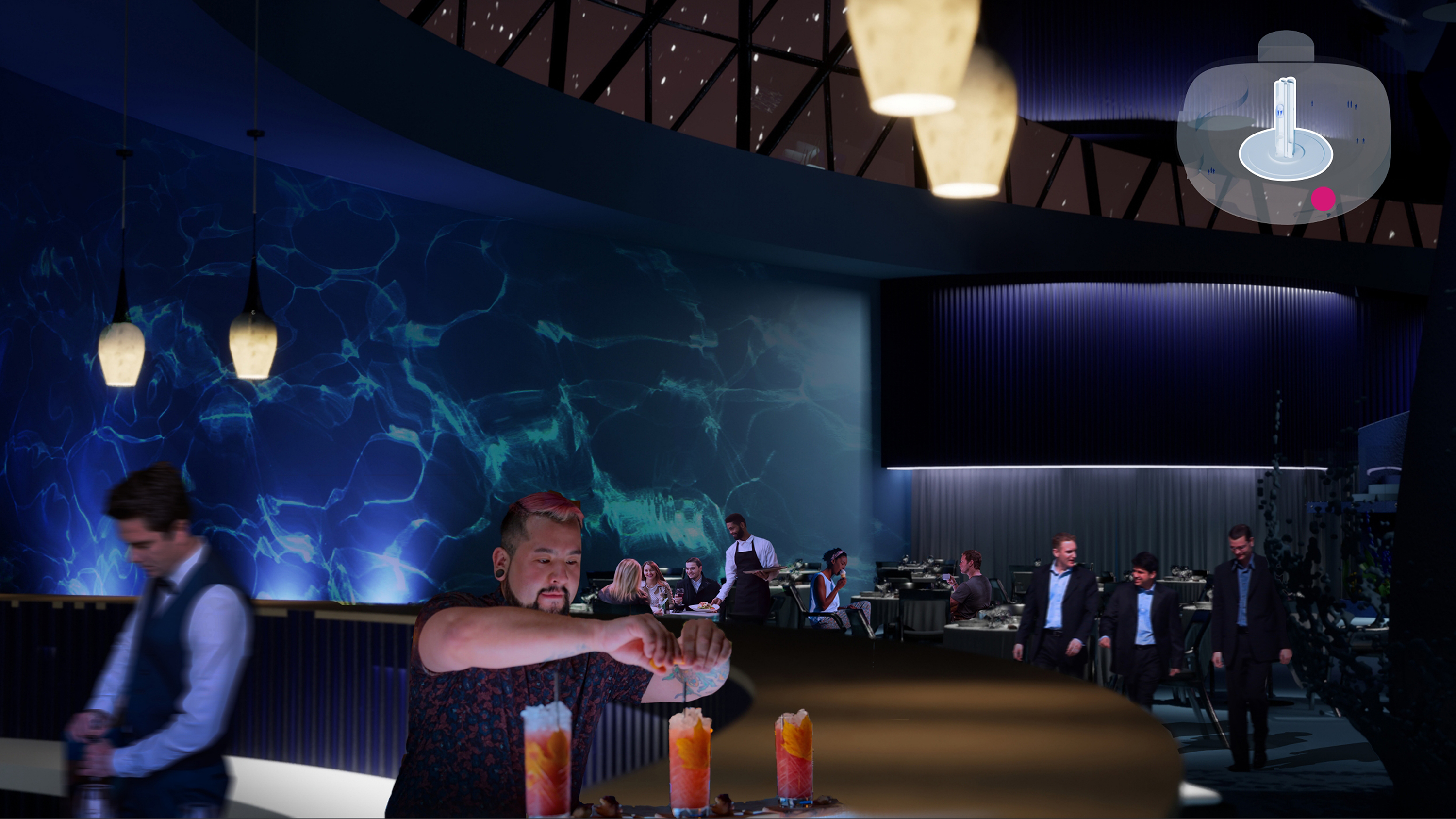 My role involved creating concept sketches, constructing 3D assets for the environments, and editing the mood and final concept video. We guide our guests through color and material strategies, spatial flow, and staging through the seas and skies. Despite considering all essential elements, we also faced unique challenges in creating functional spaces within the dynamic oceanic setting and limited area on the cruise.
