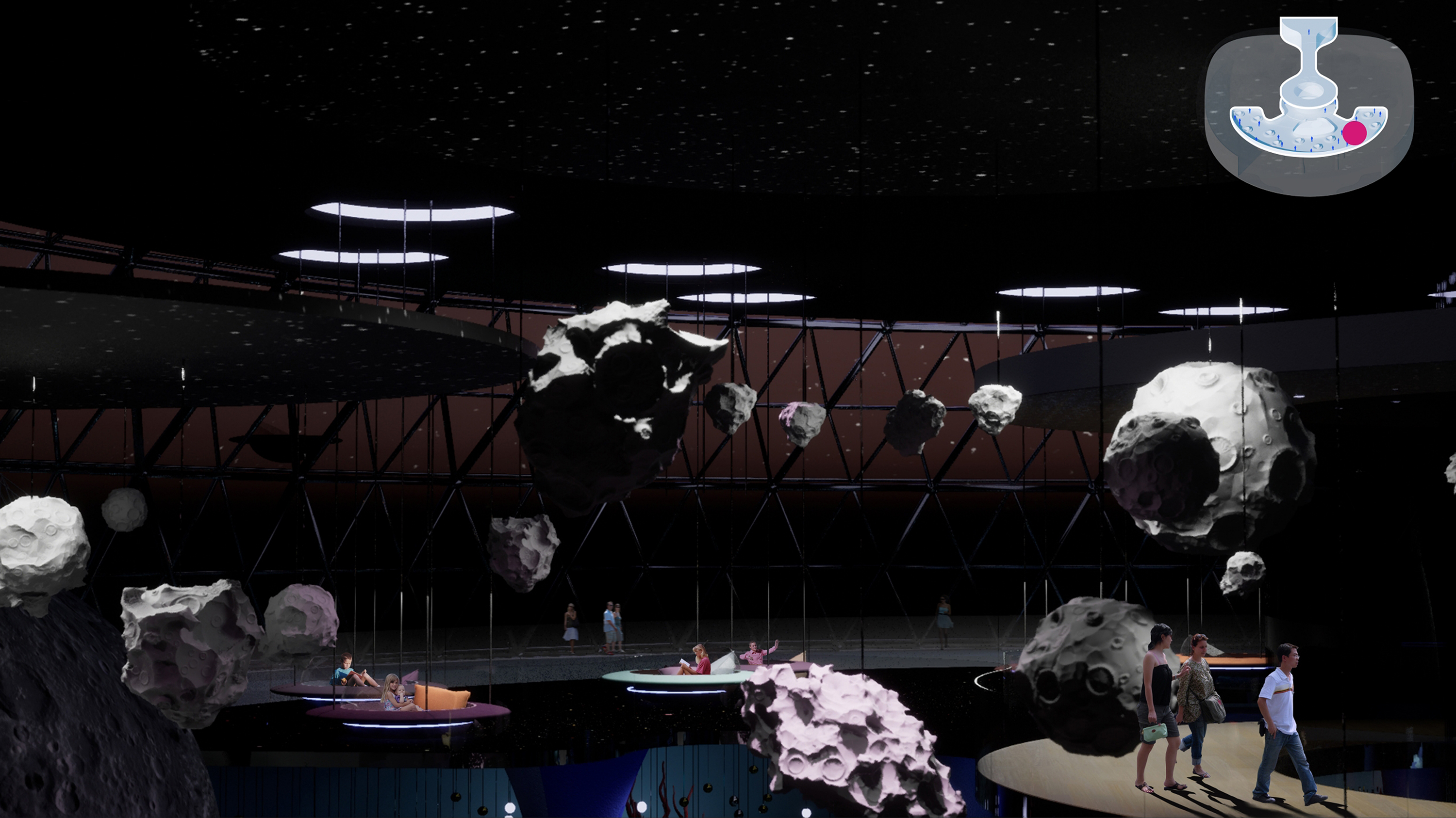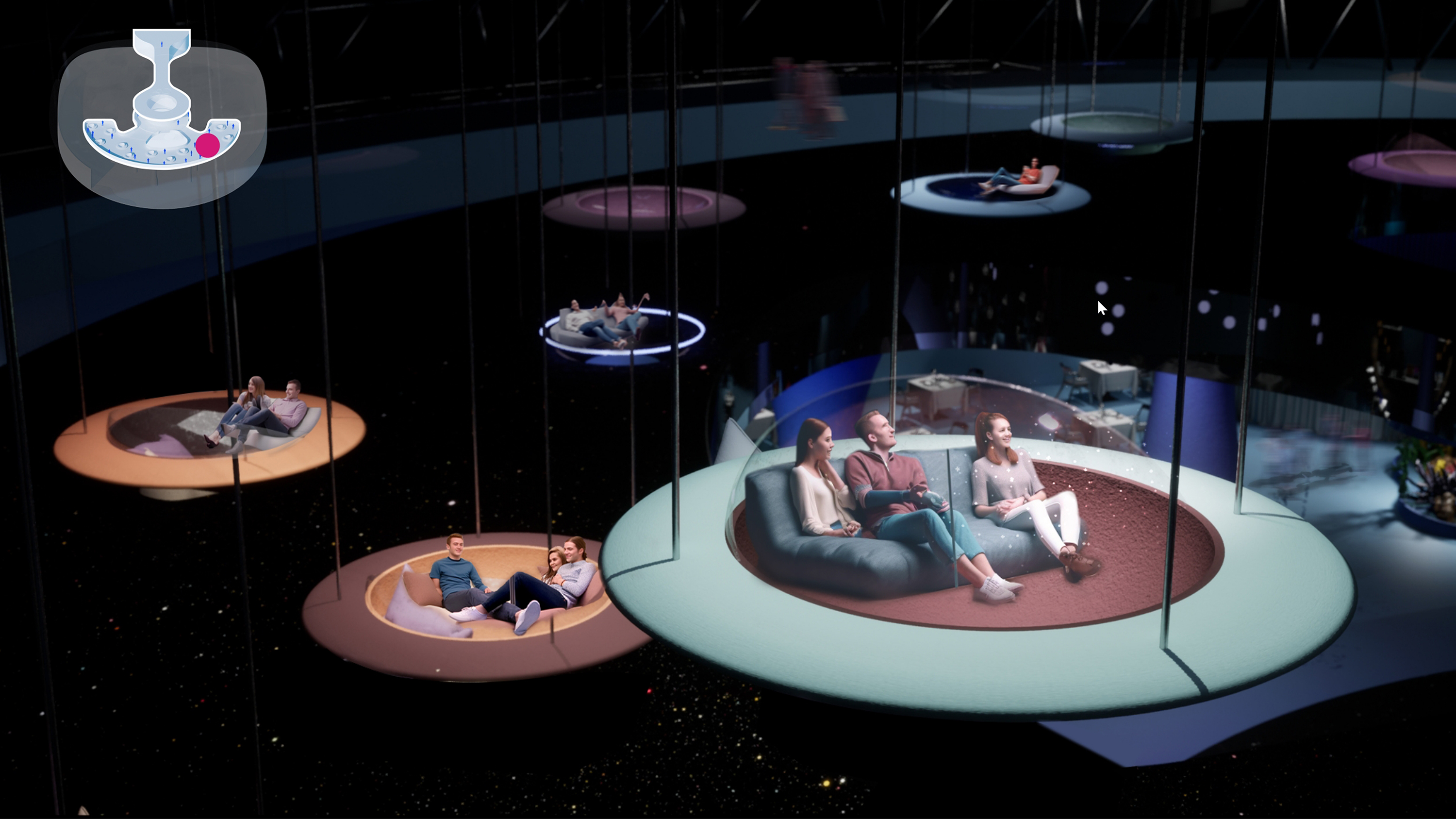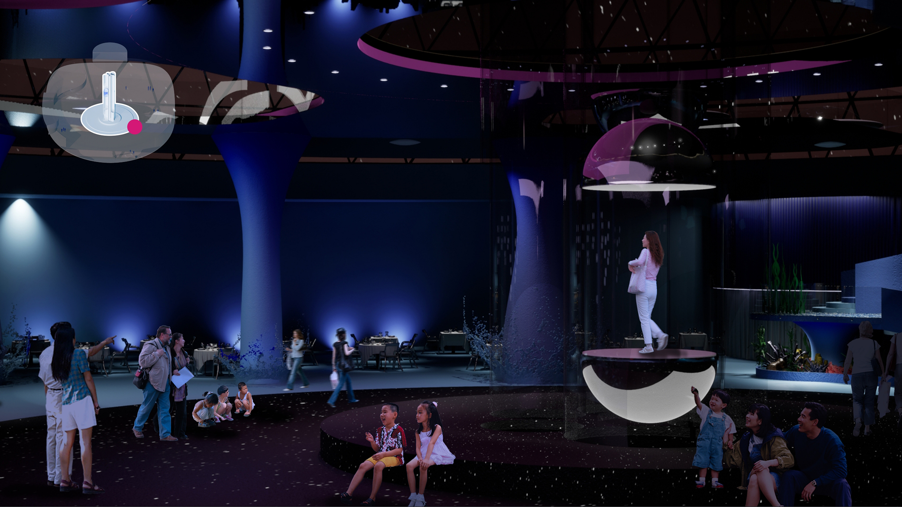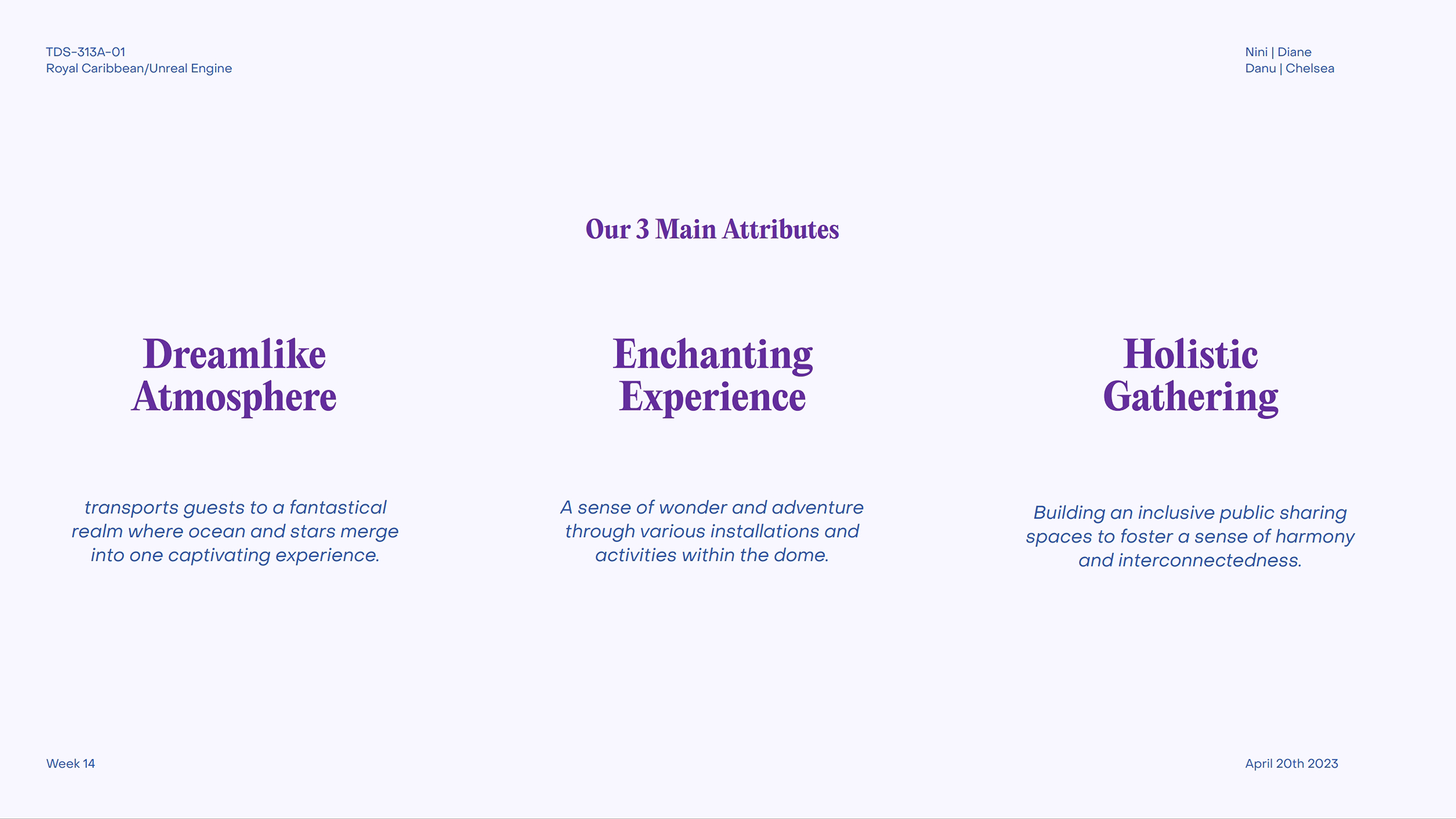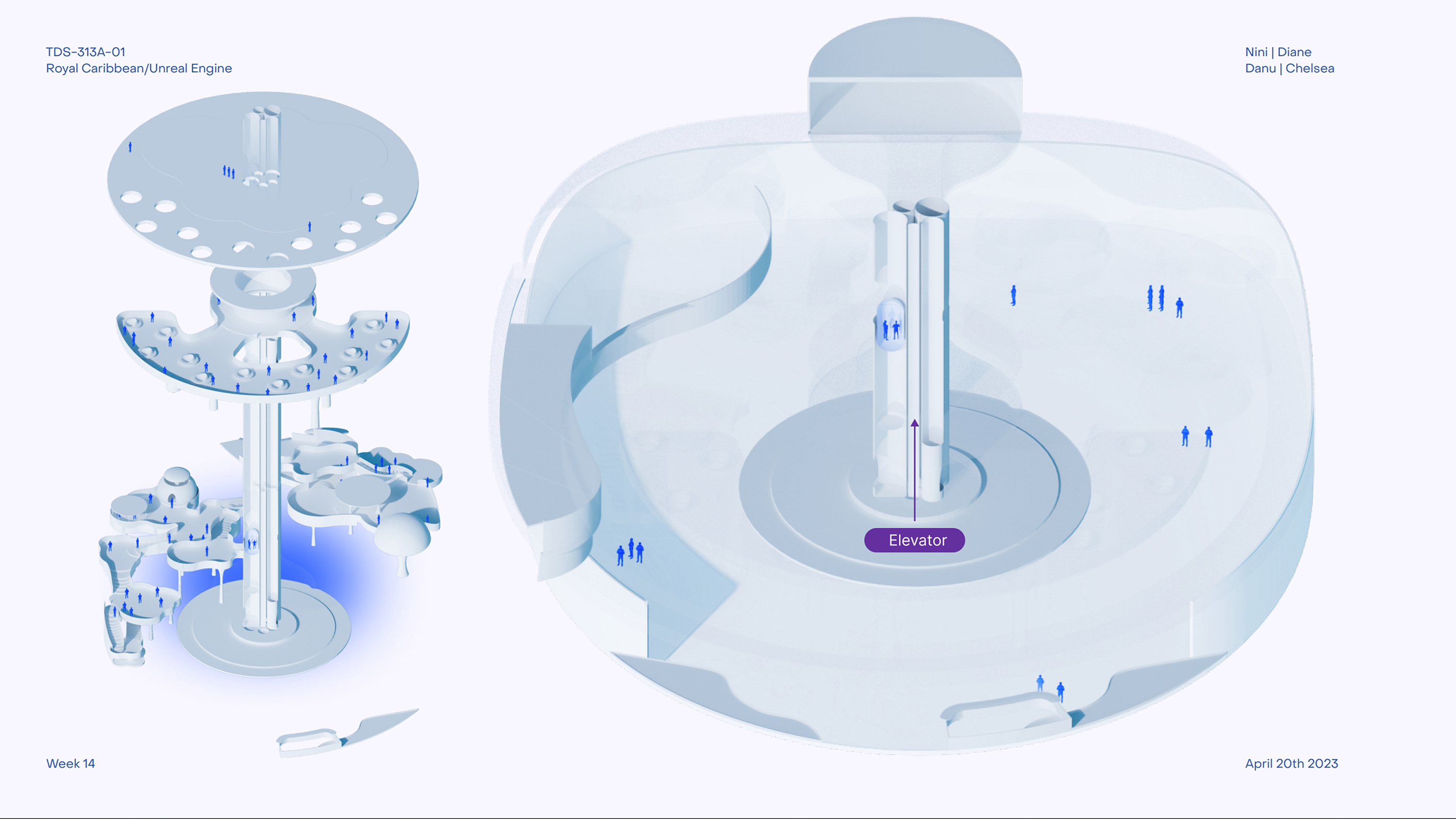 Royal Caribbean sponsors the project to create an engaging cruise experience. With a team of interdisciplinary designers—Chelsea Cheung, Danu Danari, and Diane Liu—we aim to design a dynamic community space for guests' enjoyment. From dining to entertainment, retail to leisure, every aspect of daily life is considered.
