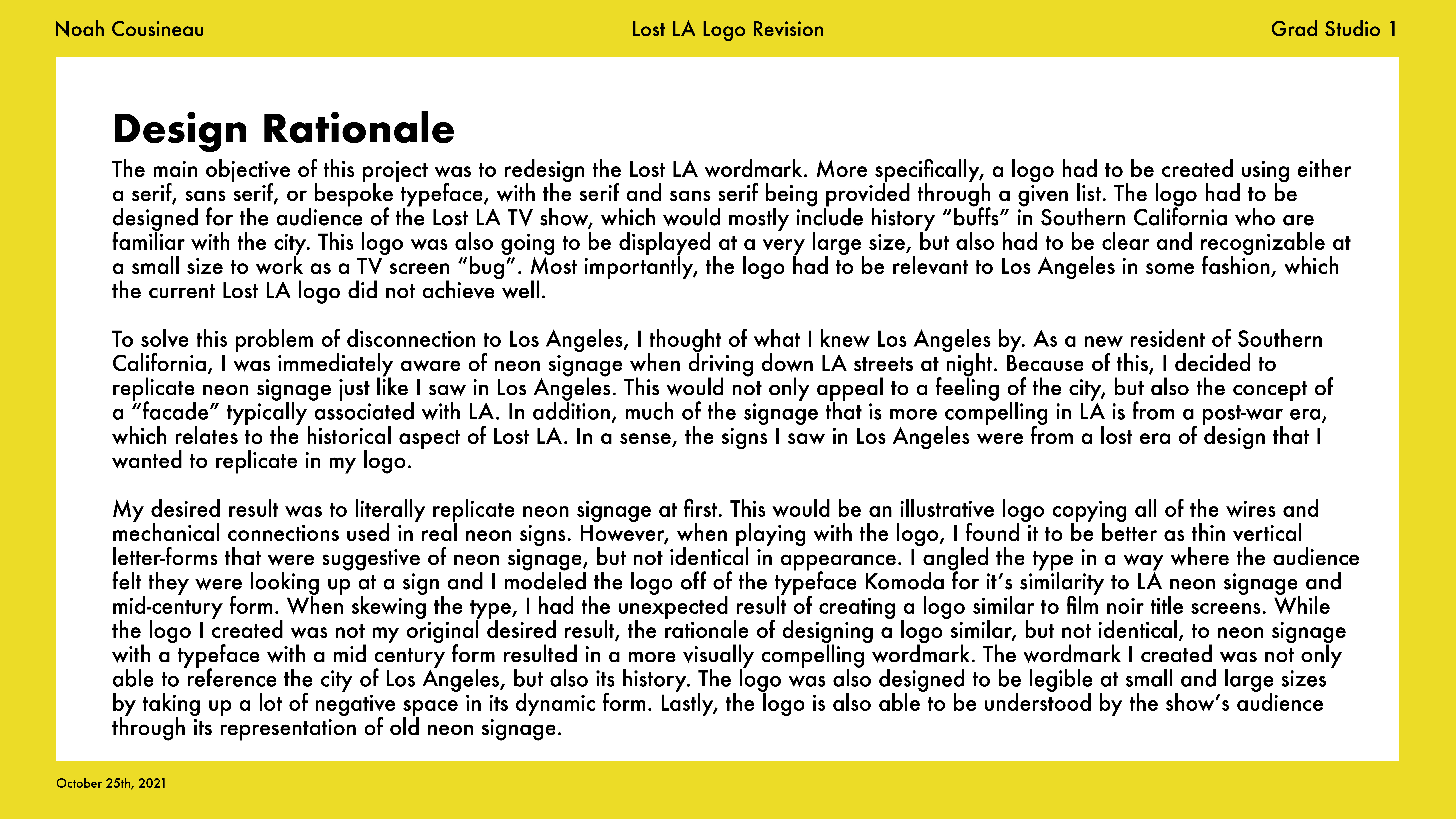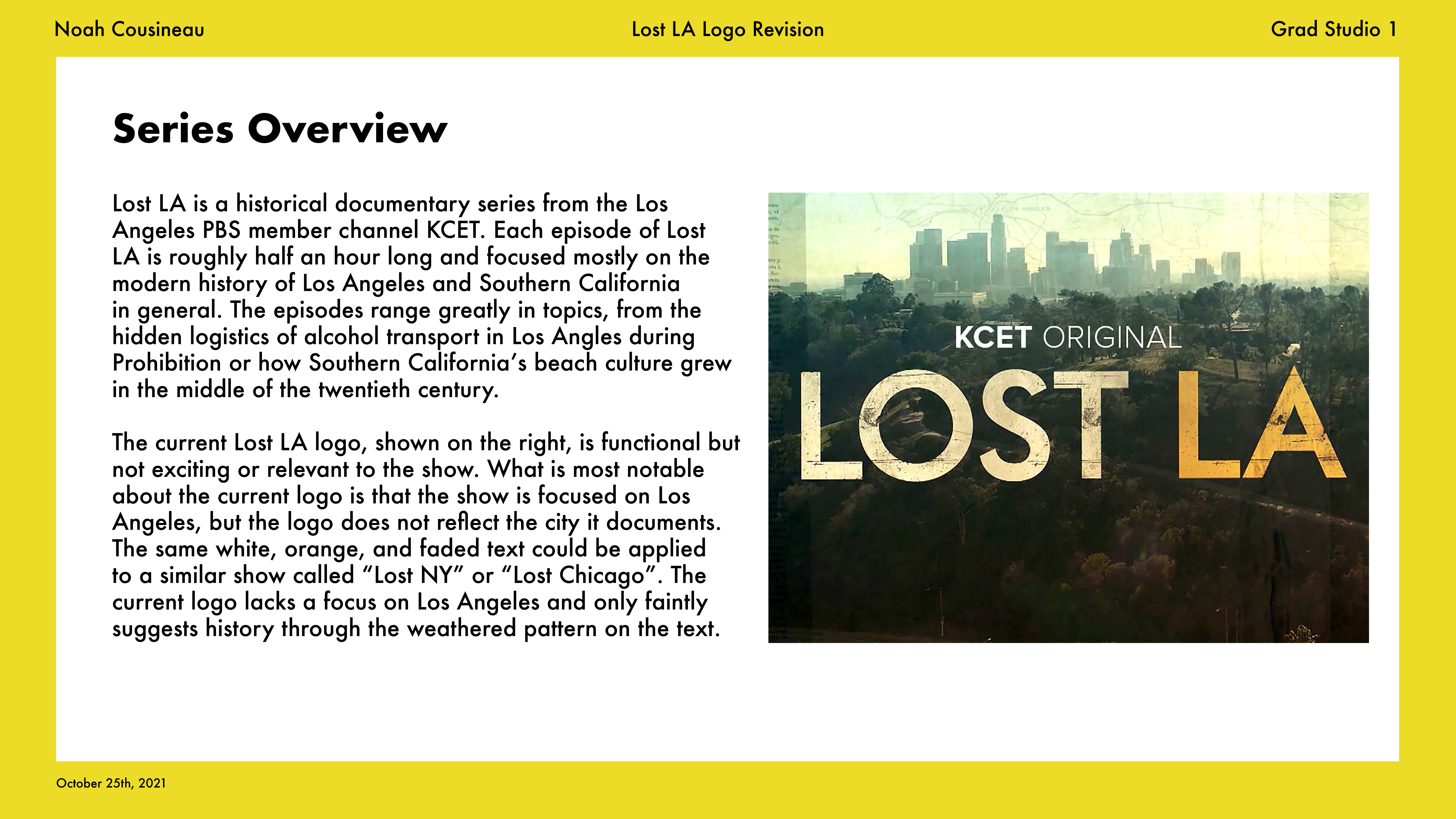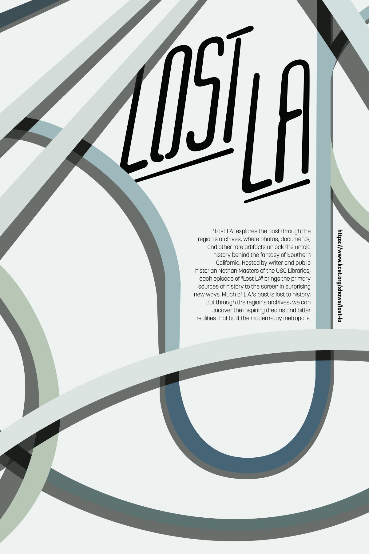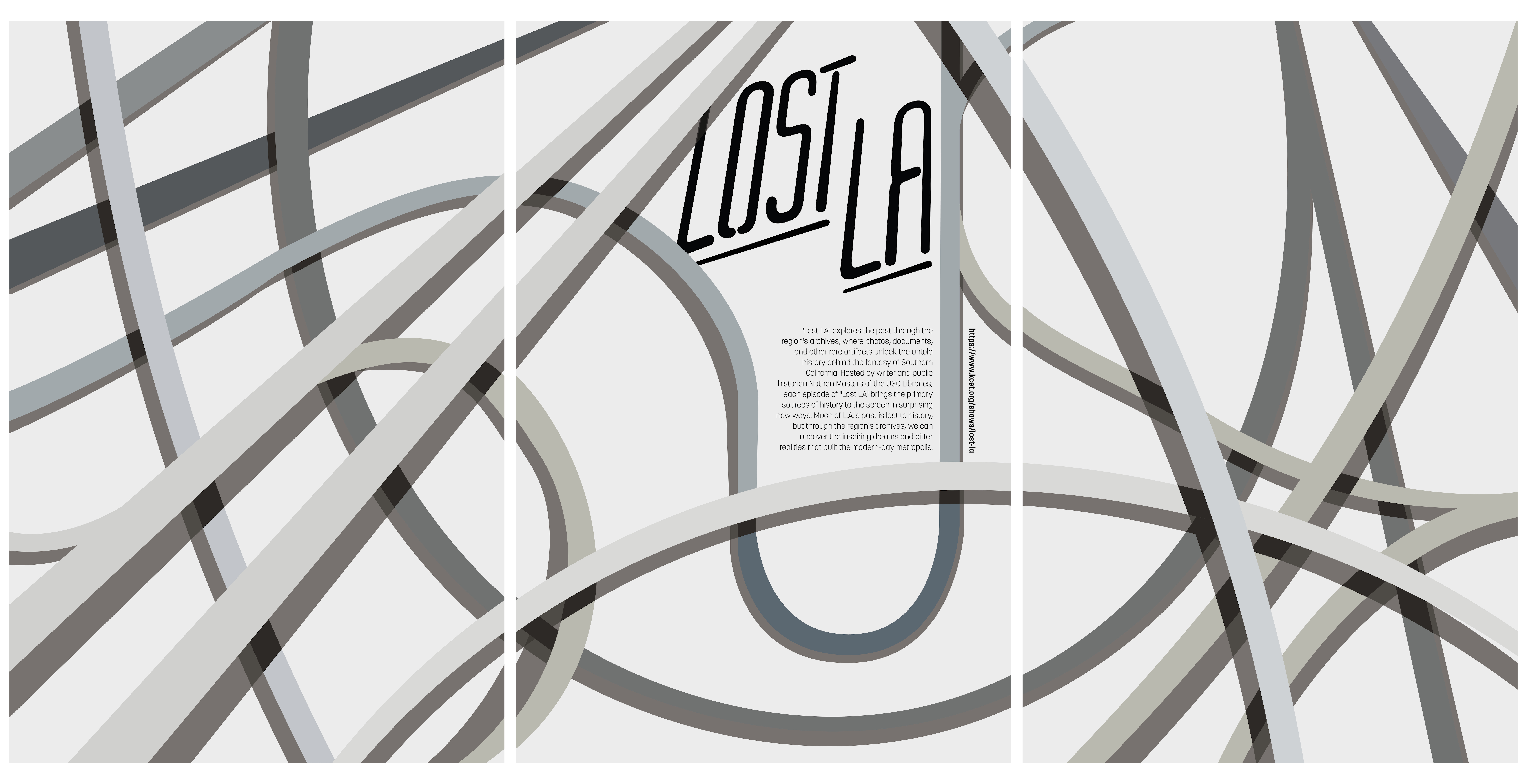 Rebranding project for the historical documentary series Lost LA. This logo is meant to be representative of neon signage found in Los Angeles. A poster triptych was also created representing the history of Los Angeles buried below freeways.